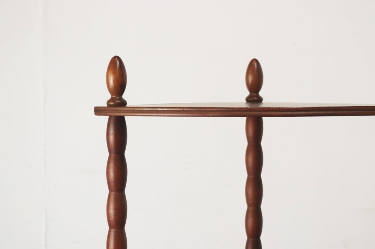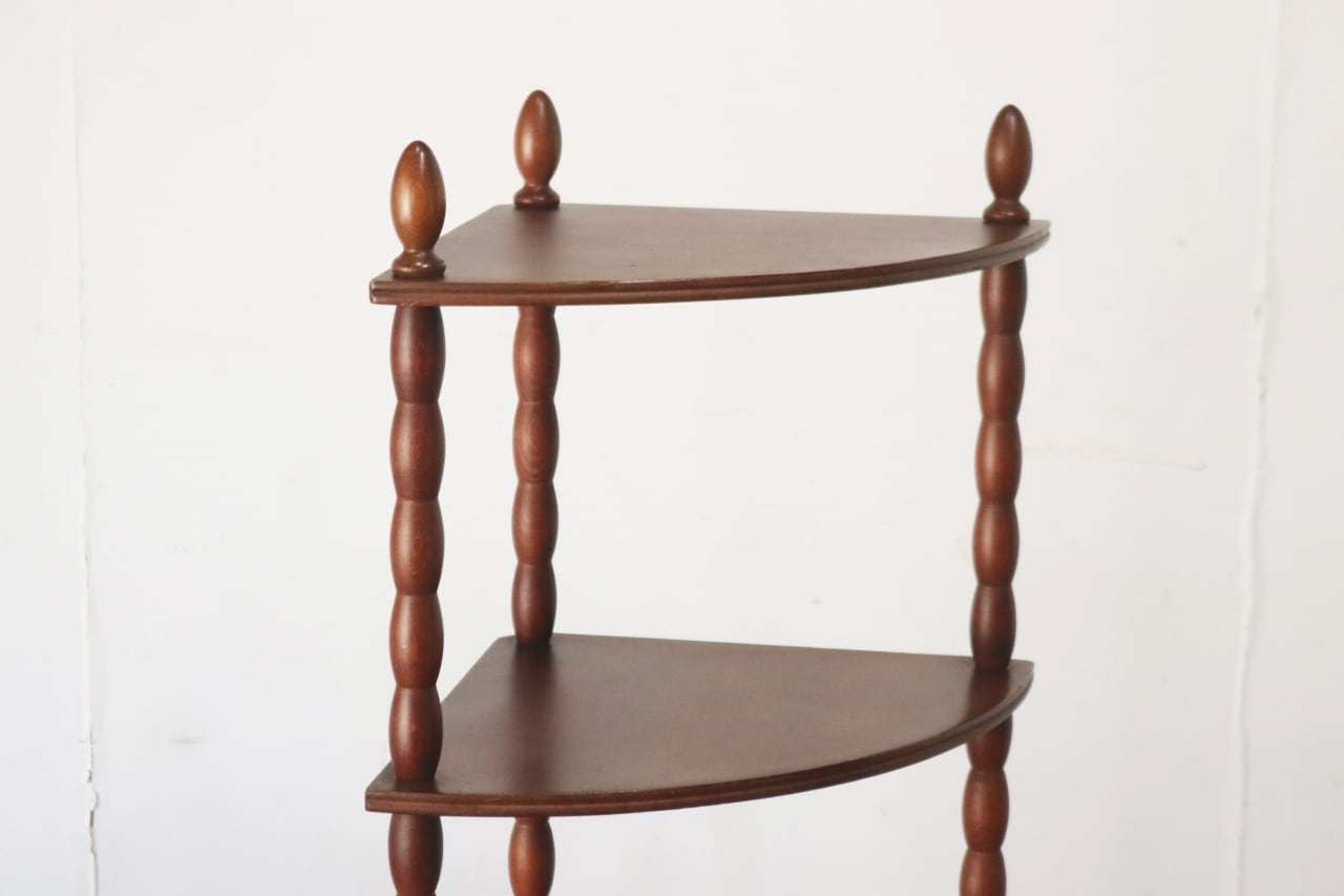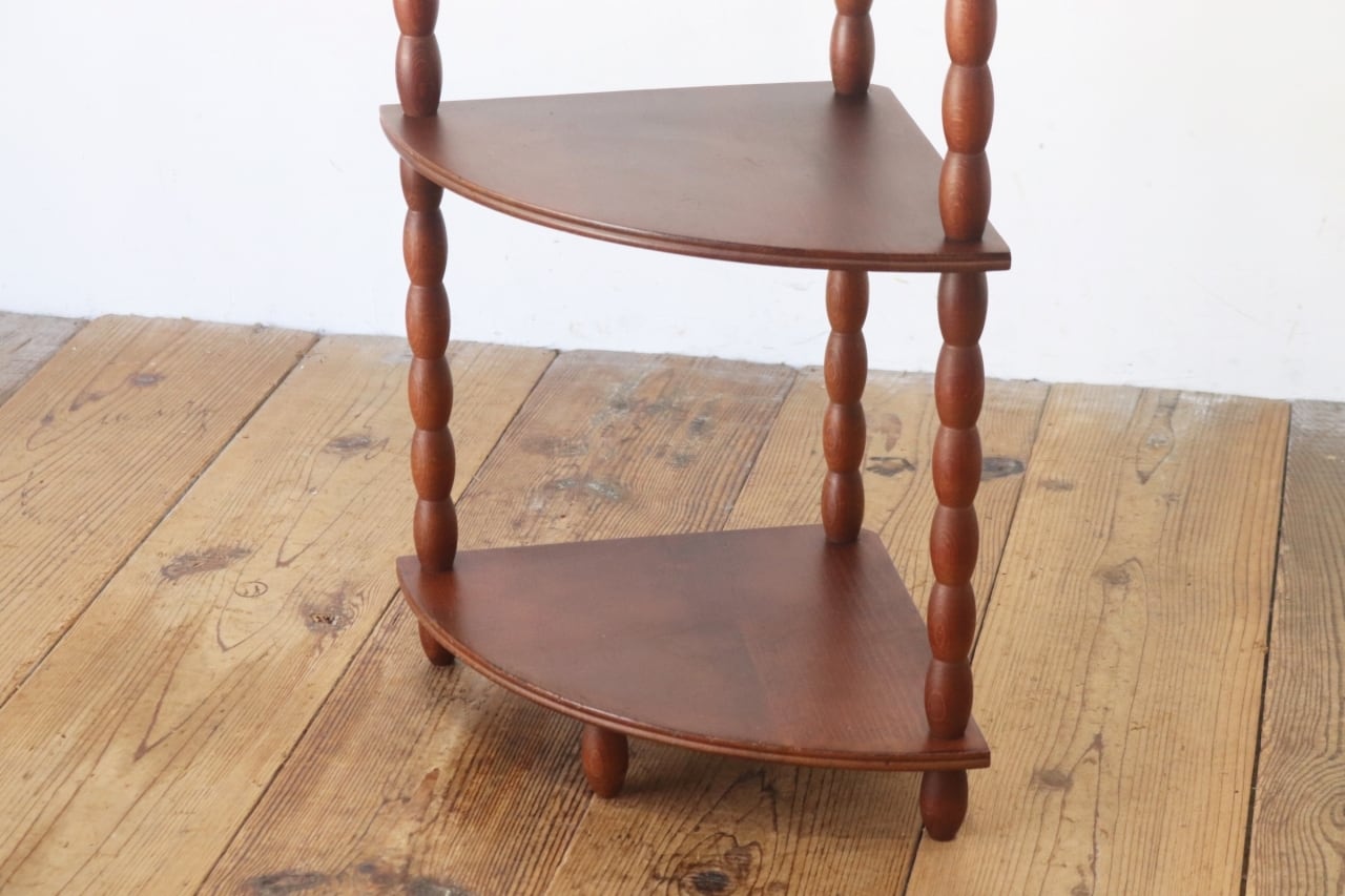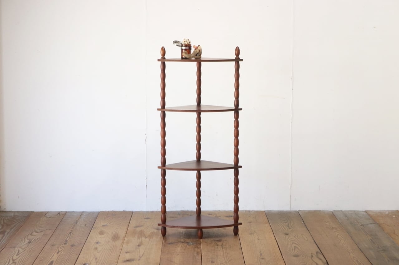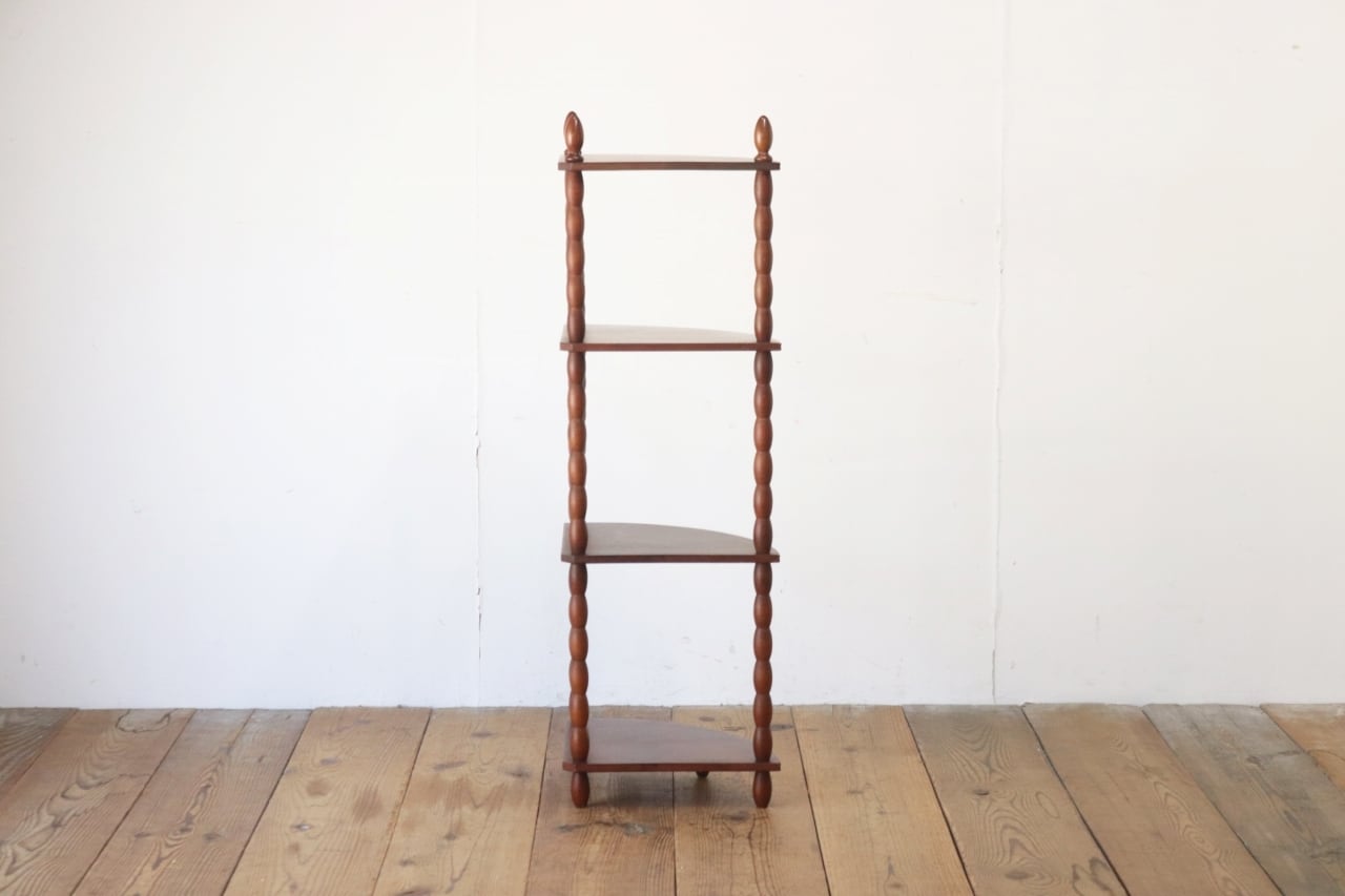 レトロ ナジコ コーナーシェルフ 4段 ラック 飾り棚 花台 電話台 組み立て ビーチ材 挽物 ヴィンテージ/PKT25170