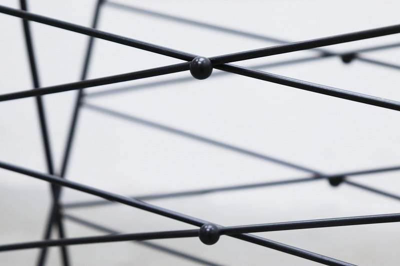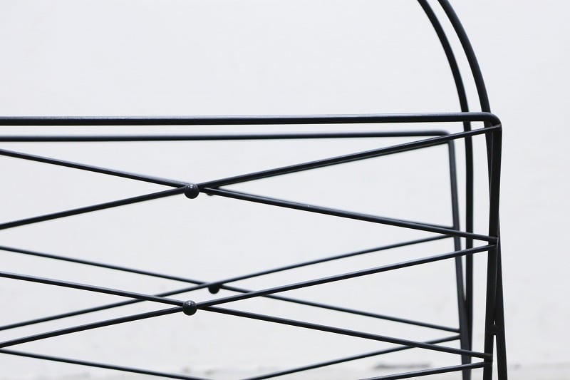 細身のアイアンが描く軽やかなラインワークが印象的で、幾何学的なフォルムの美しさが空間にアクセントを加えてくれます。