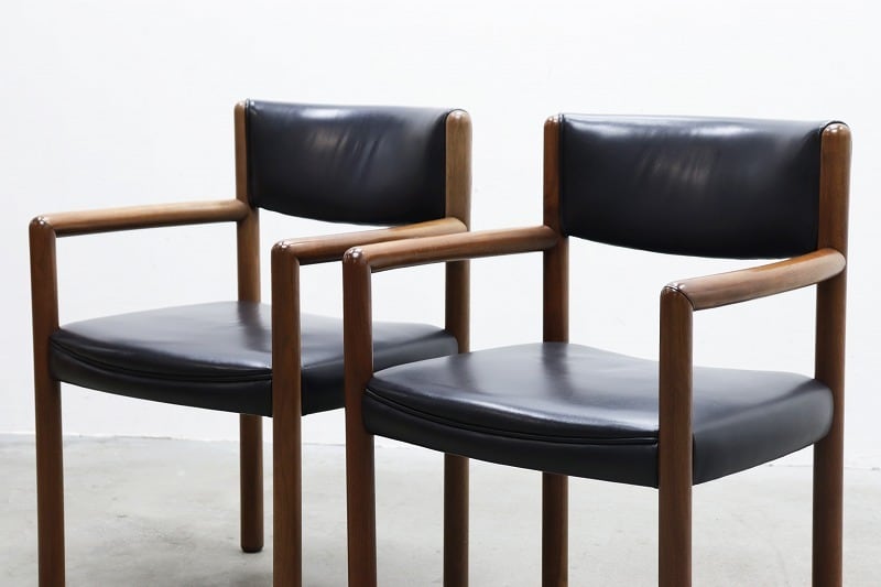 在庫4脚 ヴィンテージ 旭川 CONDE HOUSE カンディハウス ウォールナット 本革 アームチェア ダイニングチェア モダン PKK27186