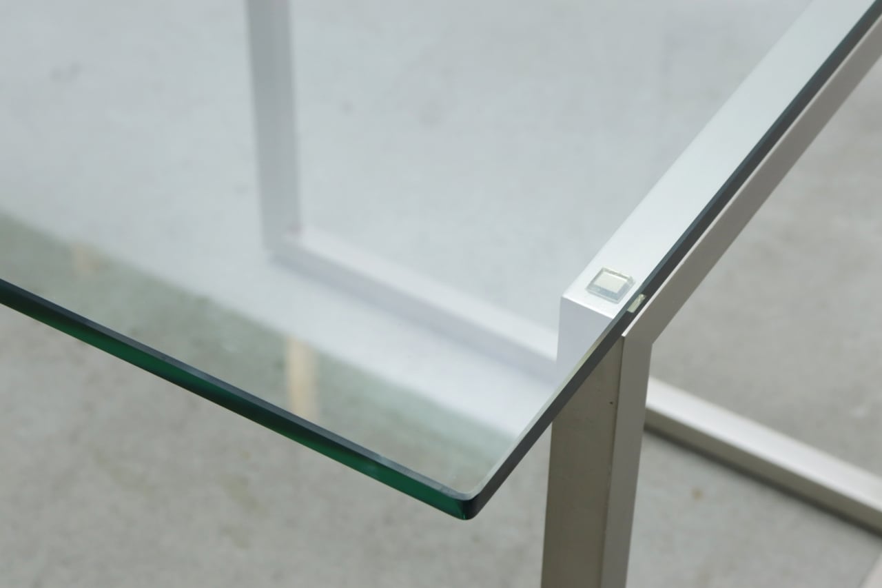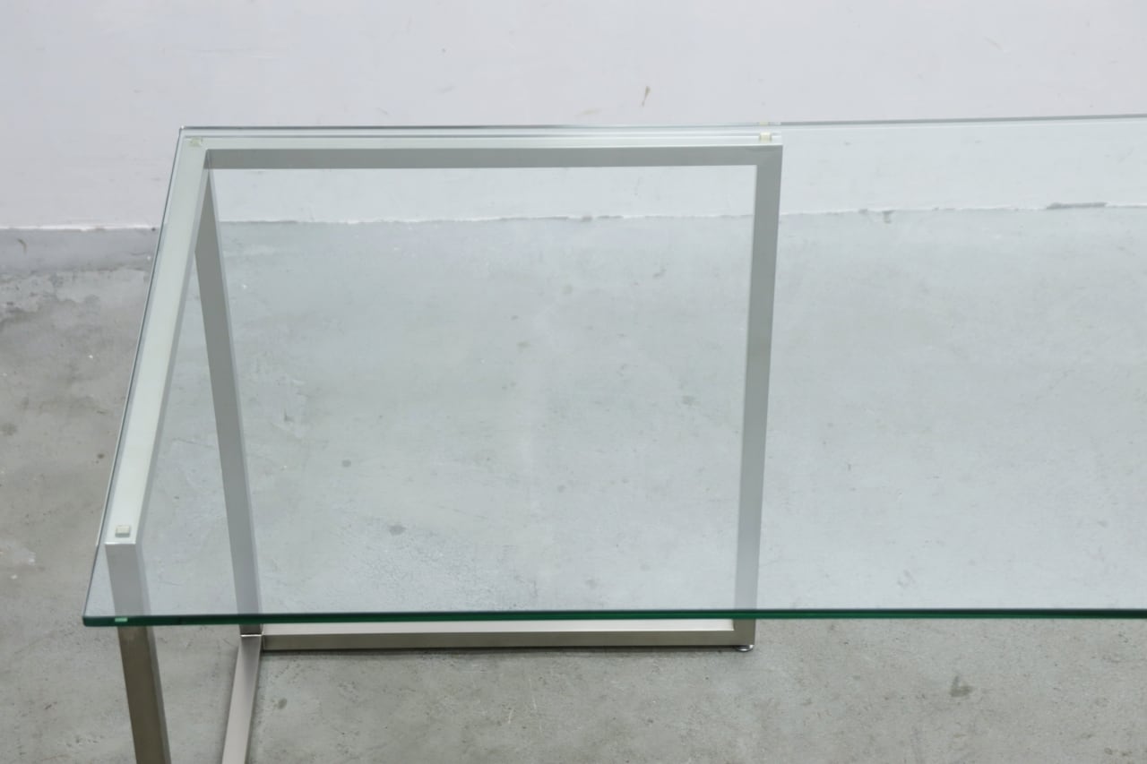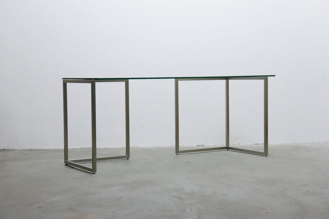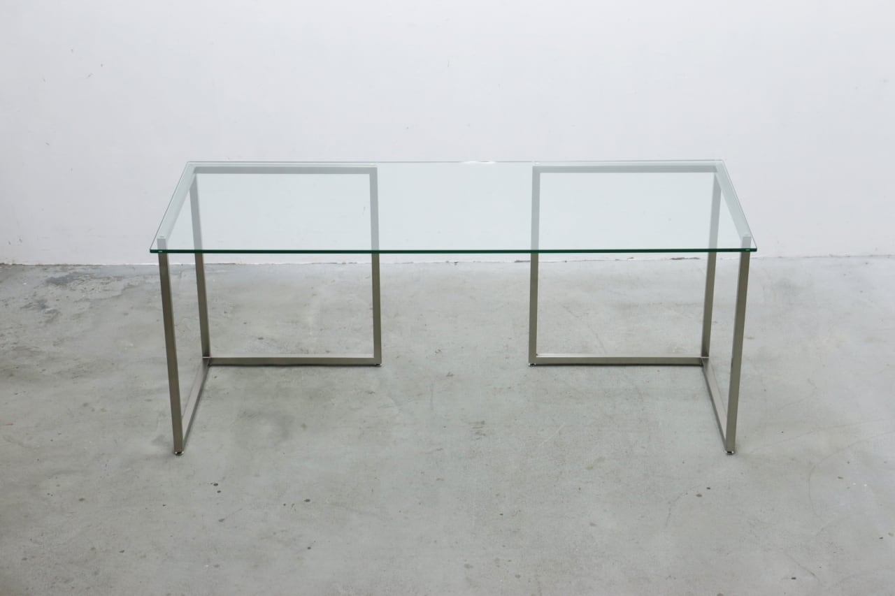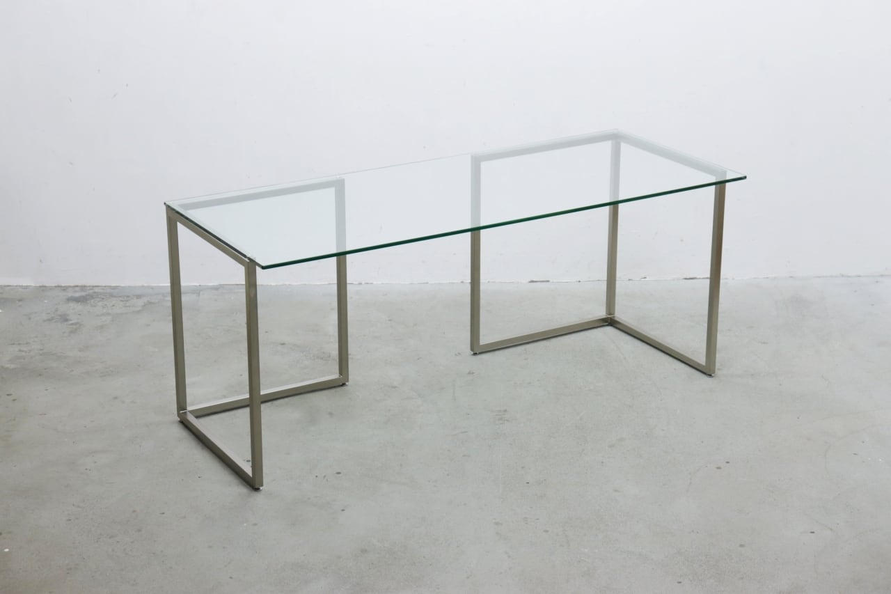 イギリスのオフィス家具メーカー、BISLEYのデスク「L-FOOT 」ガラス天板・ステンレスレッグです。
