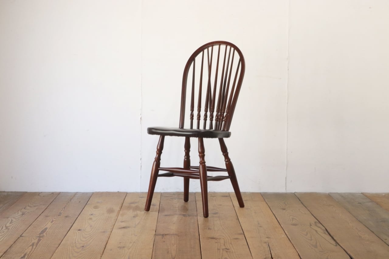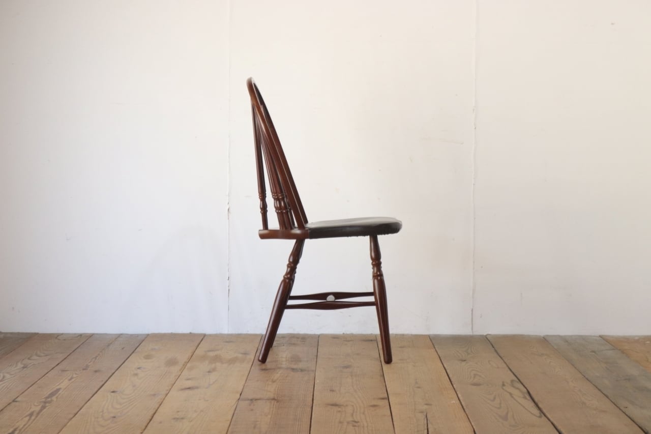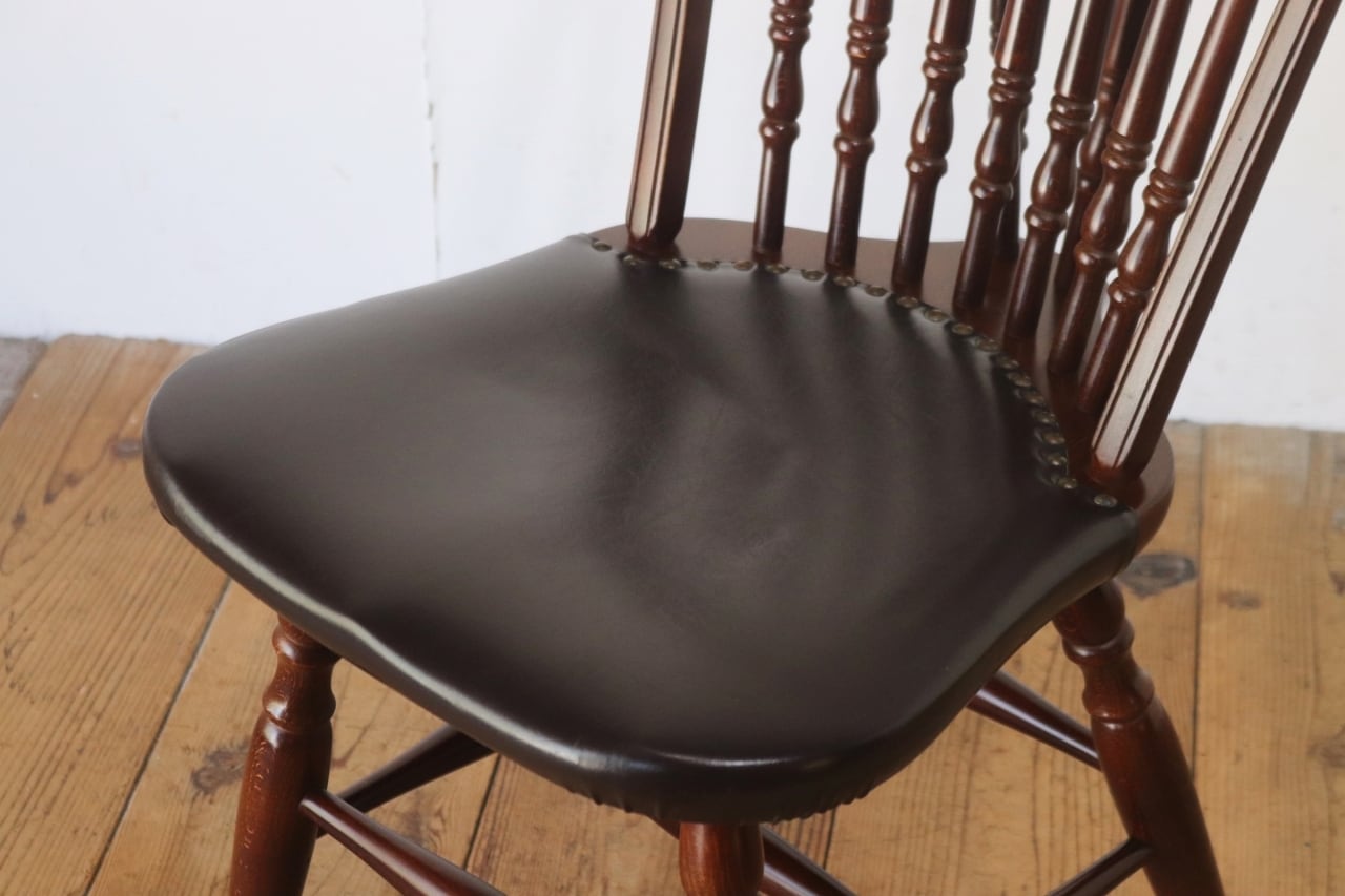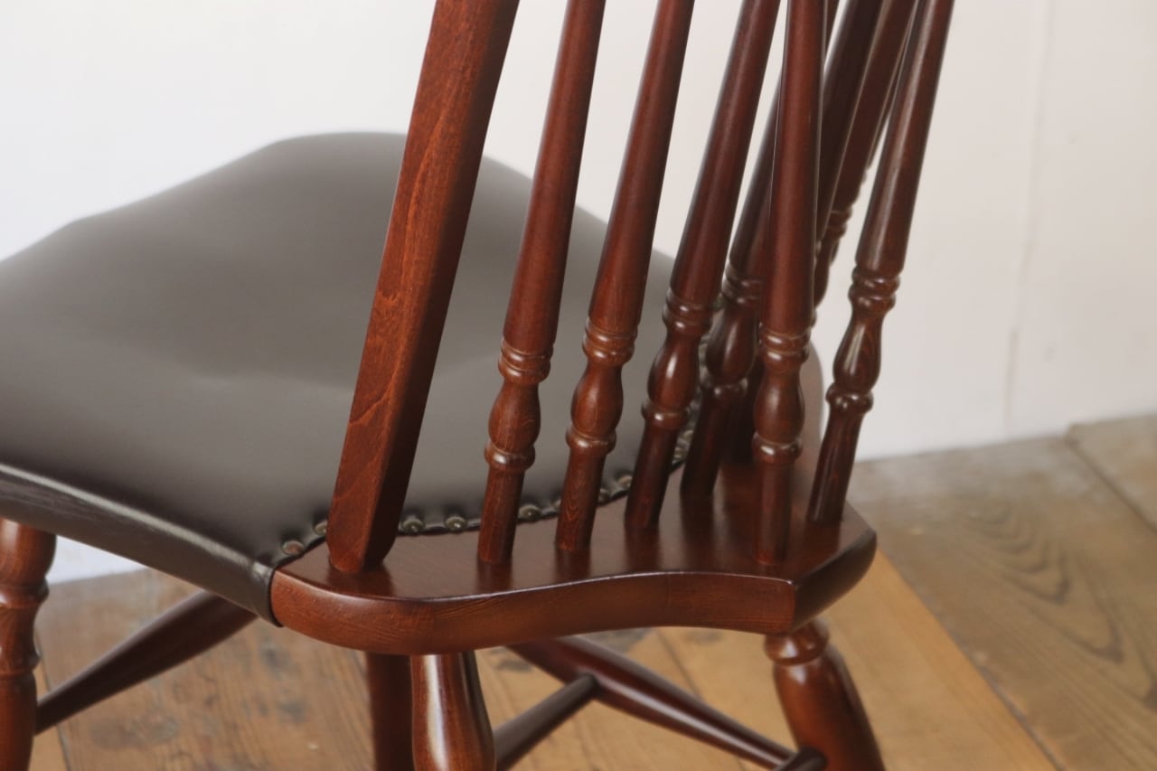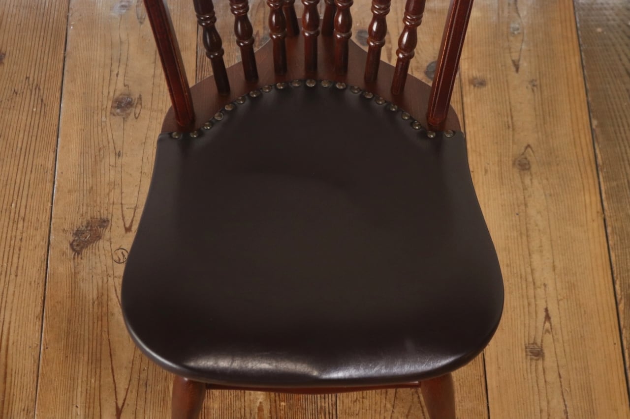 在庫2脚 秋田木工 ダイニングチェア ウィンザーチェア 椅子 挽き物 曲木 合皮 レザー 茶 1脚/PKT25138
