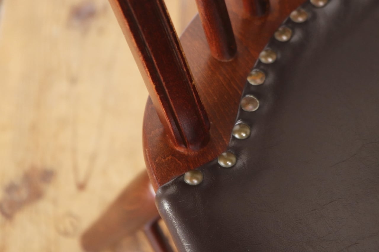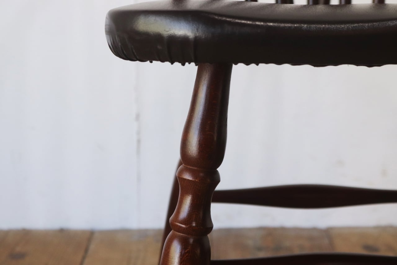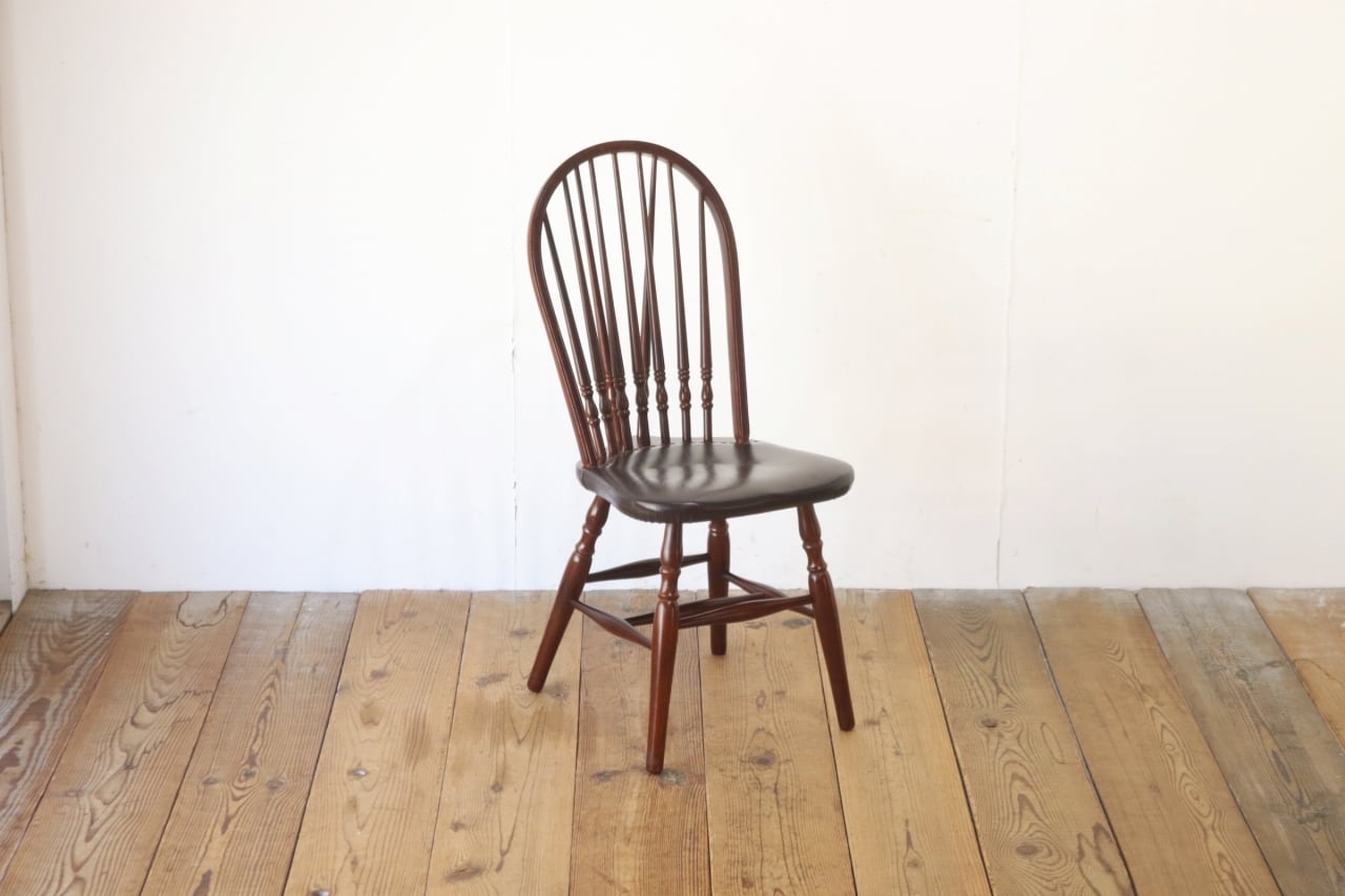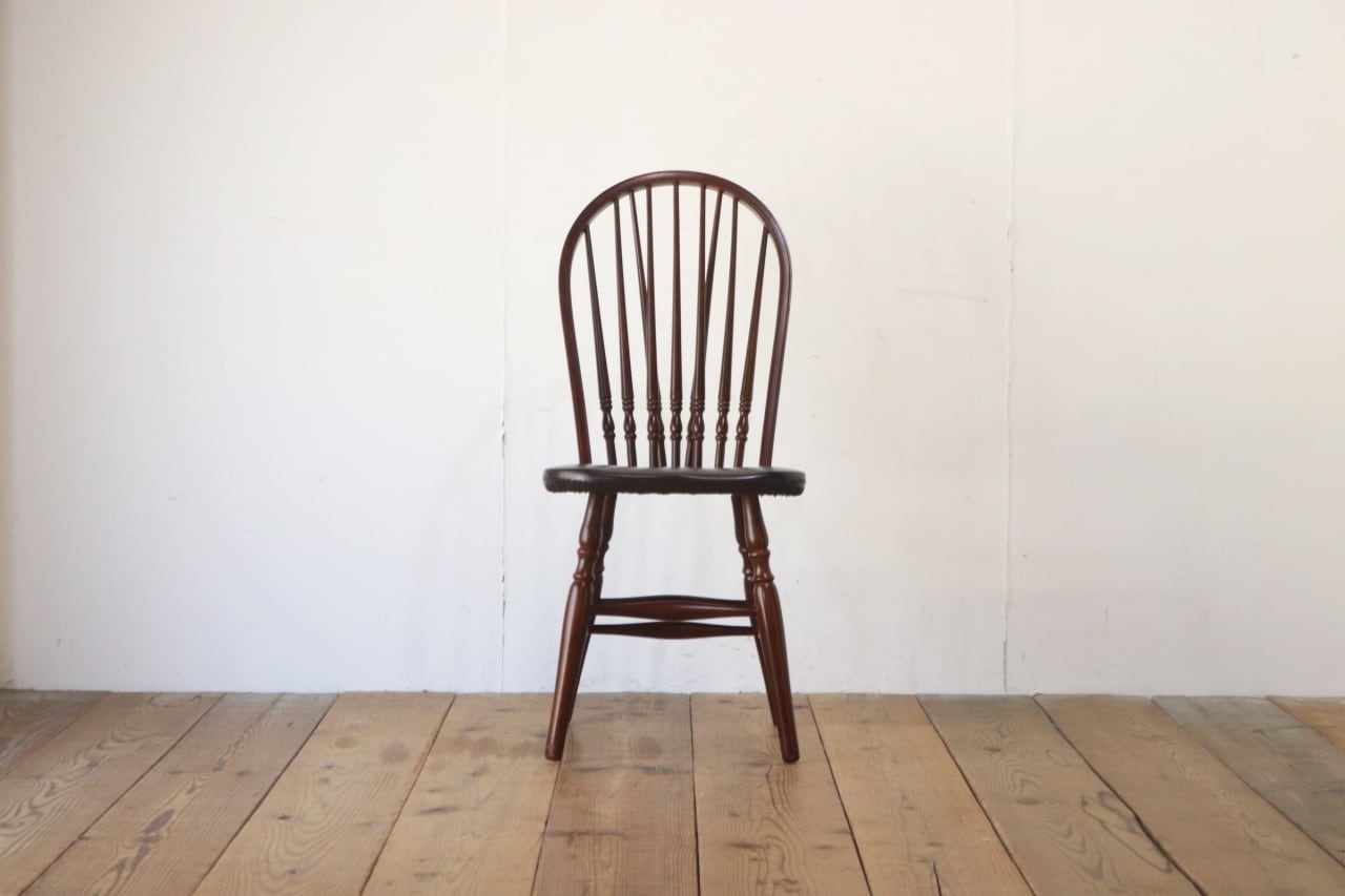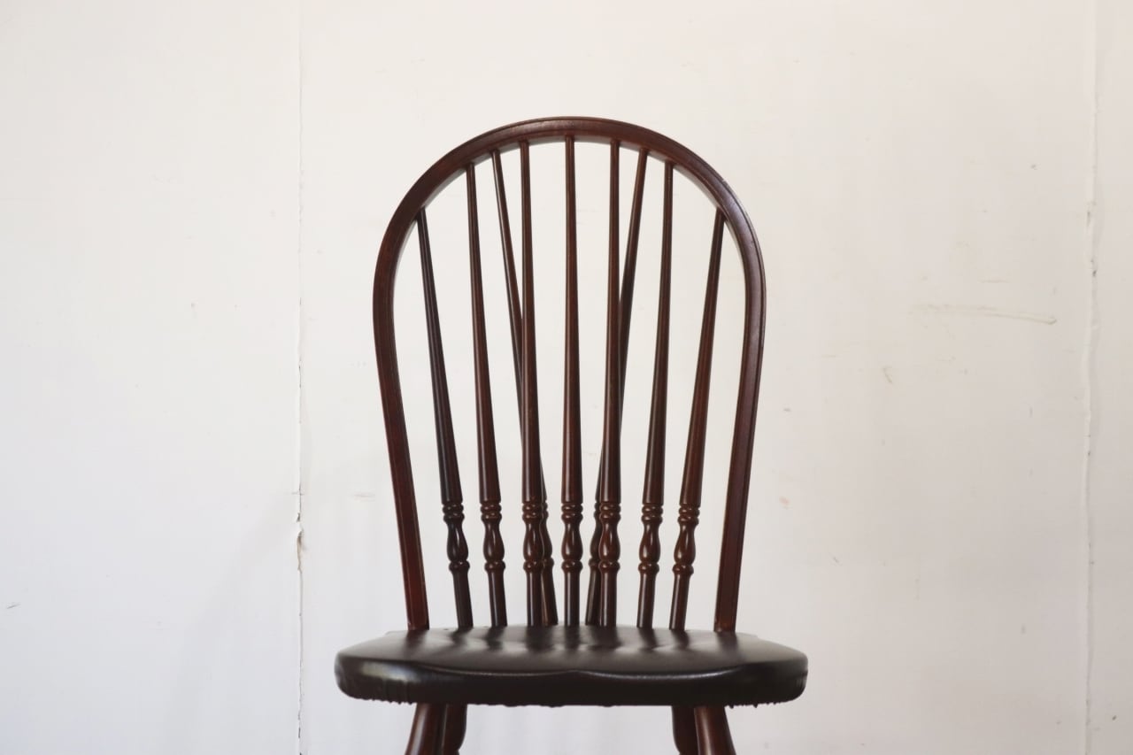 在庫2脚 秋田木工 ダイニングチェア ウィンザーチェア 椅子 挽き物 曲木 合皮 レザー 茶 1脚/PKT25138