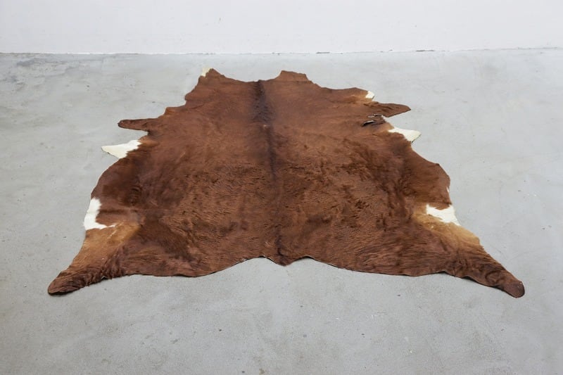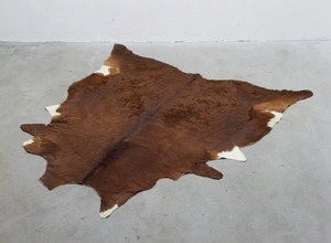 牛革 本革 カウラグ 220×197 カーペット 絨毯 敷物 大判 毛皮 ブラウン PKT25156