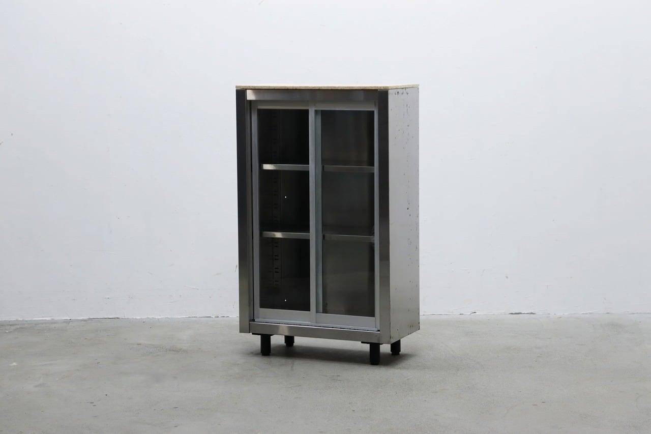 ステンレス キャビネット ガラス 食器庫 書庫 本棚 キッチン ラック 収納 サイドボード PKT25136