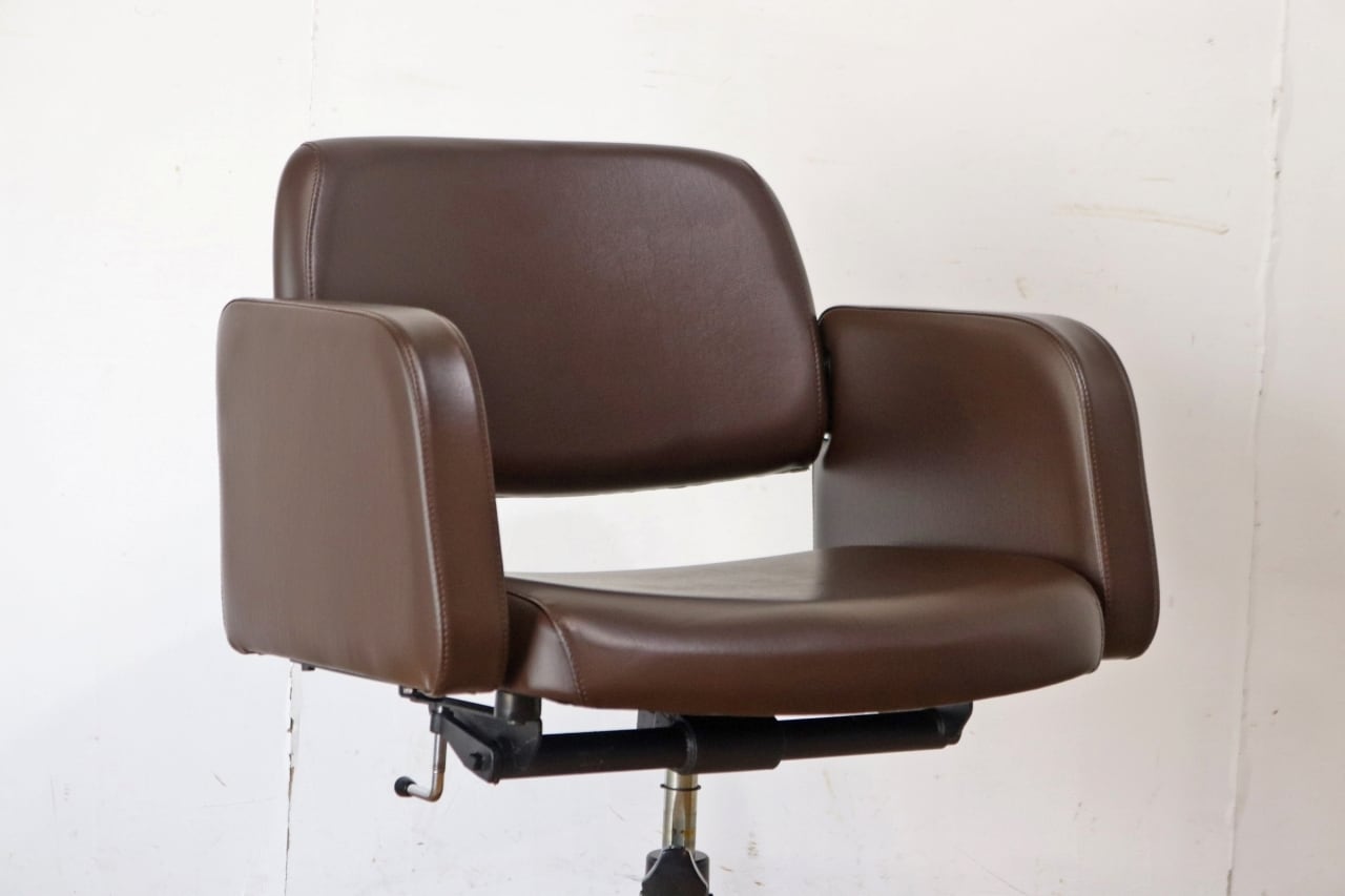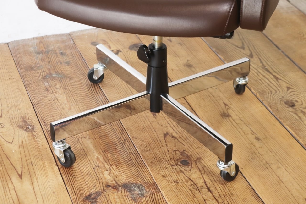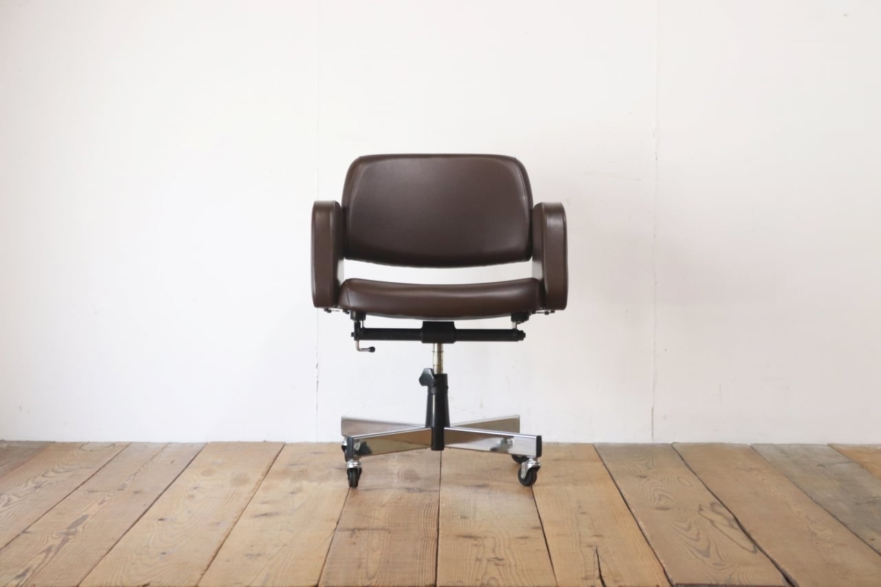 レトロ キャスターチェア アーム オフィス家具 回転 リクライニング 昇降 合皮 レザー 茶 UCHIDA/PKK27182