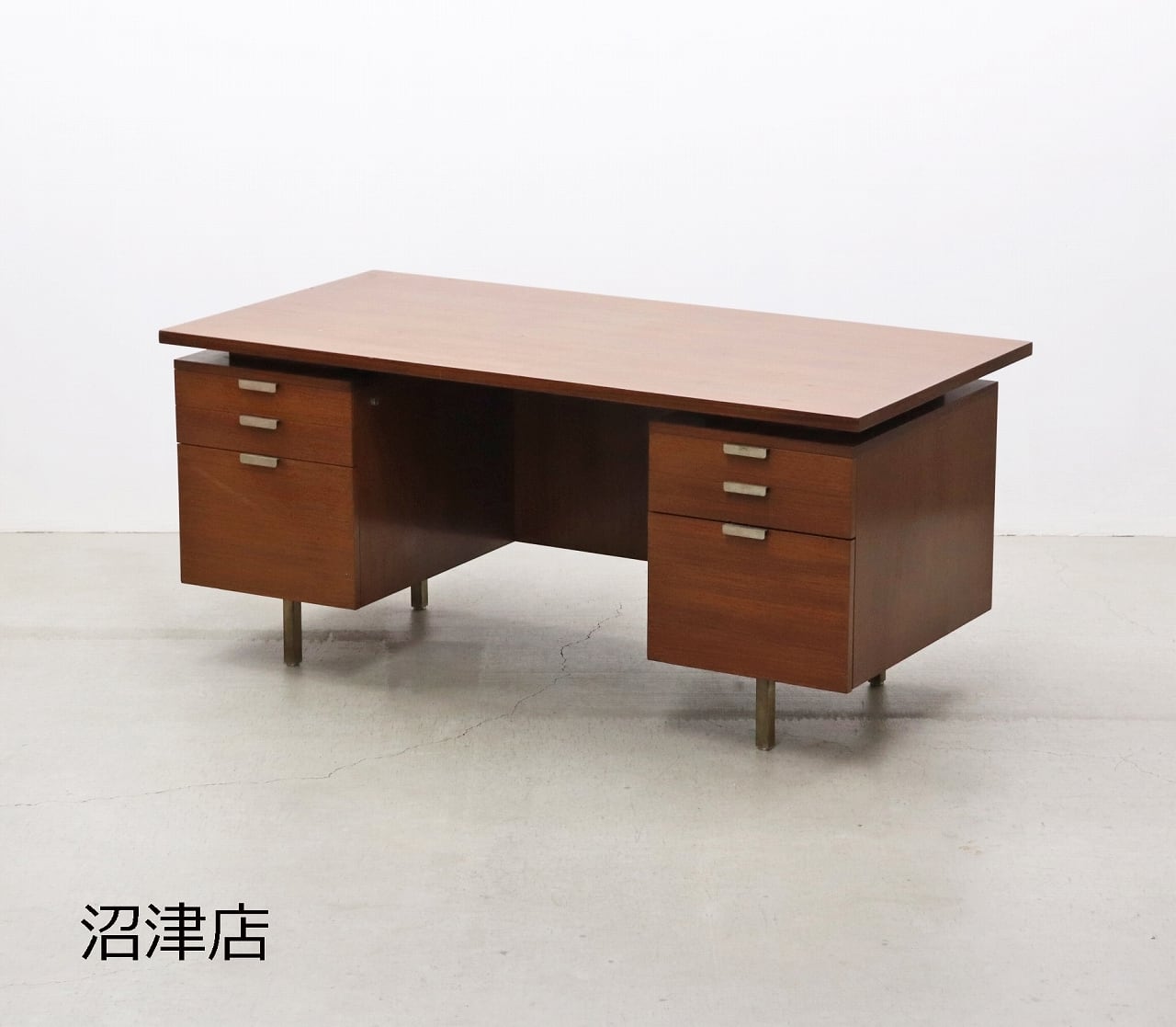 【沼津店】 ヴィンテージ チーク材 両袖机 デスク PC 書斎 作業台 レトロ モダン 北欧デザイン PKT18119