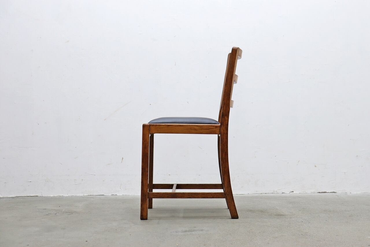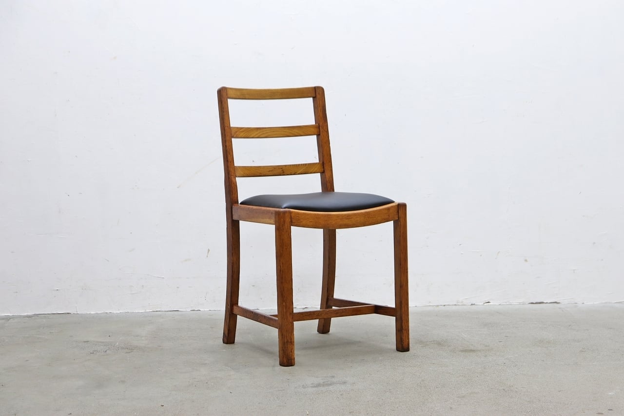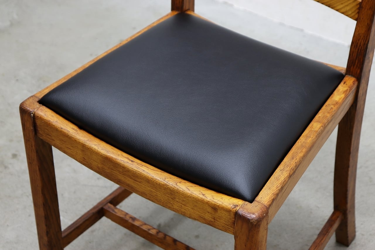 フレームにオーク材を使用、座面は合皮に張替済みで良好な状態です。