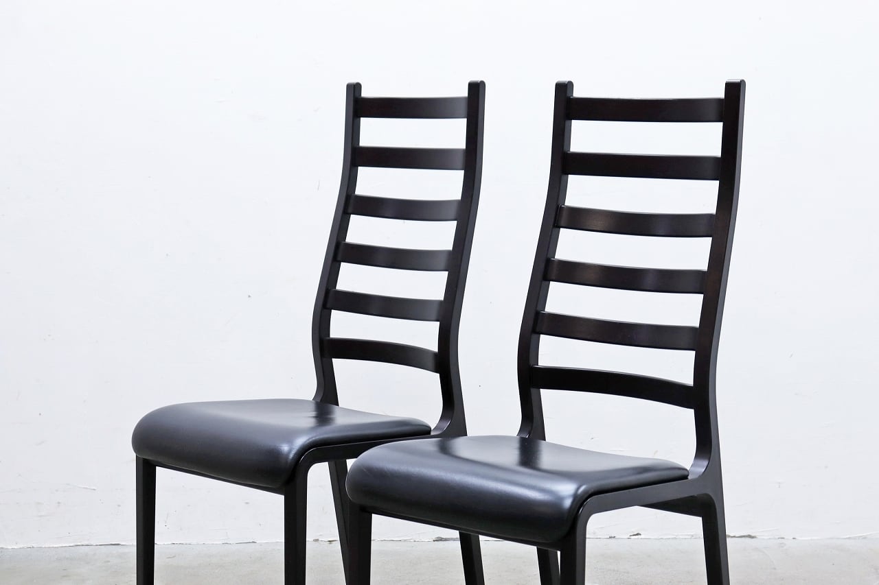 在庫3脚 TENDO 天童木工 ラダーバック 本革 ダイニングチェア ヴィンテージ レトロ ブラック 黒 PLT16118