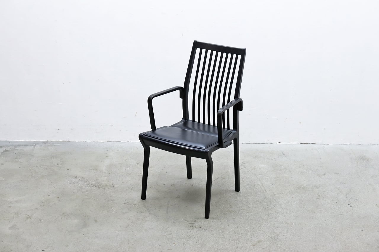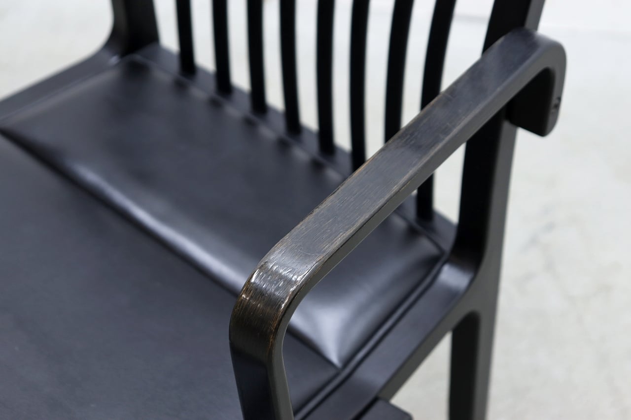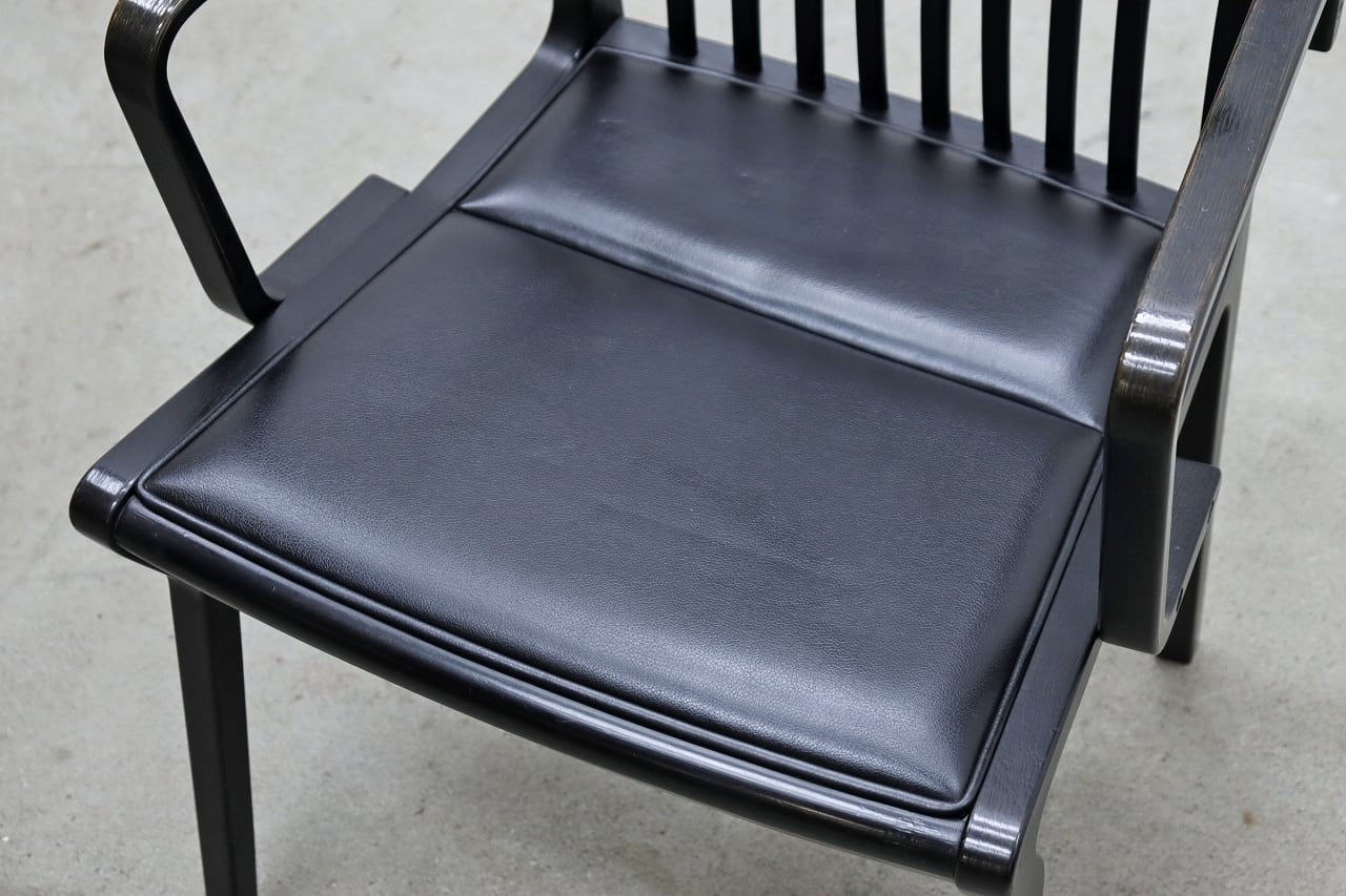 在庫2脚 TENDO 天童木工 アーム 本革 ダイニングチェア ヴィンテージ レトロ ブラック 黒 1 PLT16118