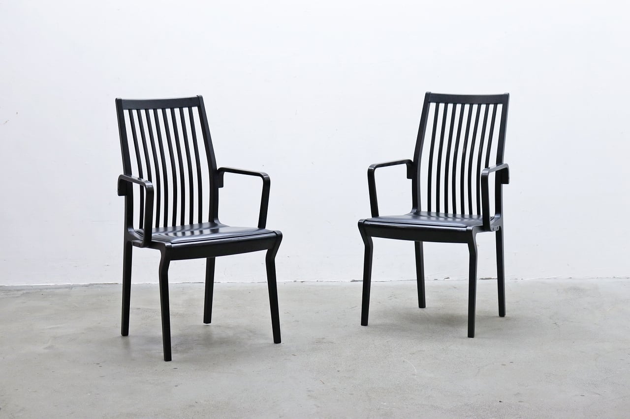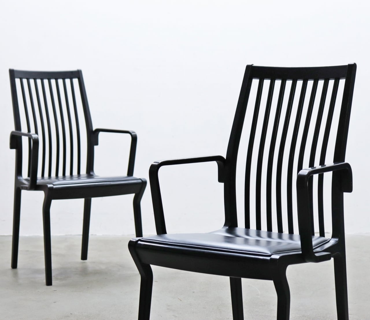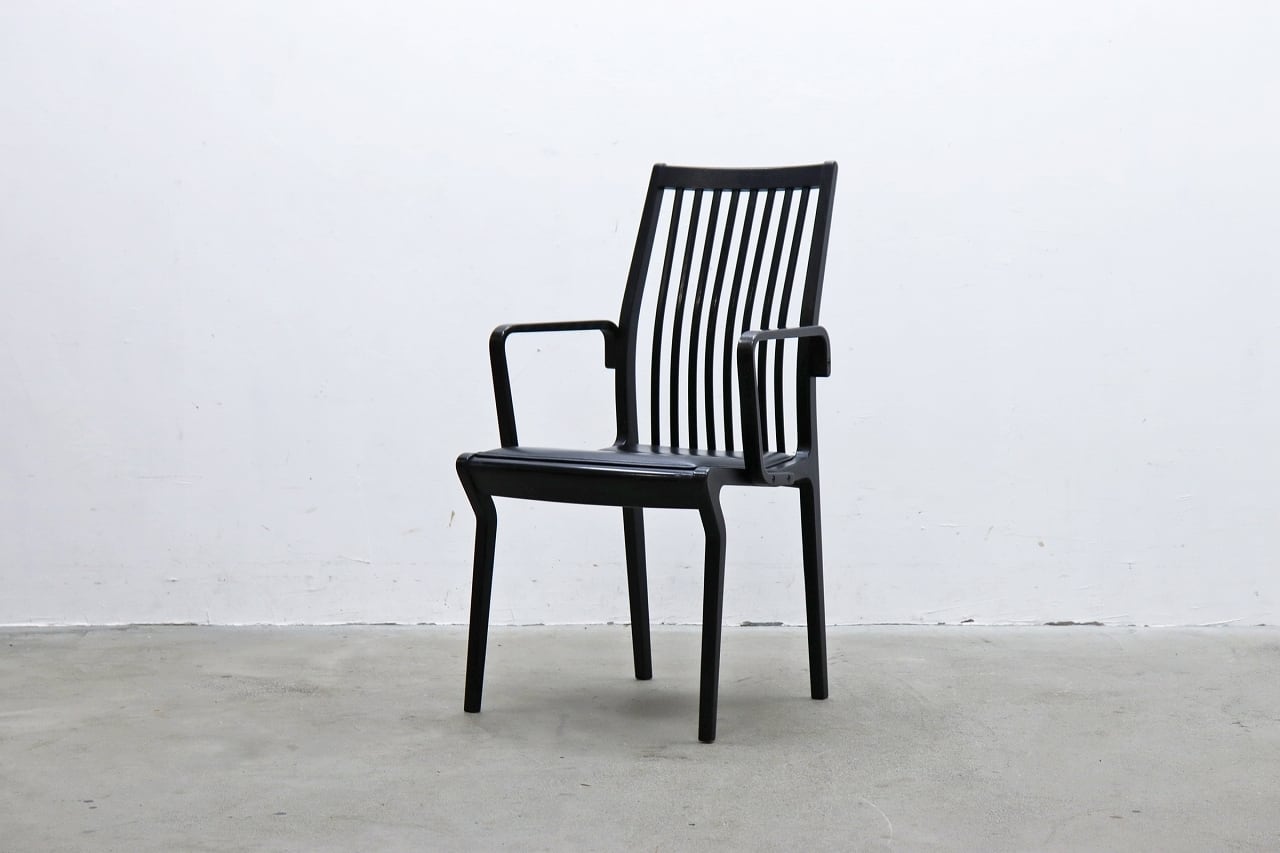 在庫2脚 TENDO 天童木工 アーム 本革 ダイニングチェア ヴィンテージ レトロ ブラック 黒 1 PLT16118