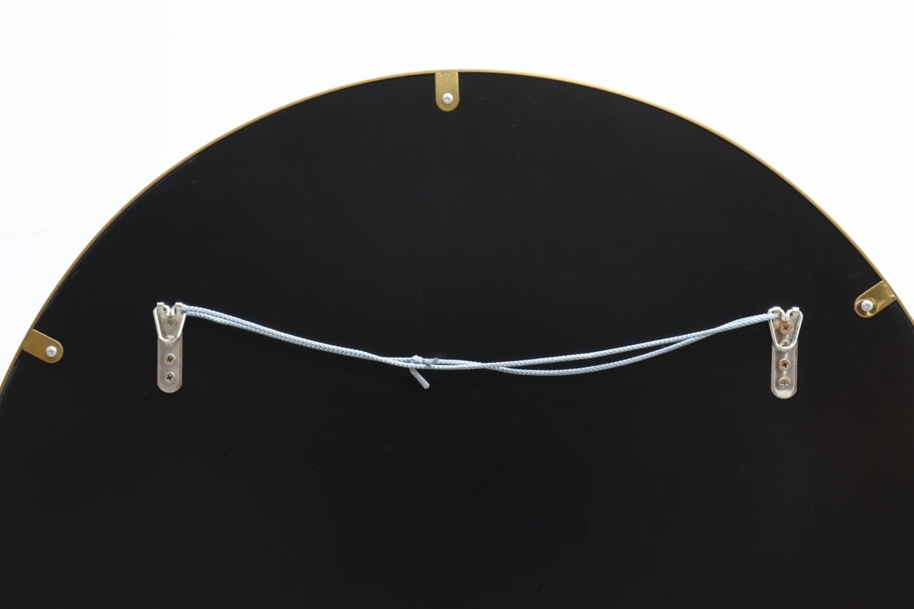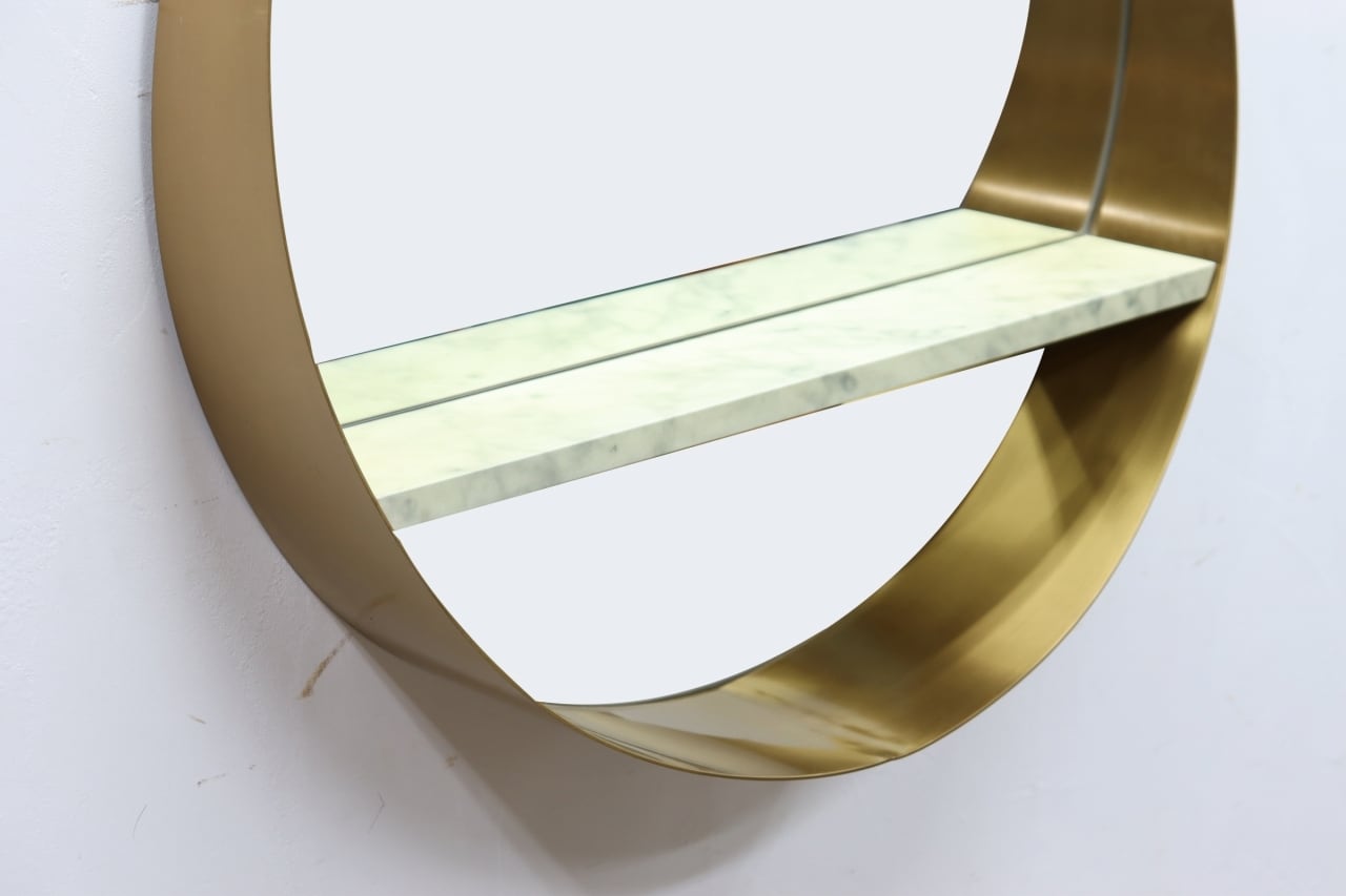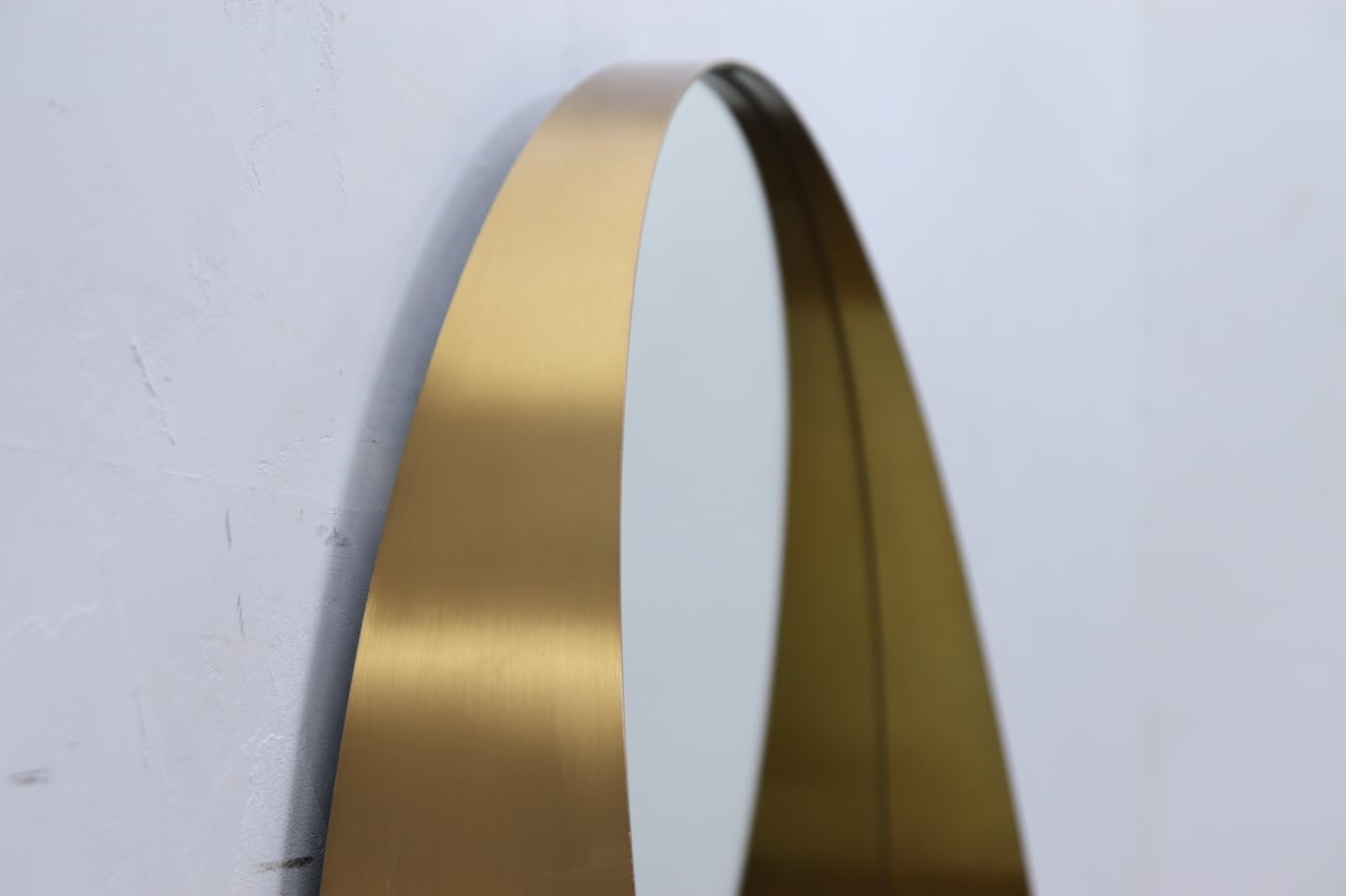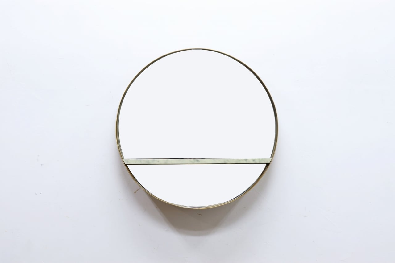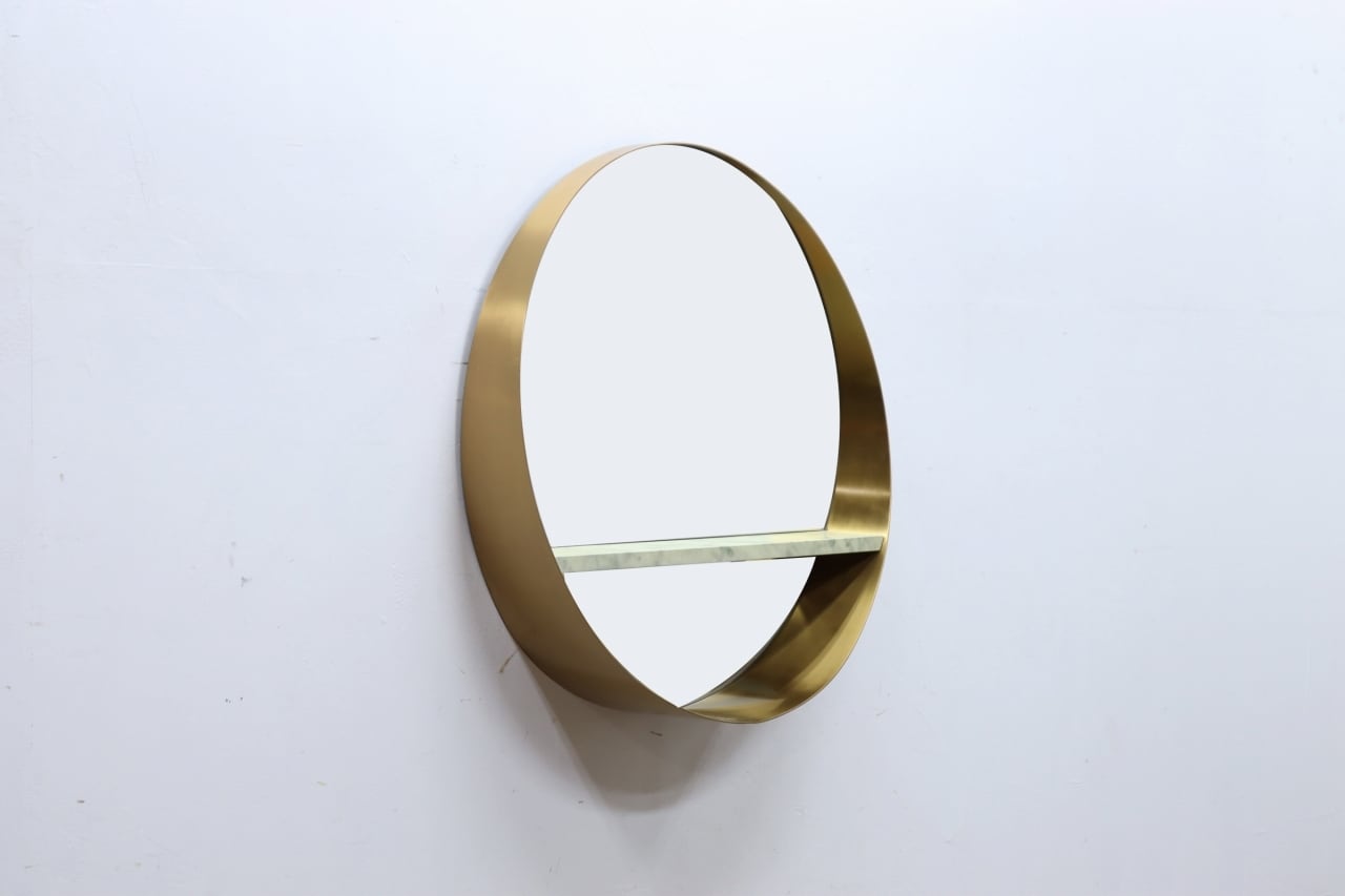 真鍮色のフレームが印象的な、ウォールタイプのラウンドミラー。