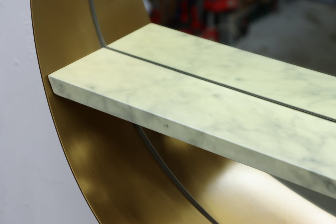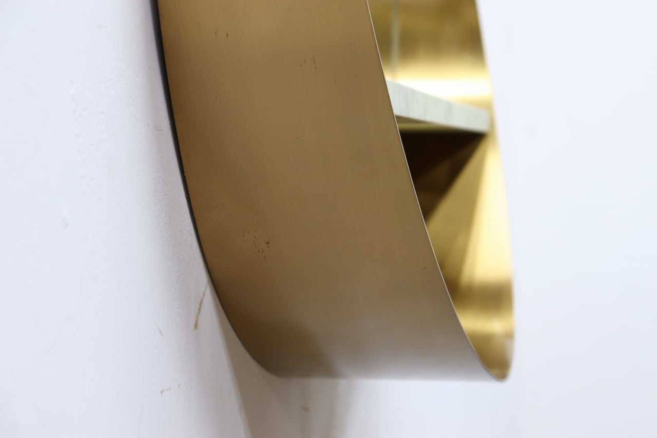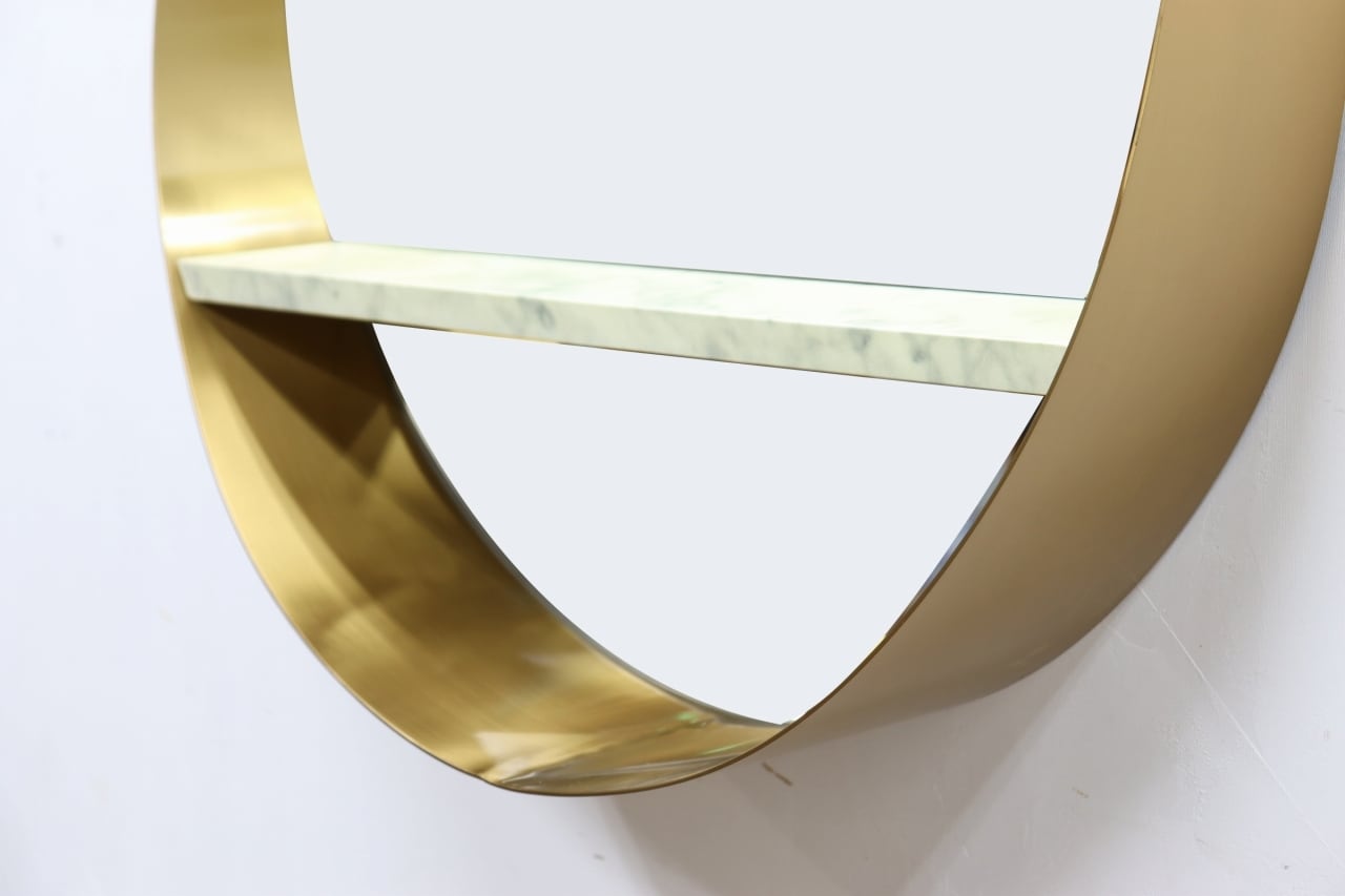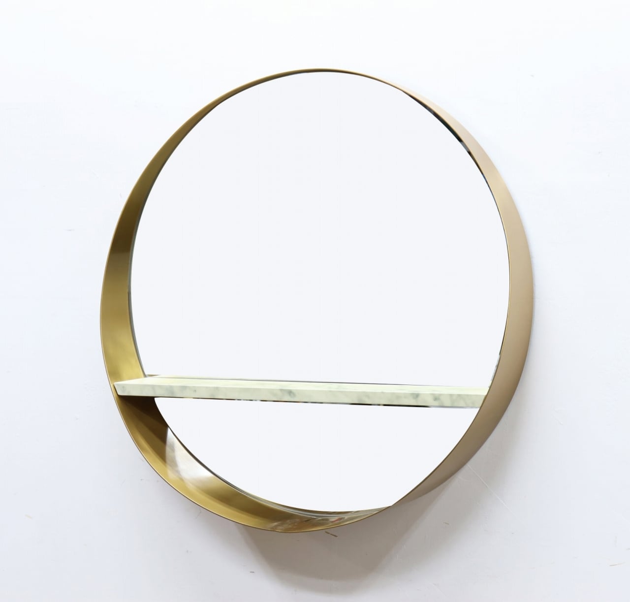 真鍮色のフレームが印象的な、ウォールタイプのラウンドミラー。