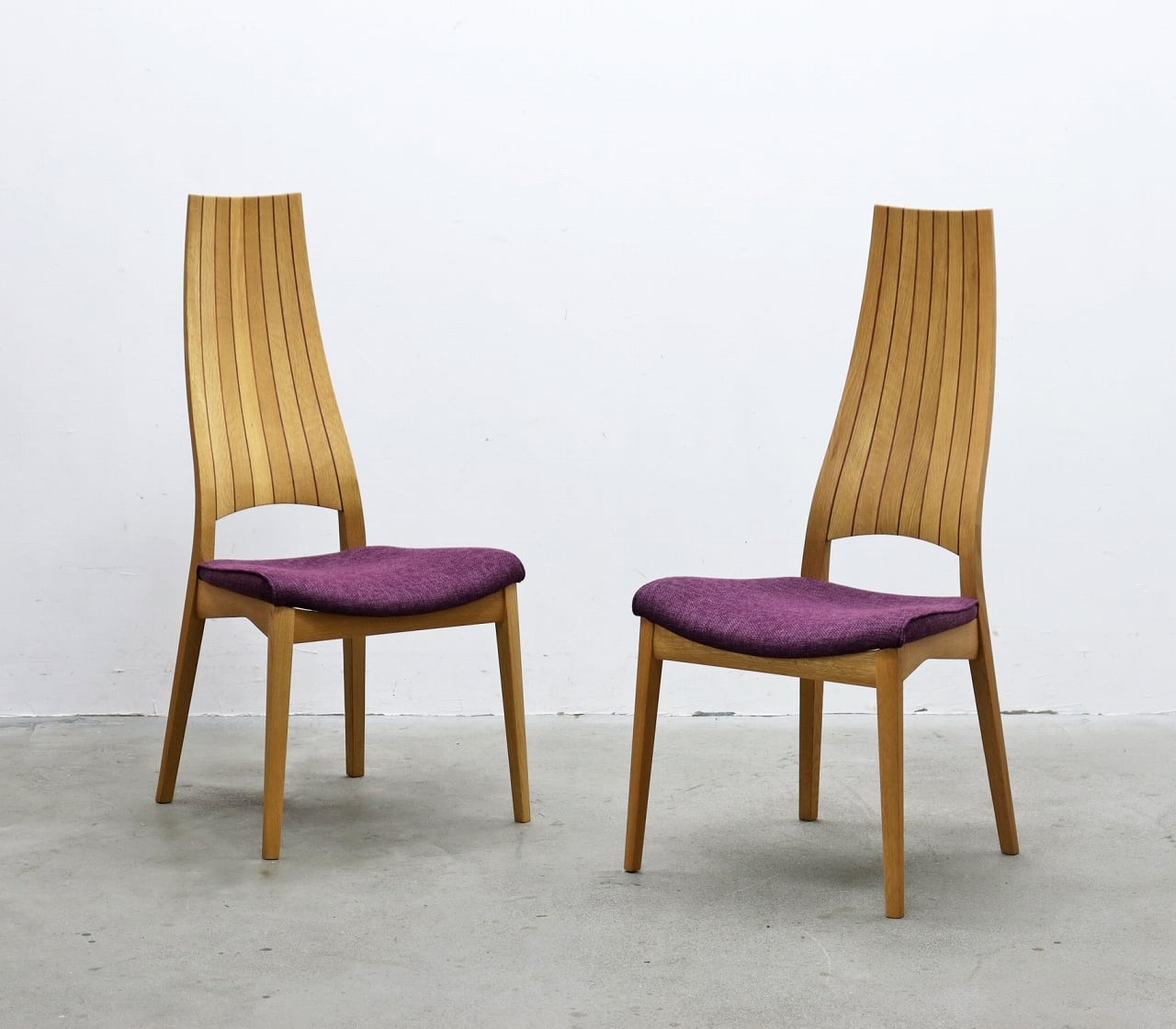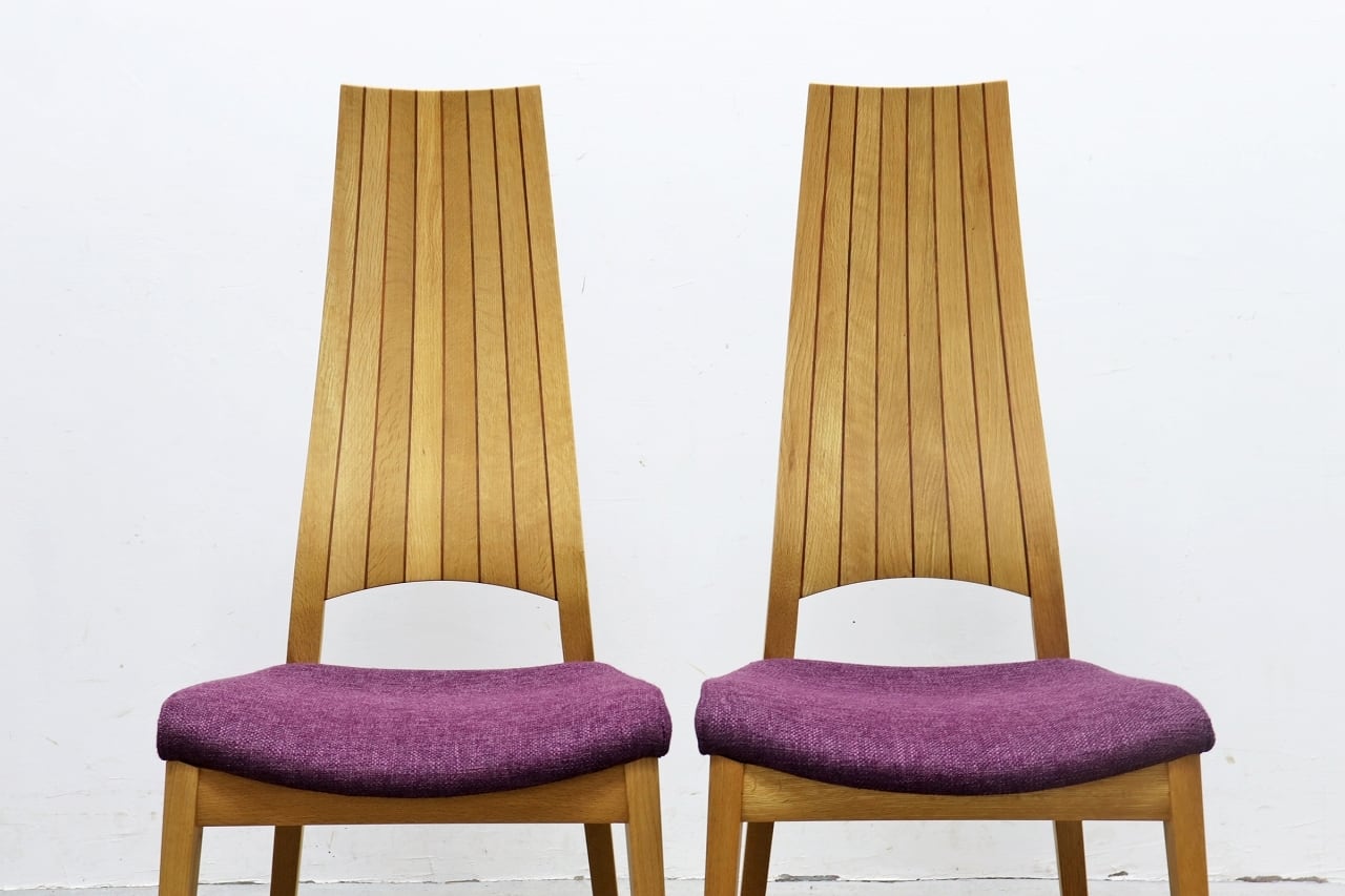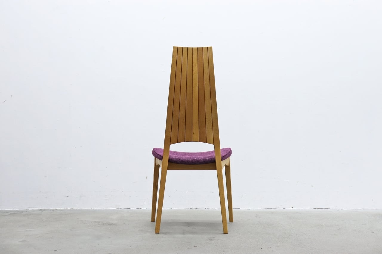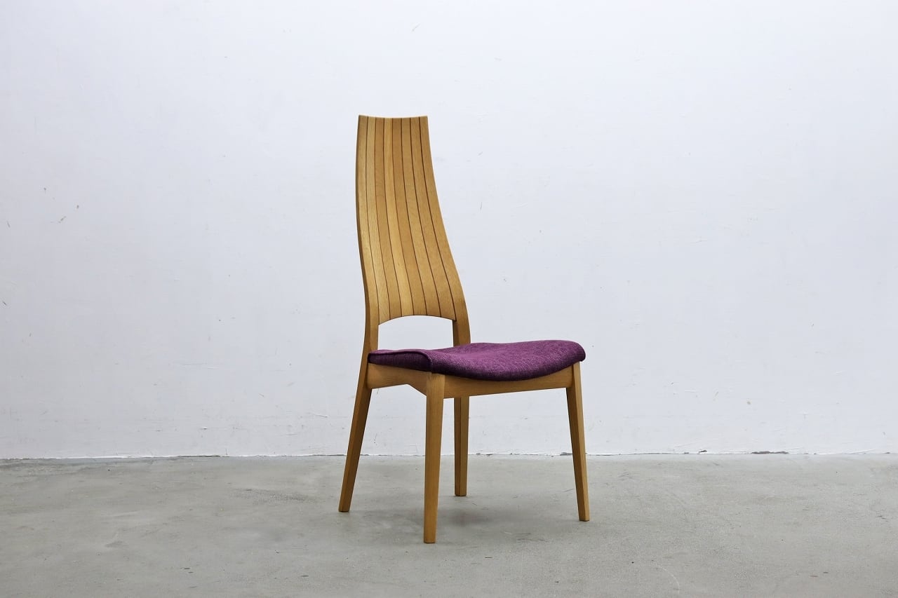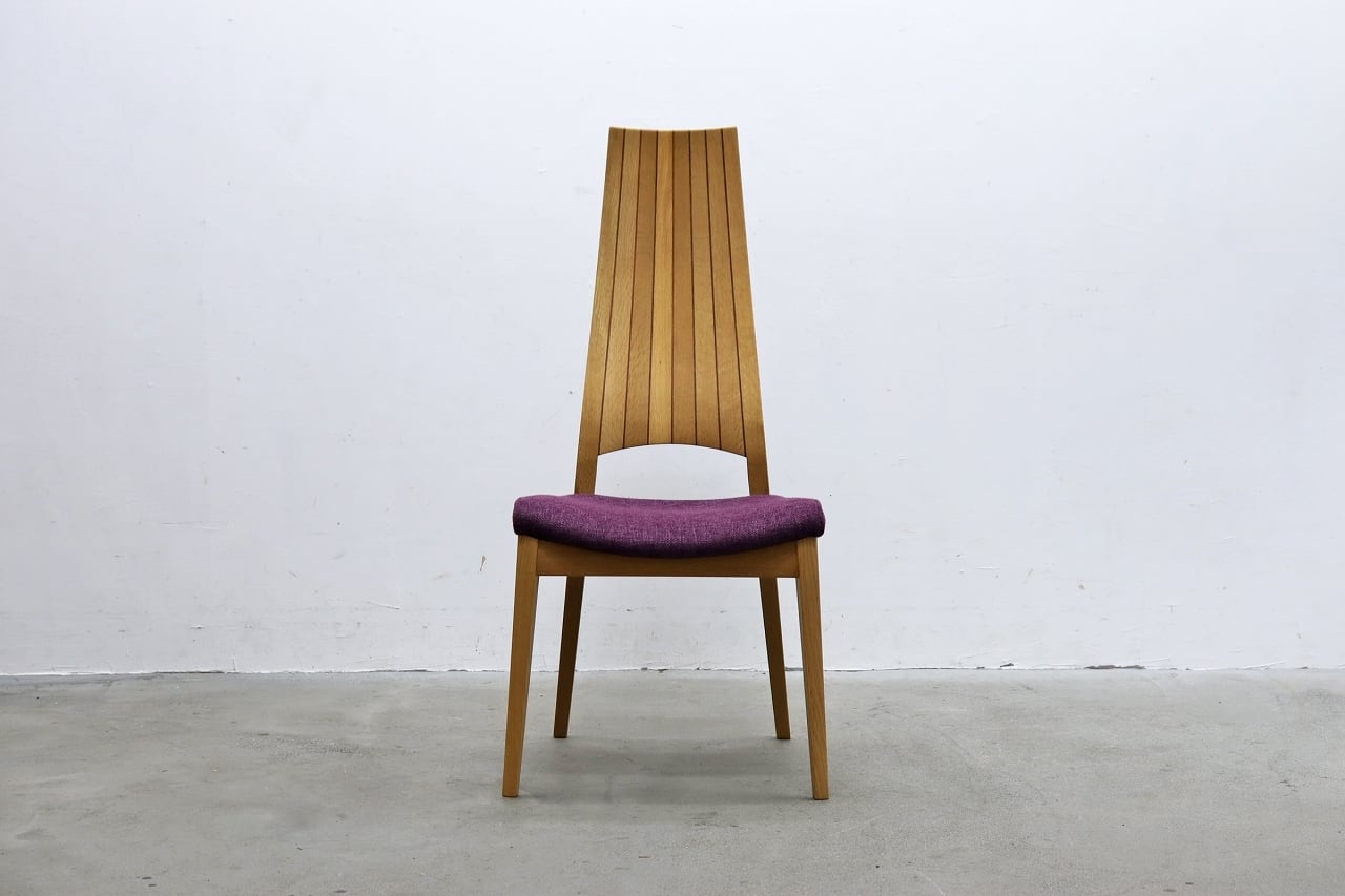 花弁をモチーフとした優美なラインの背もたれは、 オーク材でブラックウォールナット材を挟むことにより縦に伸びるラインを強調。