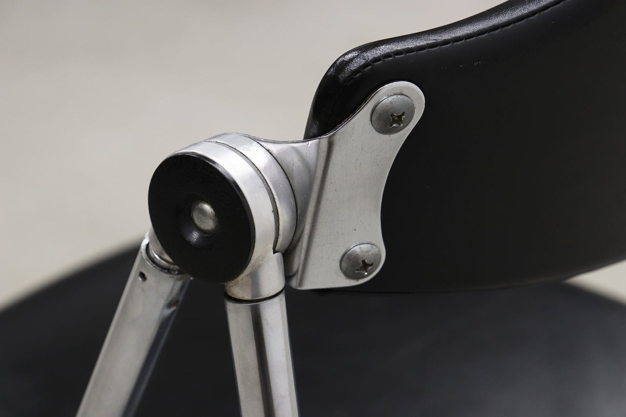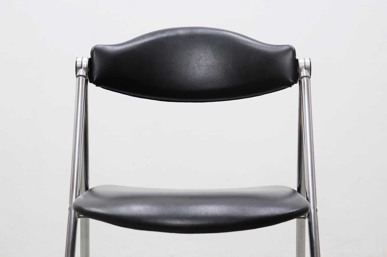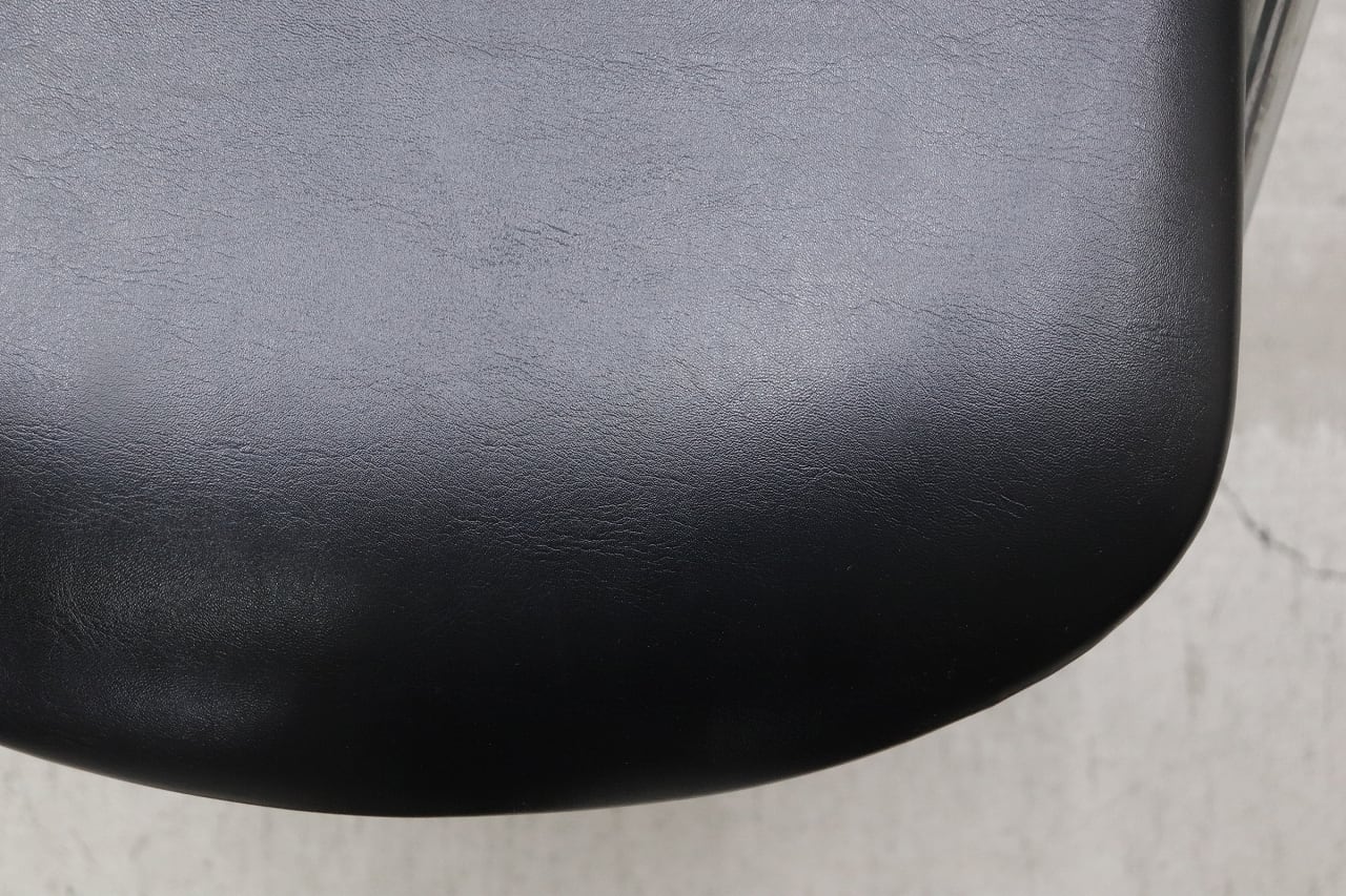 ブラックの合皮座面・背もたれと、クローム仕上げのスチールフレームの組み合わせがすっきりとした印象です。
