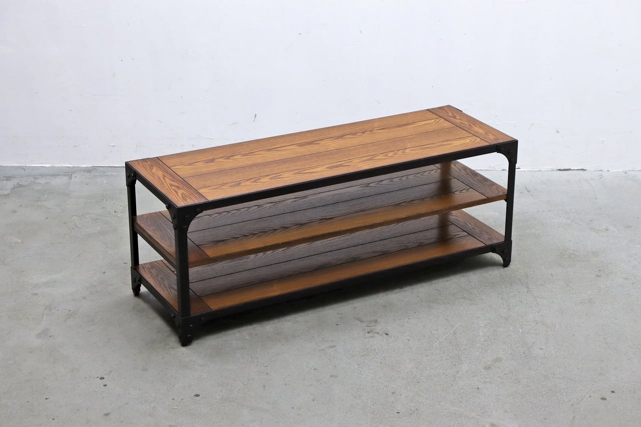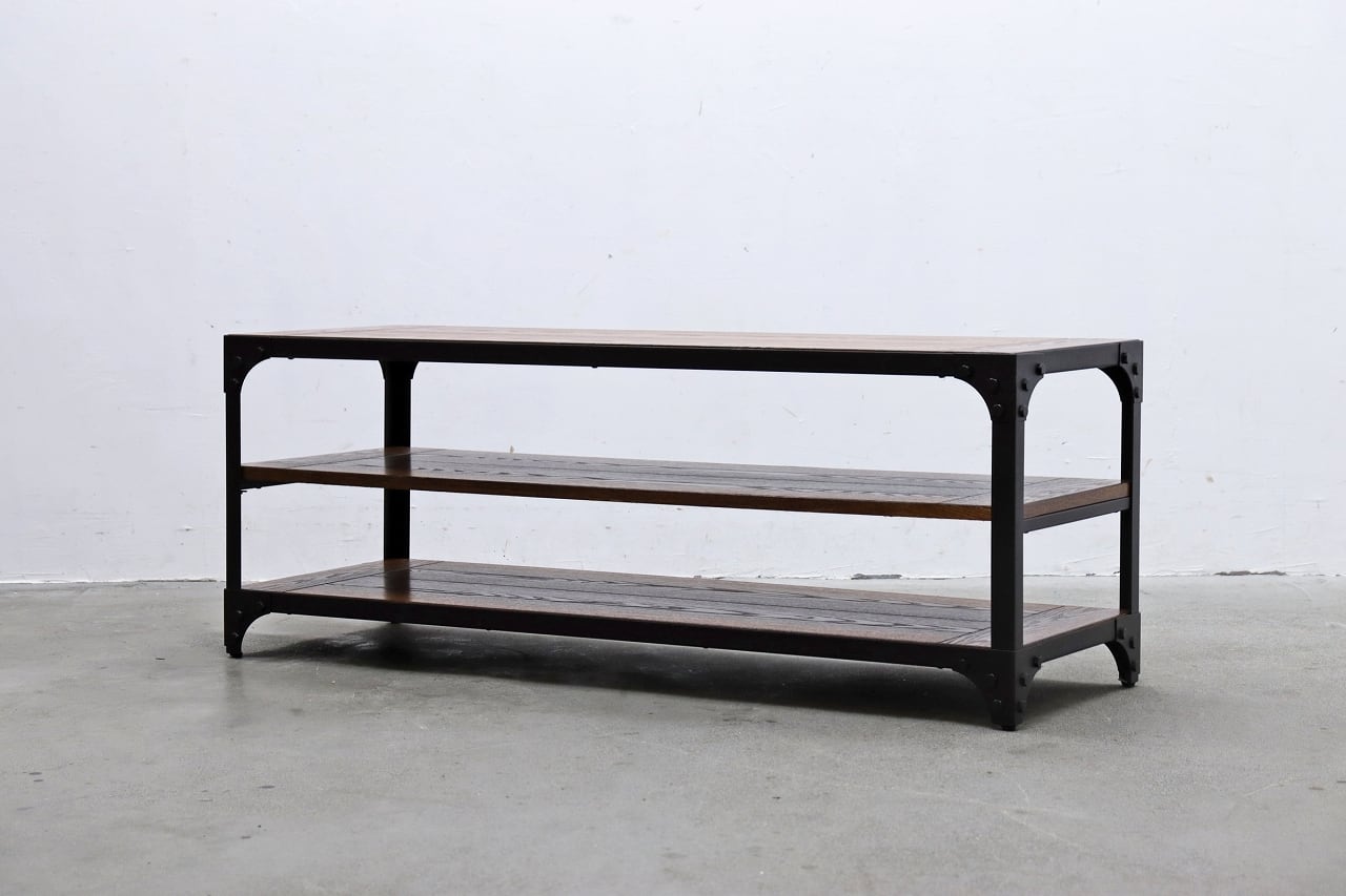 アイアンフレームにタモ突板の棚板を組み合わせたローボードです。