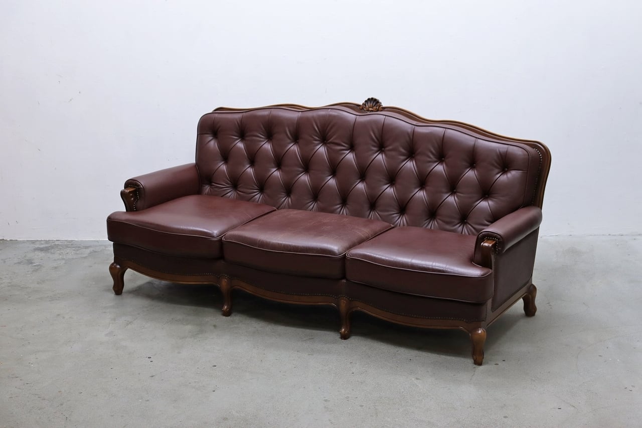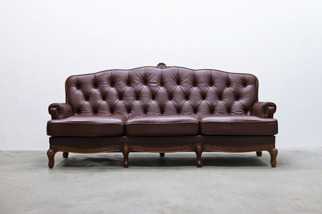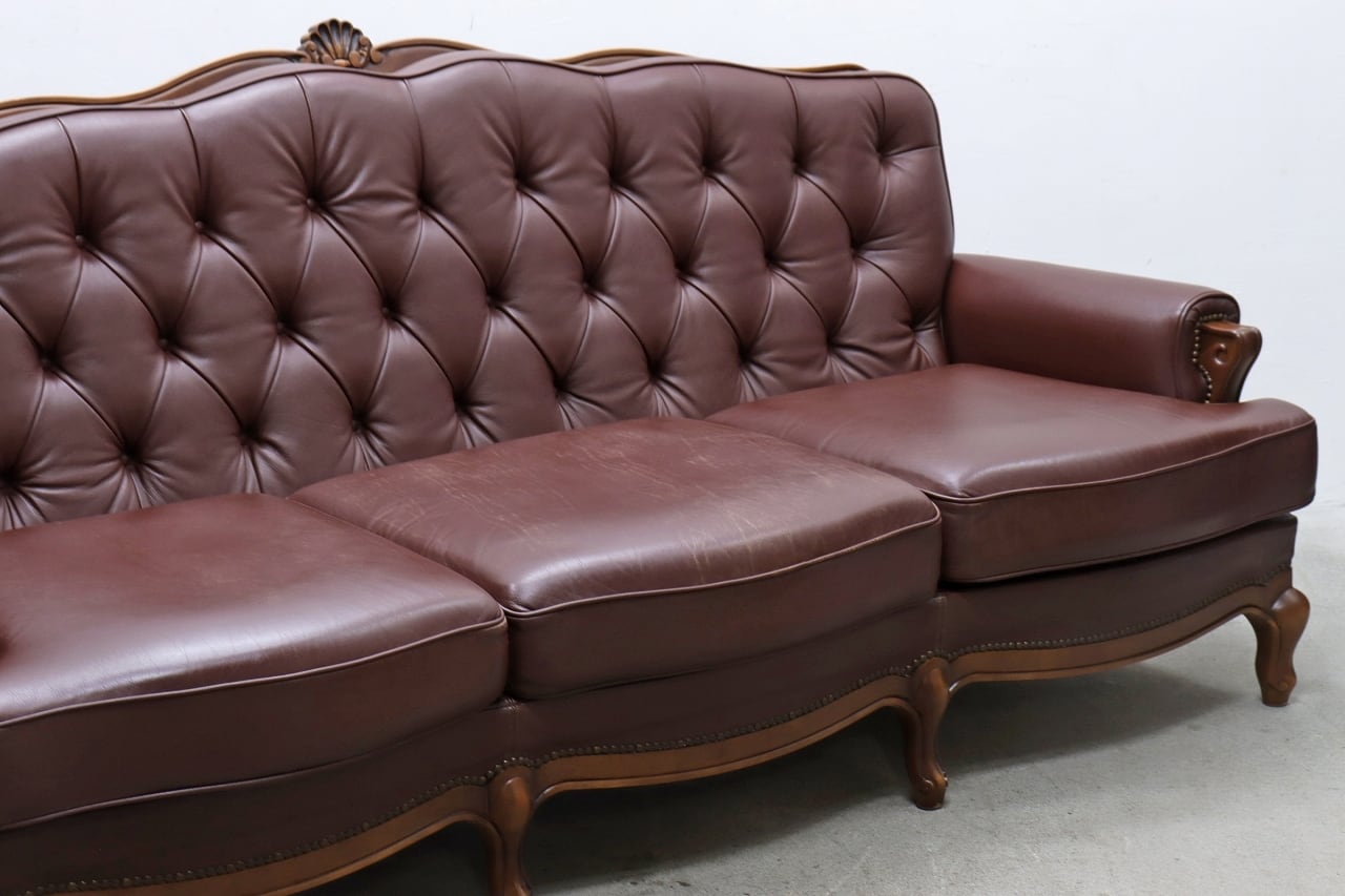 karimoku カリモク 本革 クラシカル 3Pソファ 猫脚 レザー ヴィンテージ アンティーク RAT06041