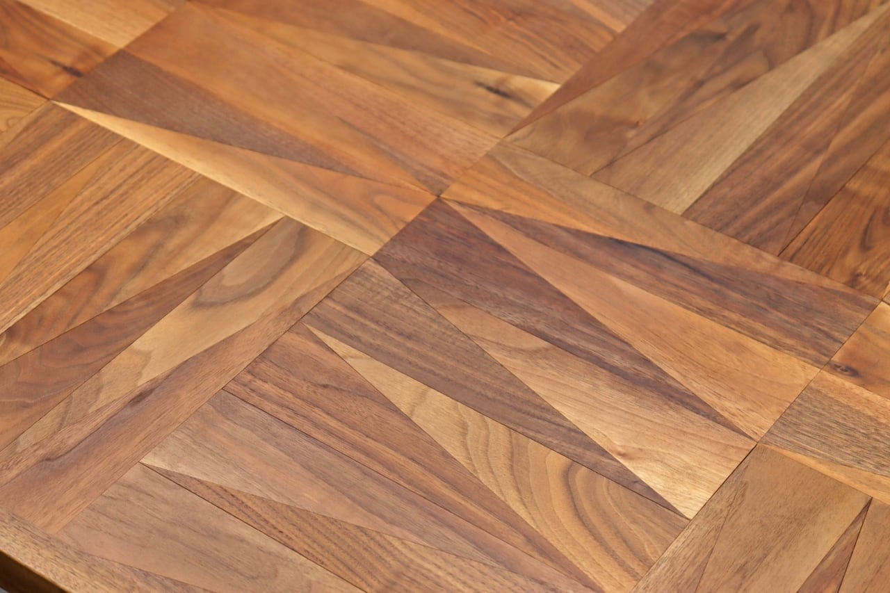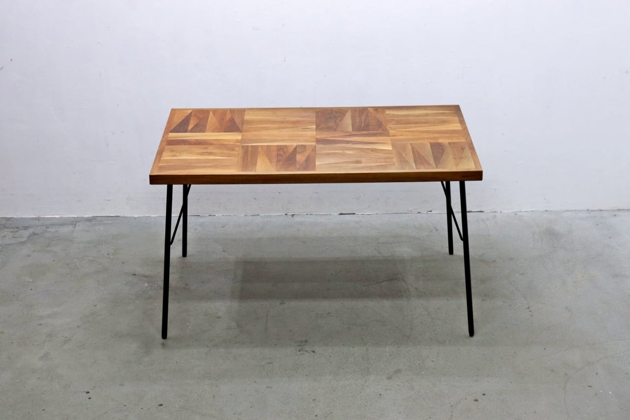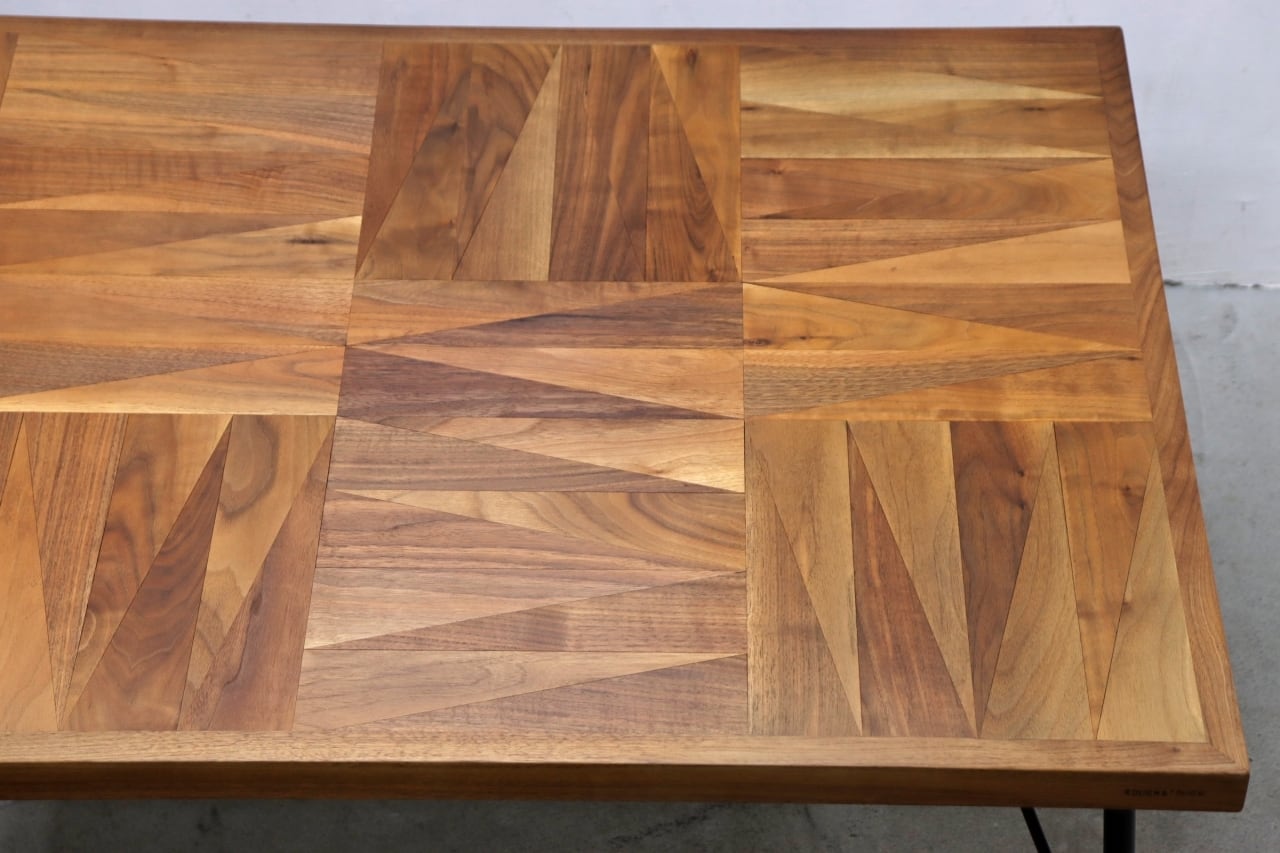 三角形にカットし、パズルのように組み合わせて作られた天板が印象的。