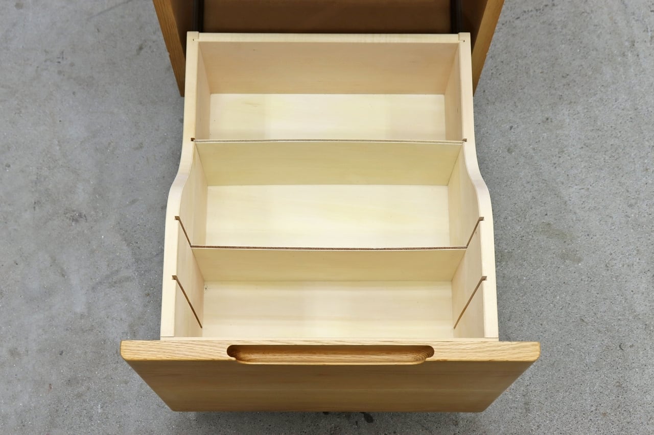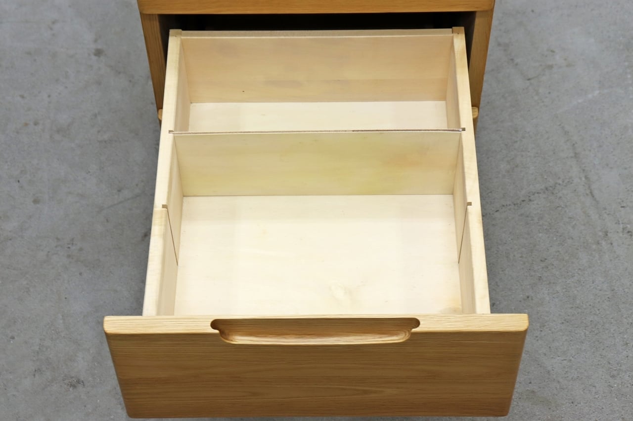 ワゴンは横に並べての使用はもちろん、天板を外してデスク下に収める事も出来ます。
