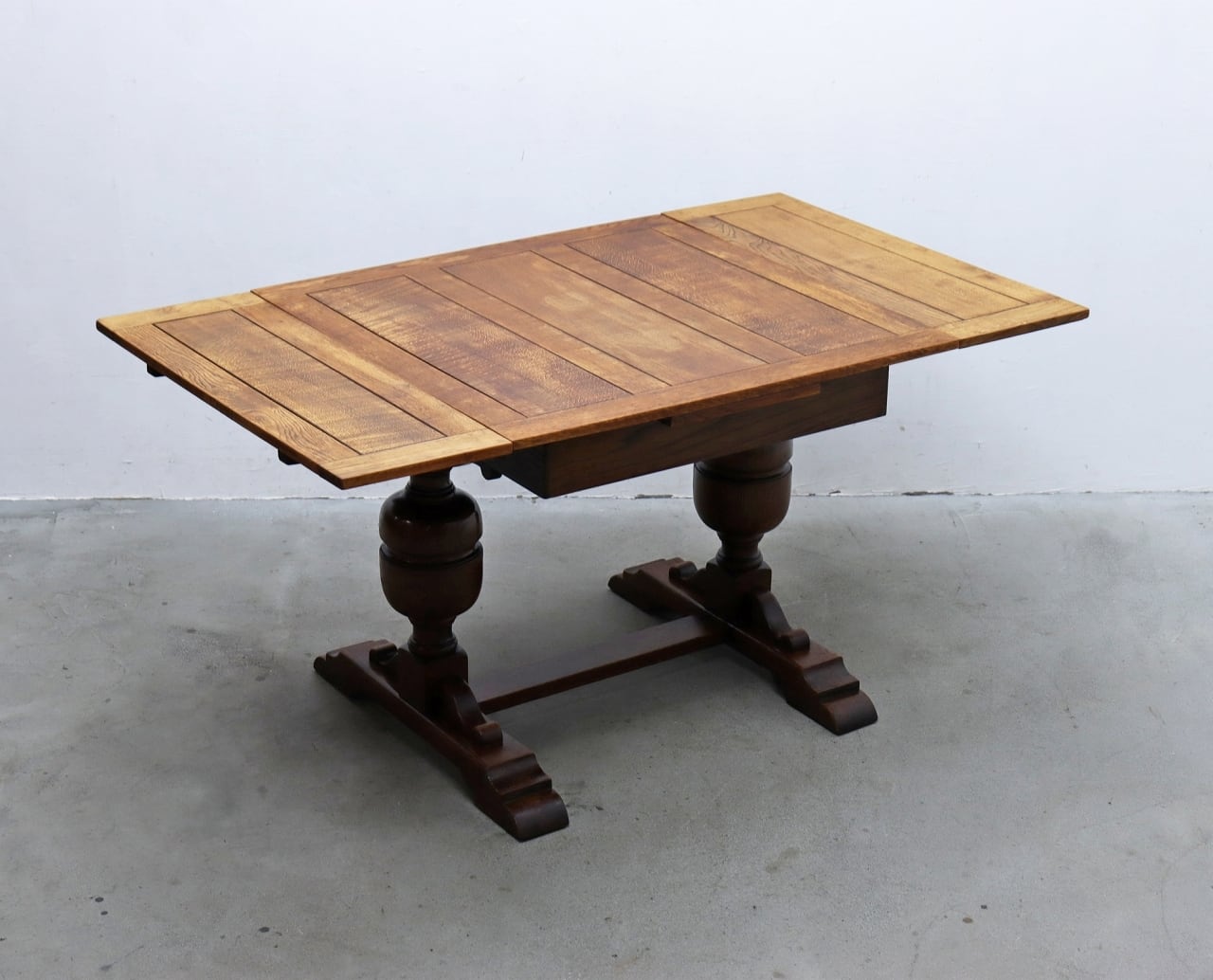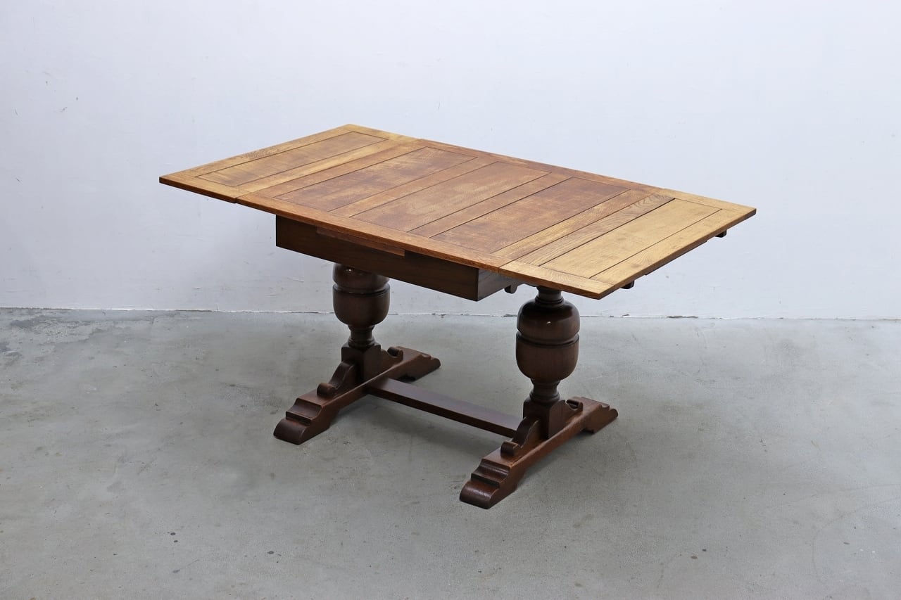 イギリス製、オーク材を使用したヴィンテージドローリーフテーブルです。