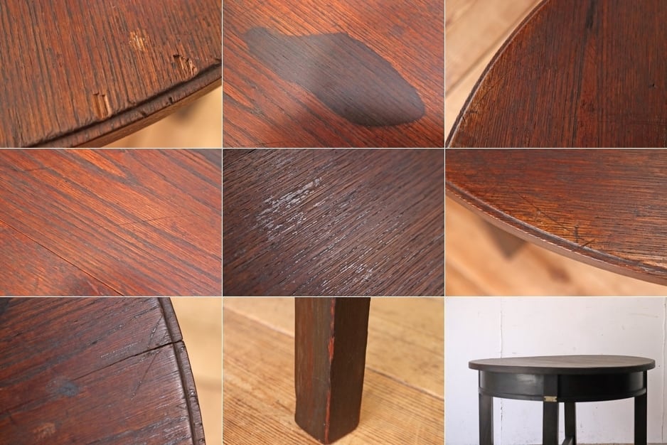 レトロ 円卓 丸テーブル 座卓 机 ラウンド センターテーブル オーク材 ヴィンテージ/RAT27159
