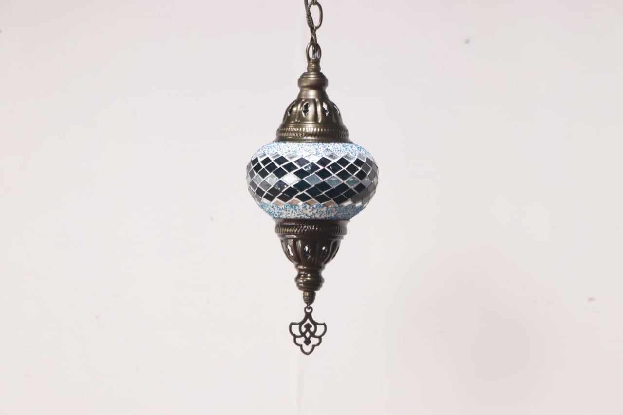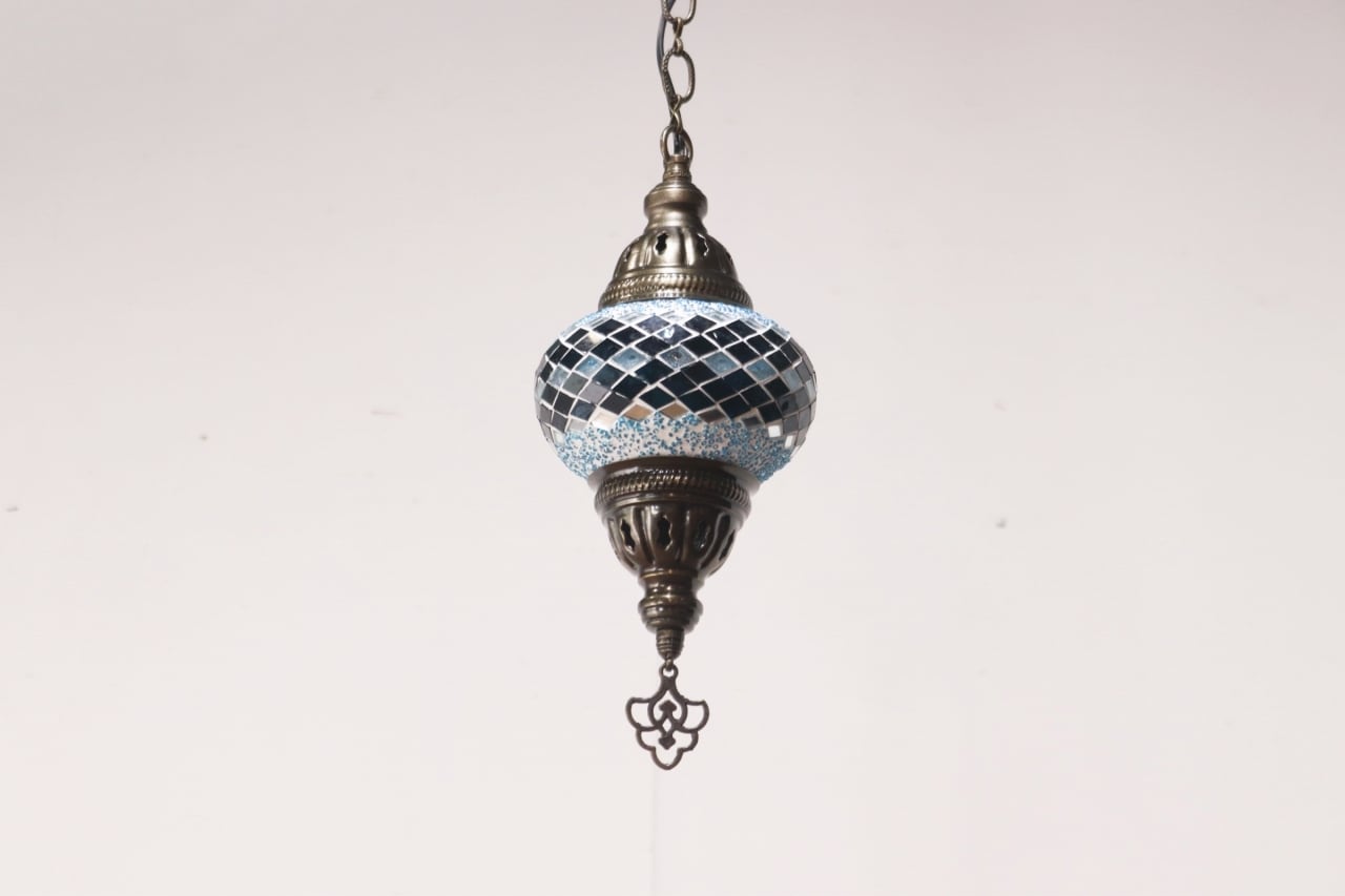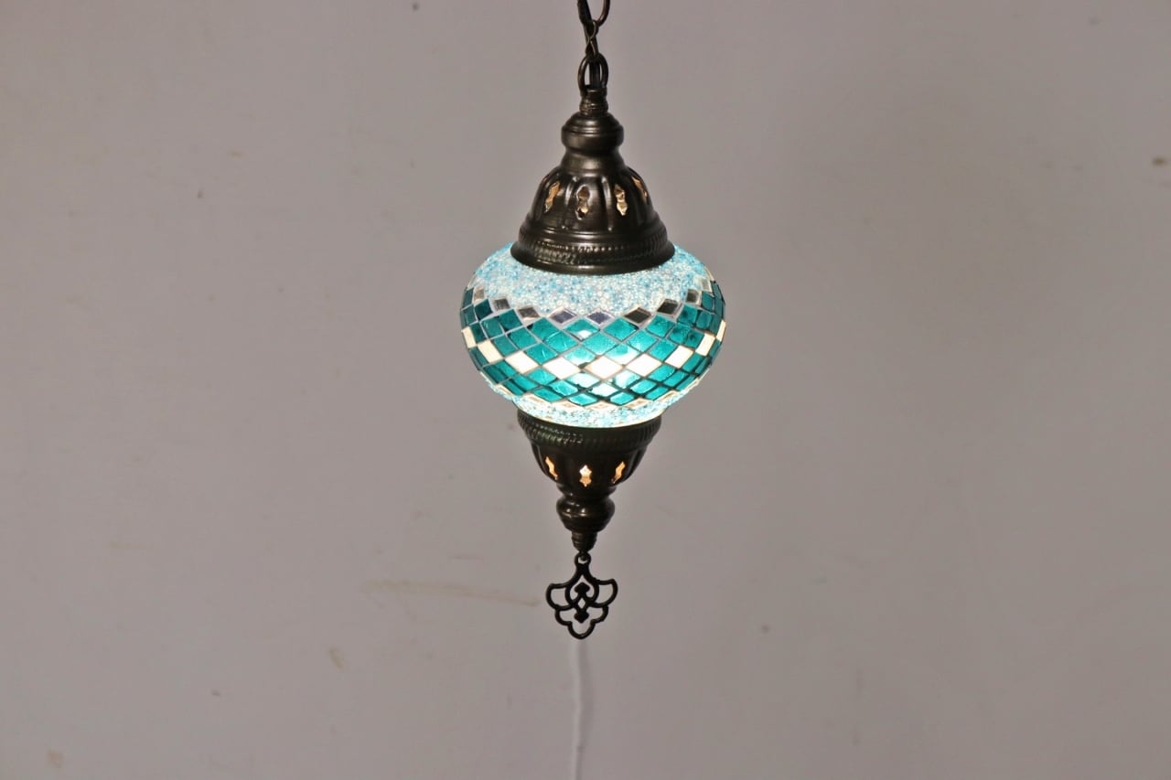 モザイクランプ ペンダントライト ステンドグラス 照明 吊り下げ 引っ掛けシーリング ブルー 青 C