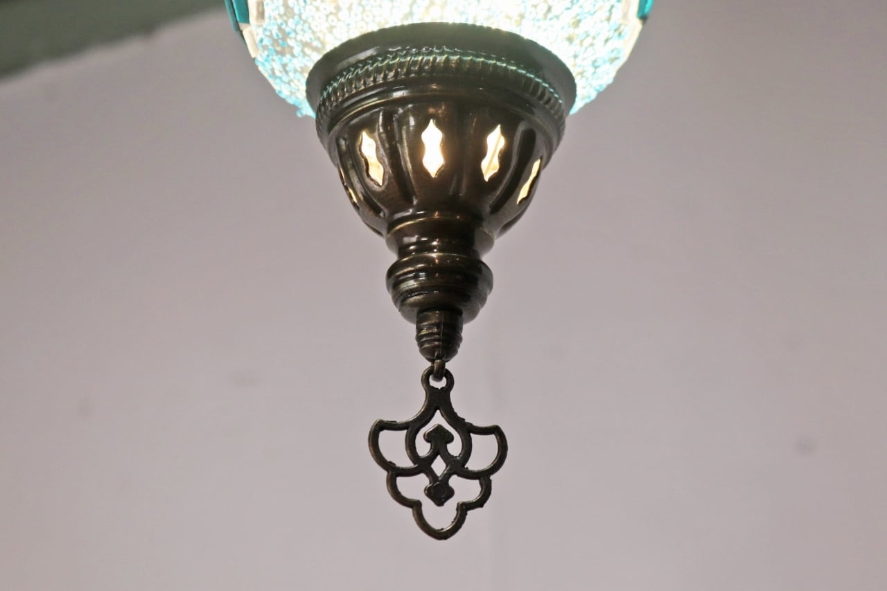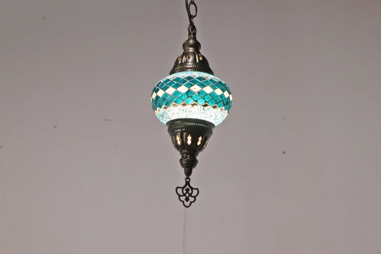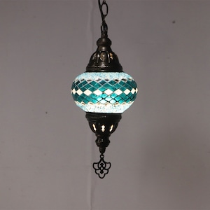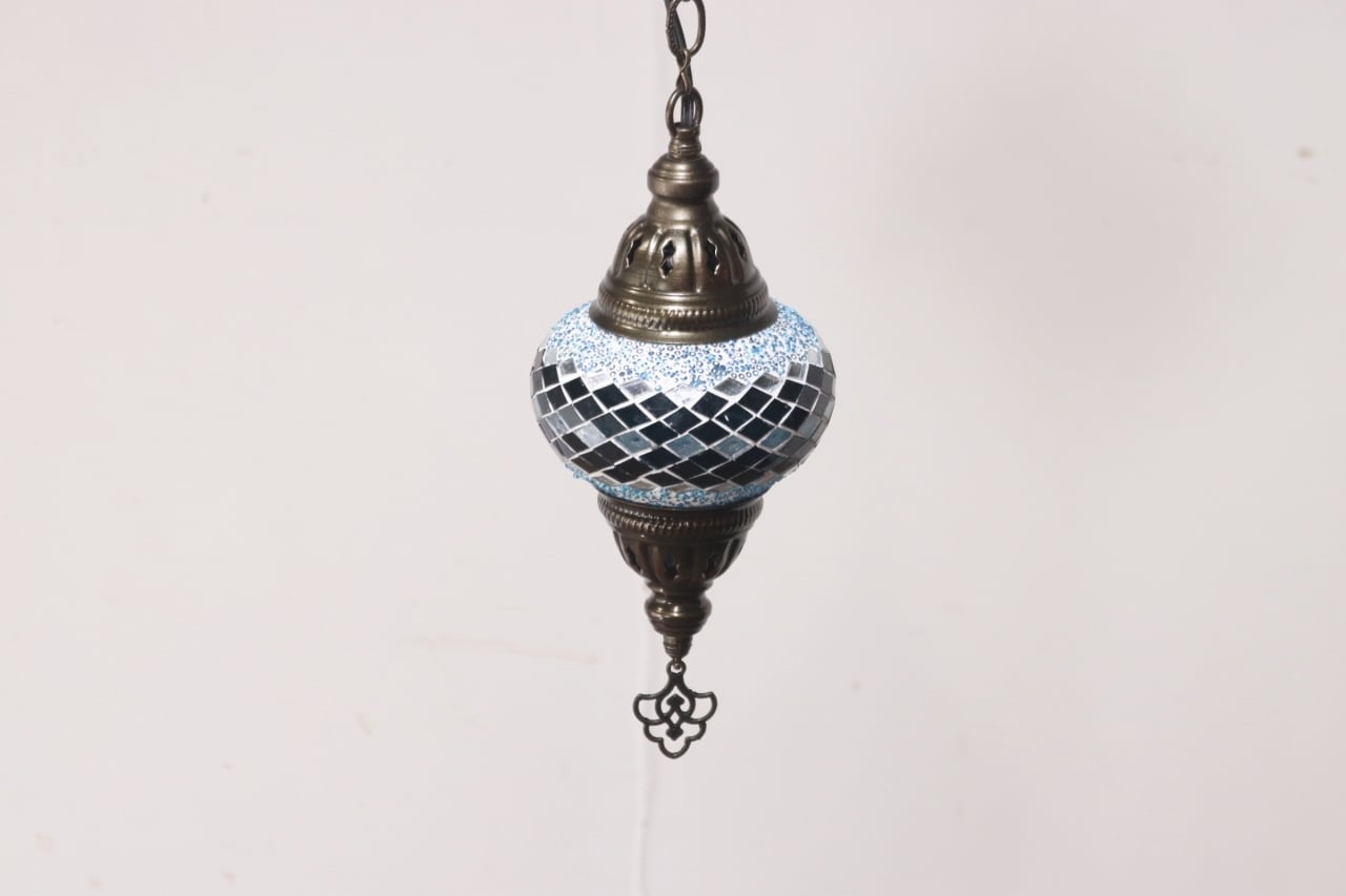 モザイクランプ ペンダントライト ステンドグラス 照明 吊り下げ 引っ掛けシーリング ブルー 青 C