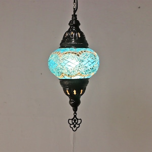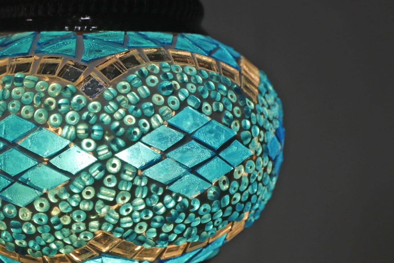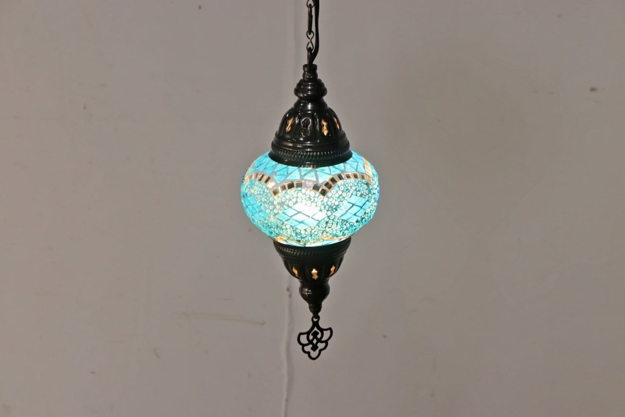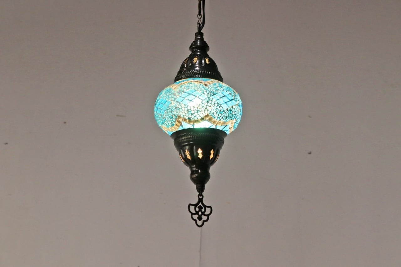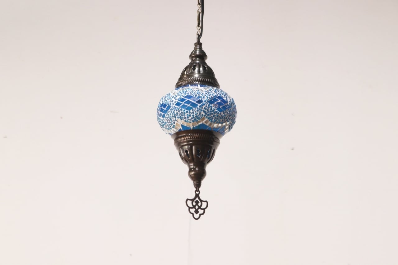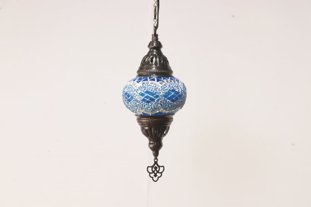 モザイクランプ ペンダントライト ステンドグラス 照明 吊り下げ 引っ掛けシーリング ブルー 青 D/RAT20104