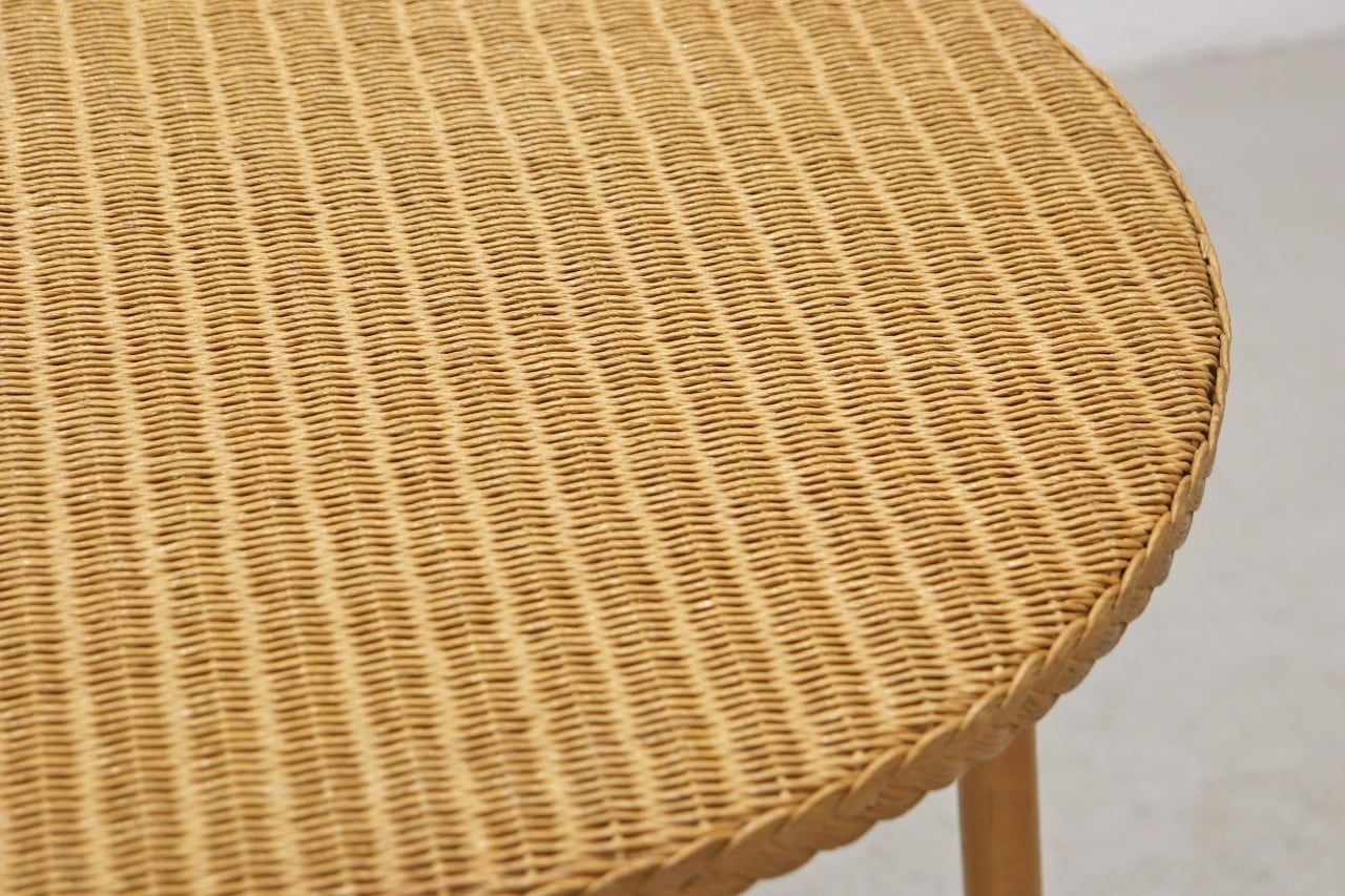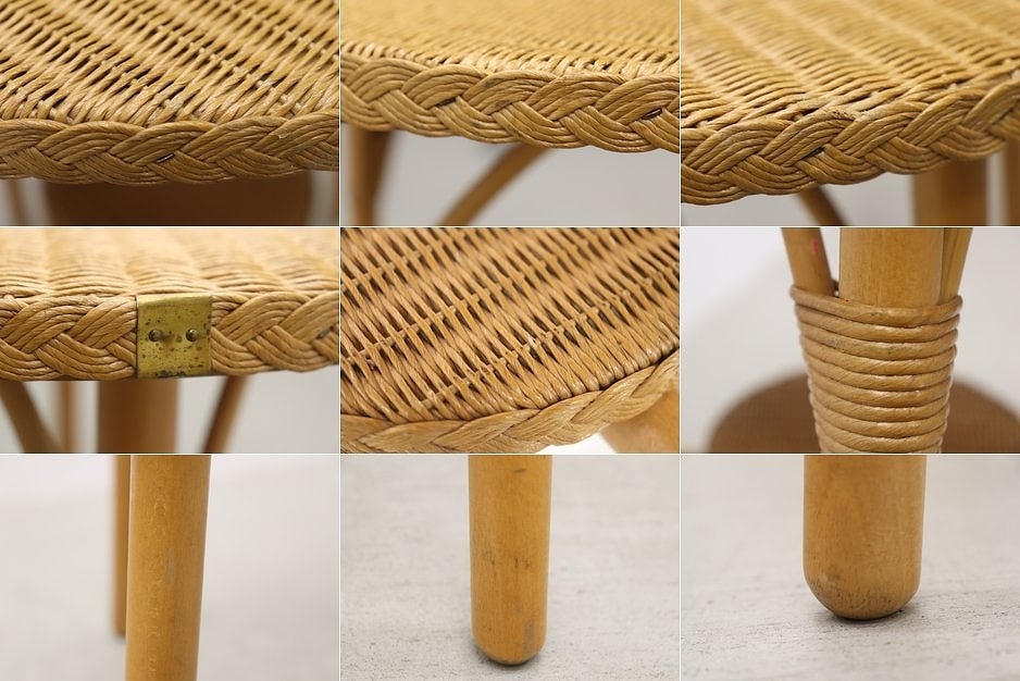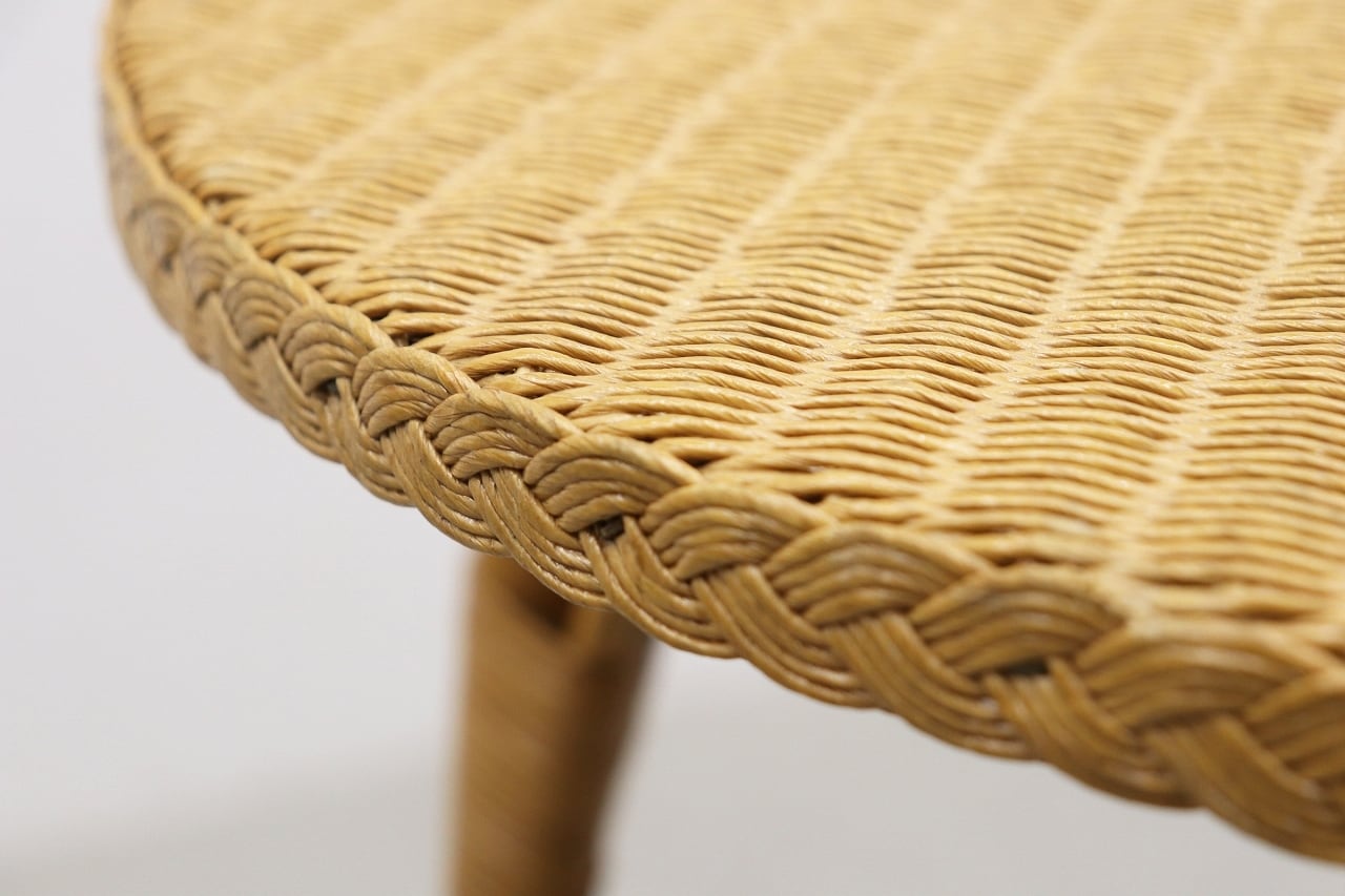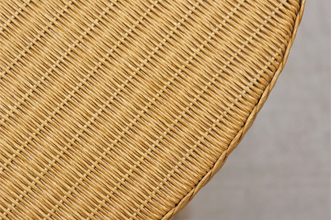 鉄線に紙を巻いて作られる、「ロイドルーム」の技法によって作られた人工籐の編地を使用。