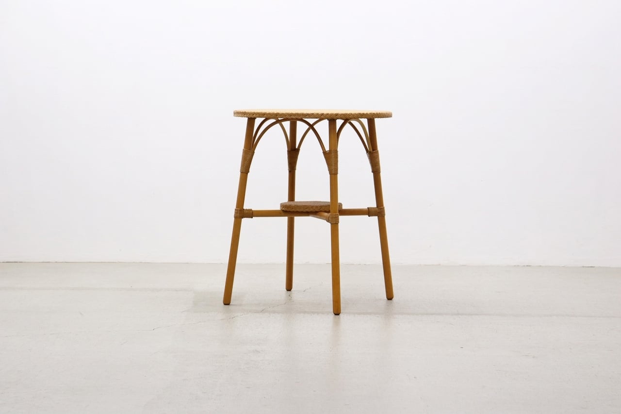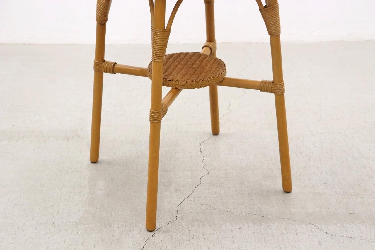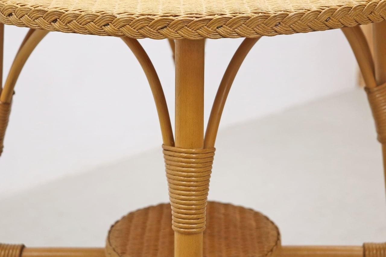 鉄線に紙を巻いて作られる、「ロイドルーム」の技法によって作られた人工籐の編地を使用。