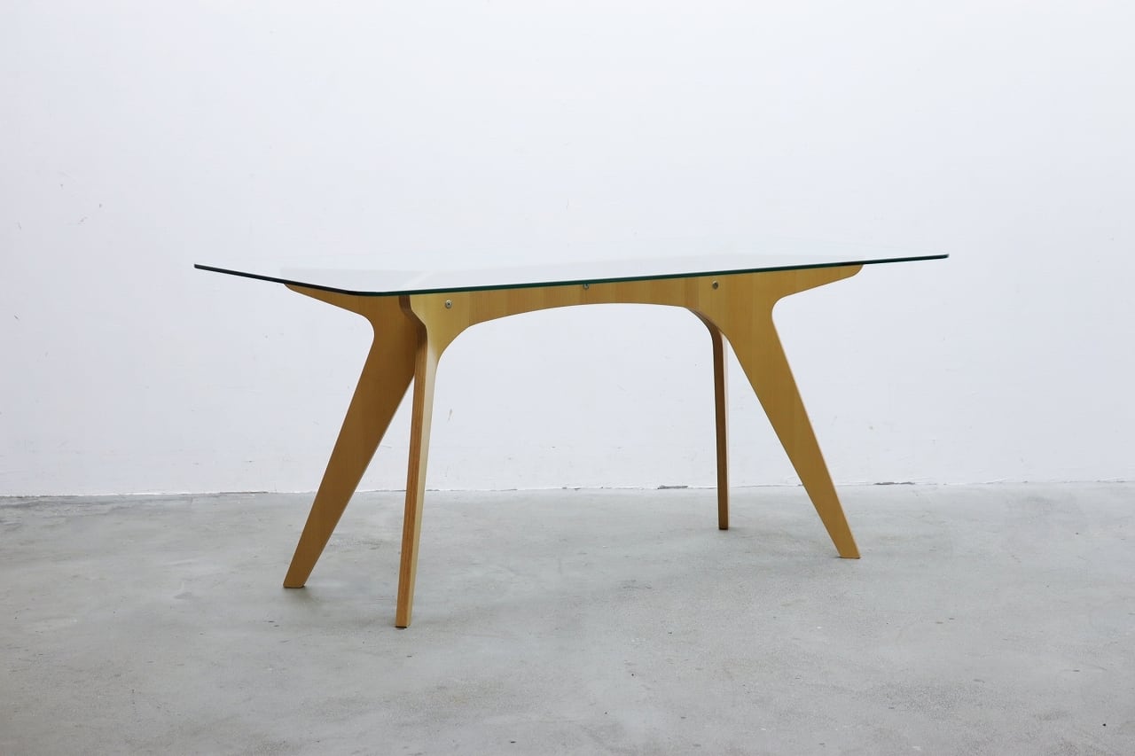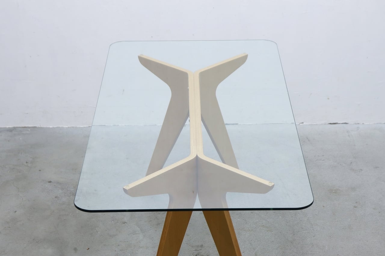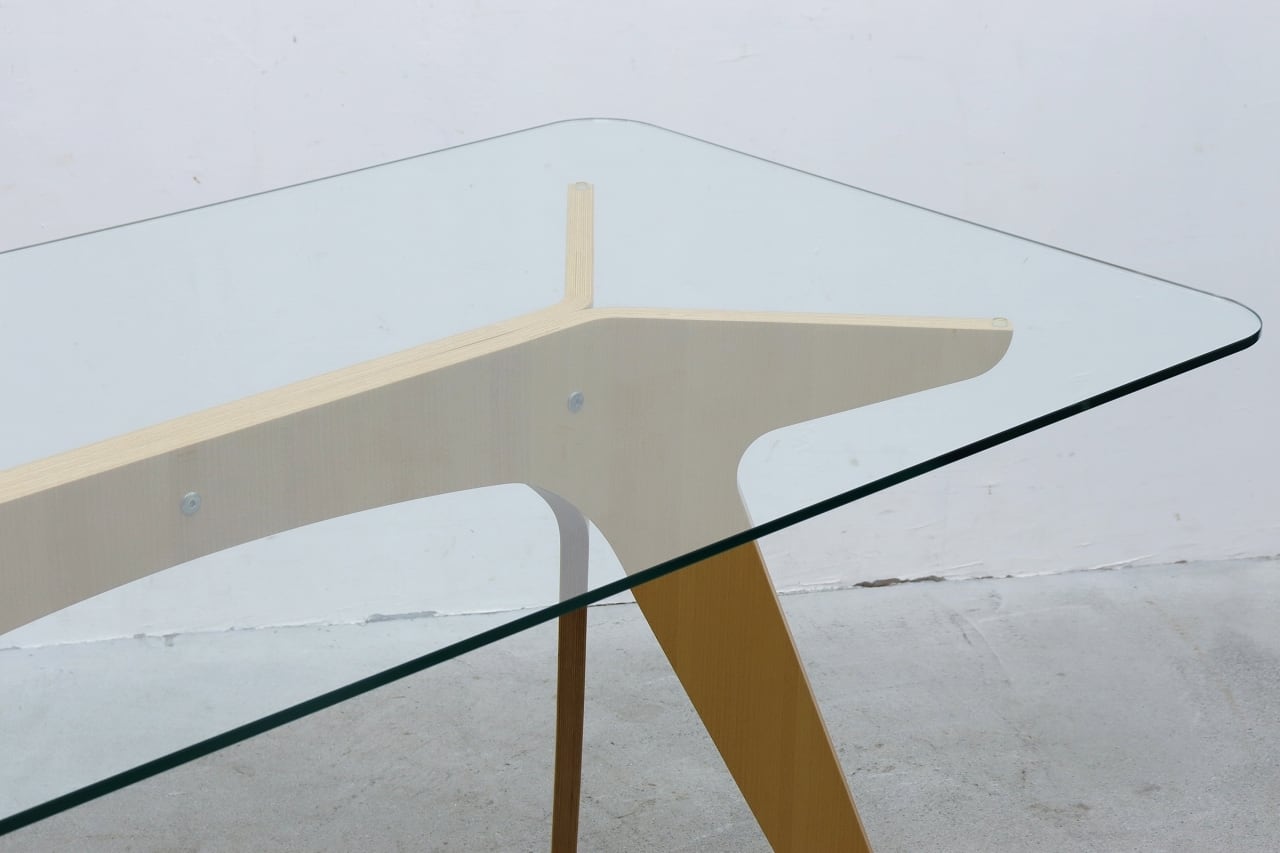 E&Y ペガサス ダイニングテーブル ビーチ材 プライウッド ガラス デスク 机 モダン RBT17171