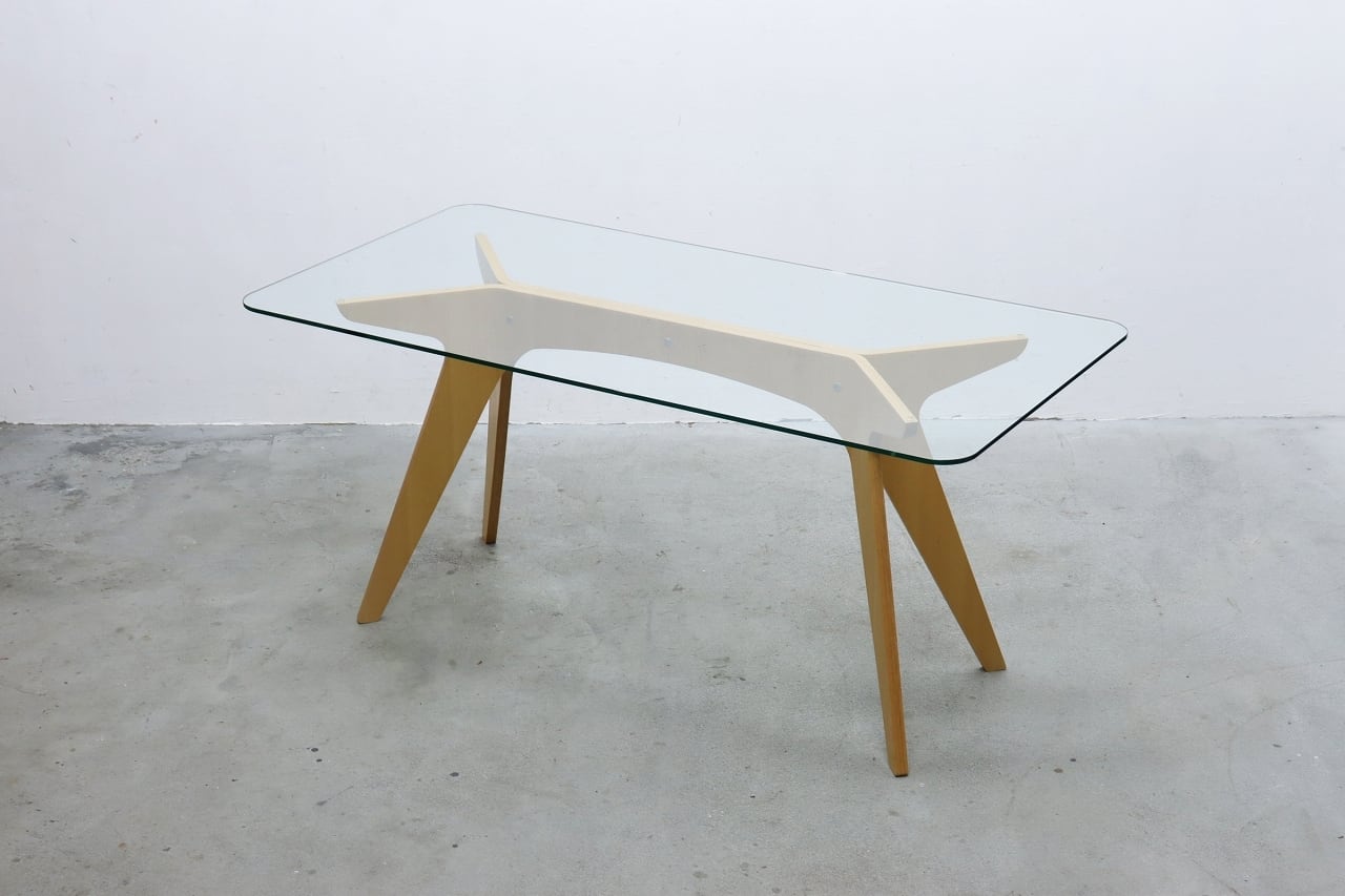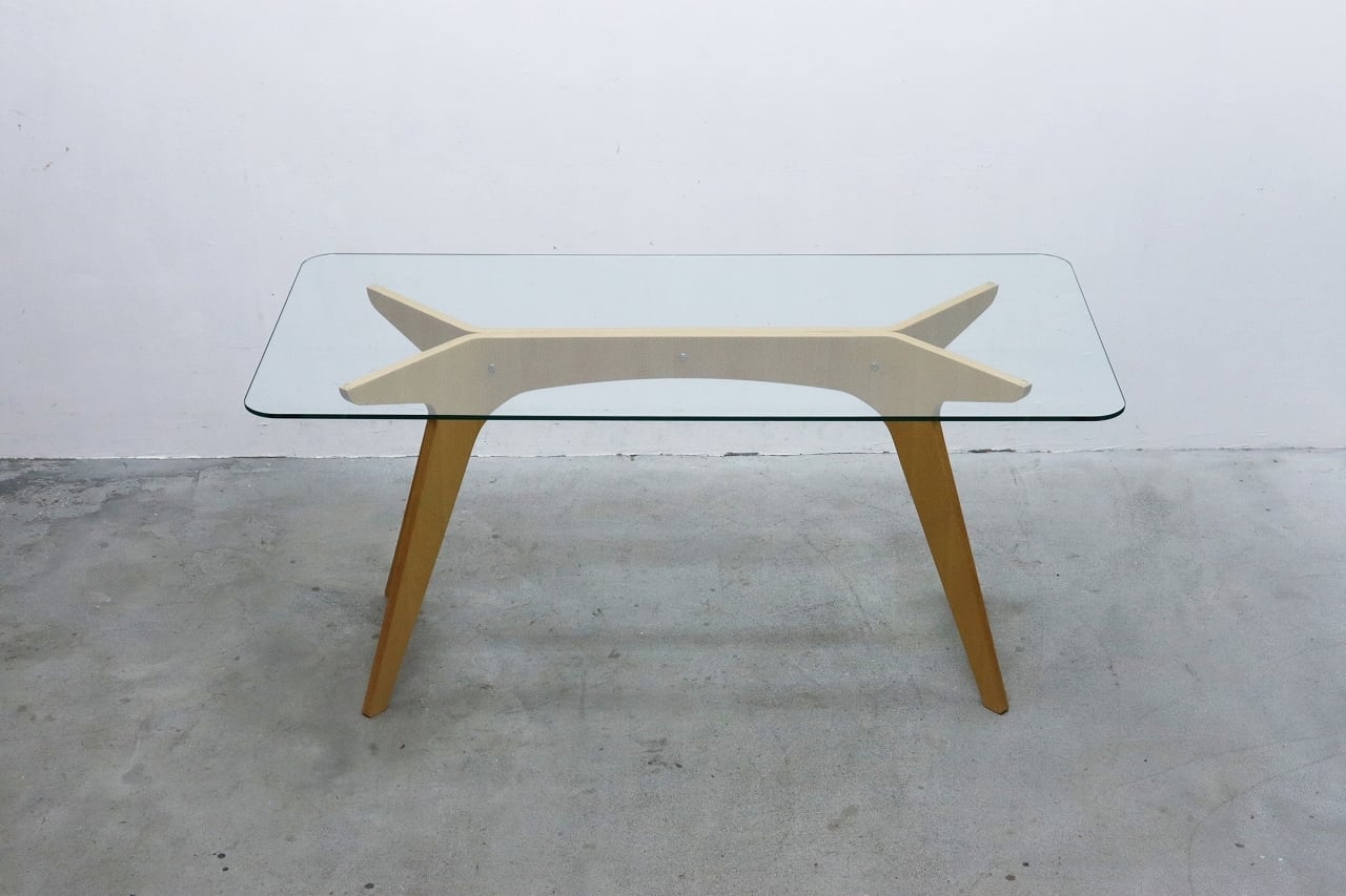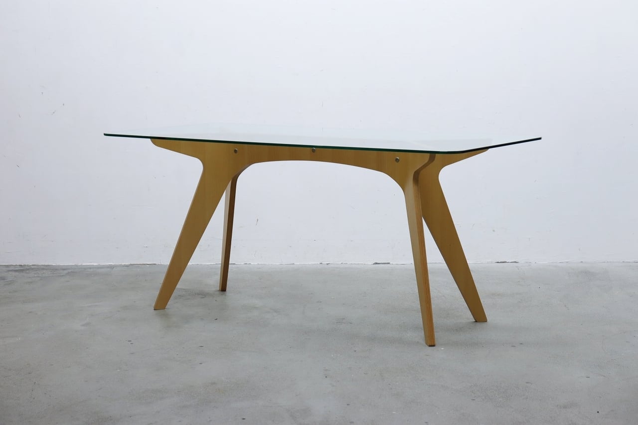 E&Y ペガサス ダイニングテーブル ビーチ材 プライウッド ガラス デスク 机 モダン RBT17171