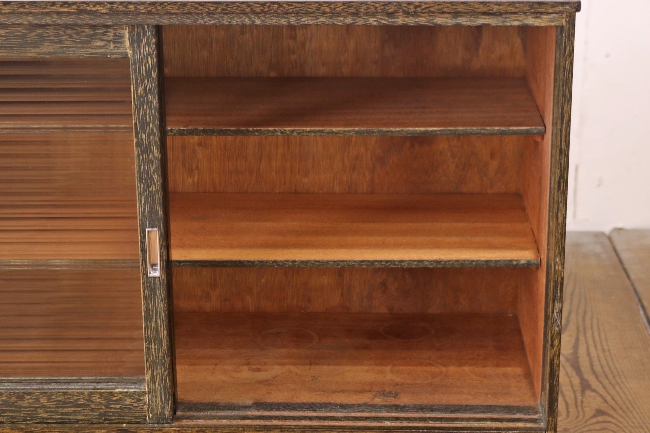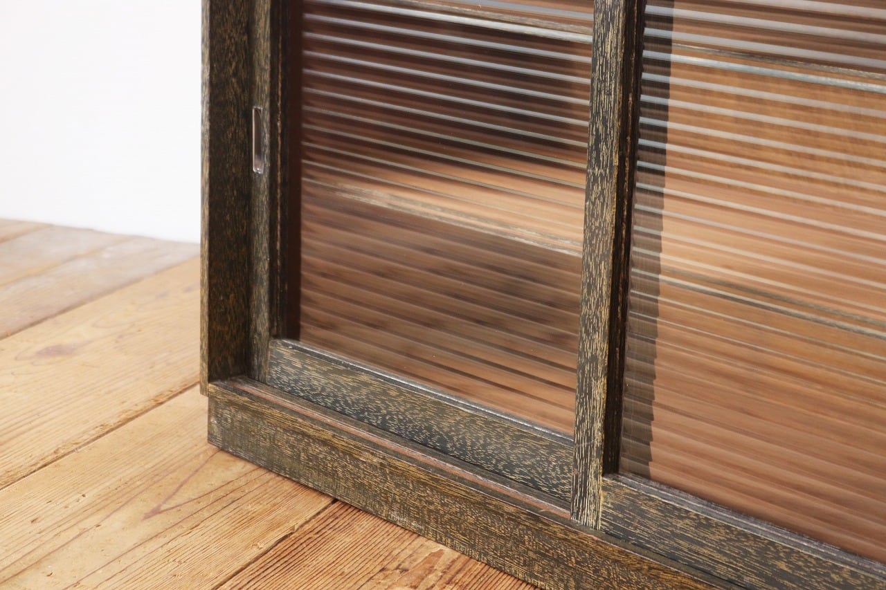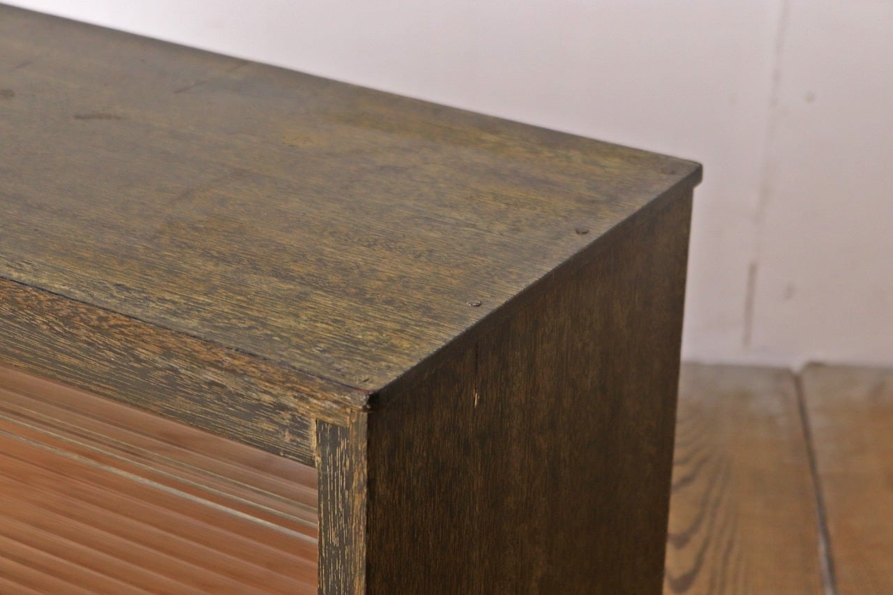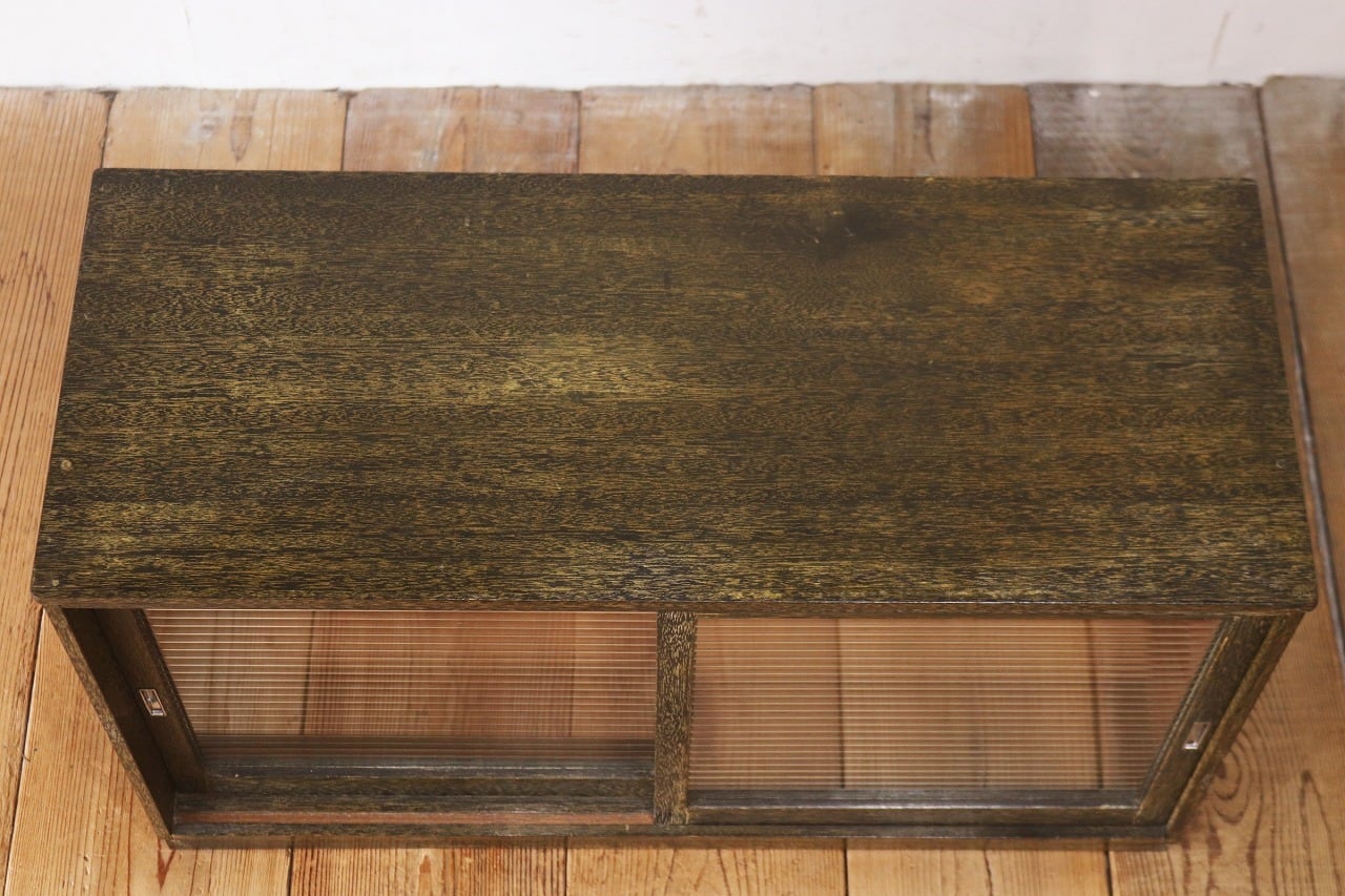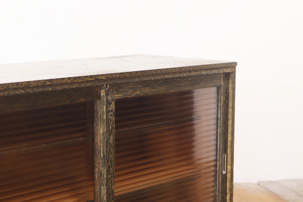 レトロ 戸棚 卓上 ガラスキャビネット 収納 ラック モールガラス ラワン材 ヴィンテージ/RBT03048