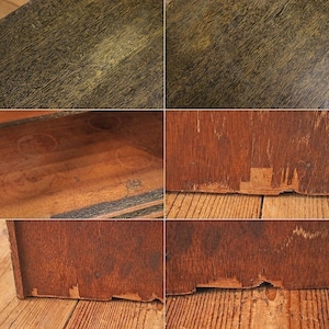 天板に塗装ムラ、背板の突板が剥がれている箇所があります。