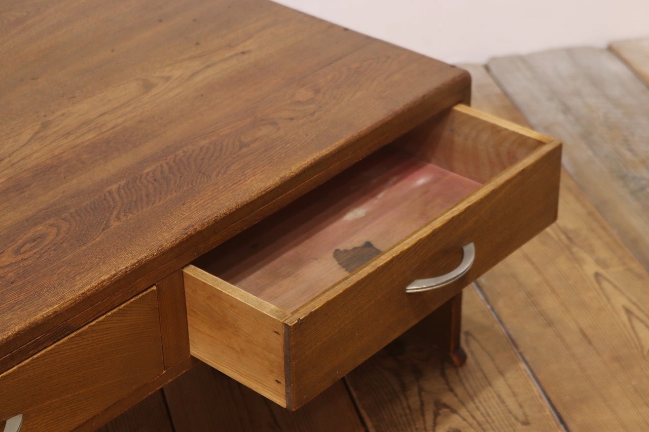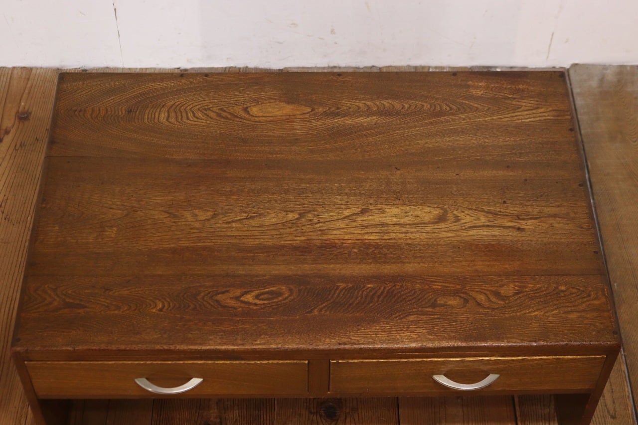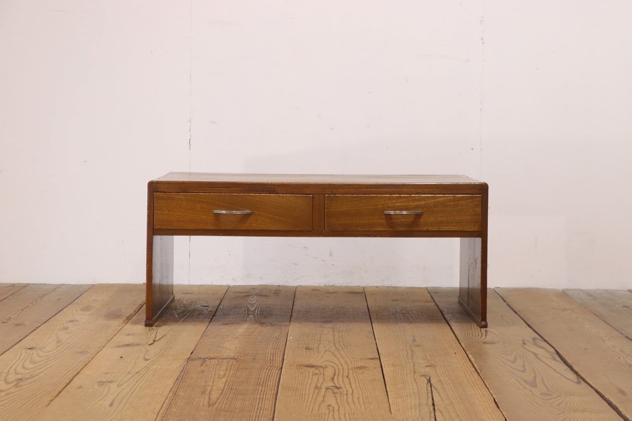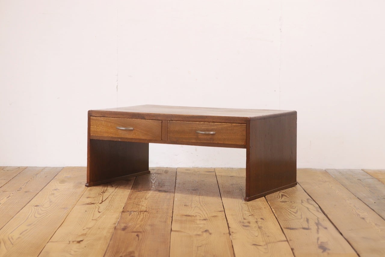 レトロ 文机 ローテーブル 座卓 木製 引き出し 抽斗 2杯 花台 展示台 ヴィンテージ/RAT27194