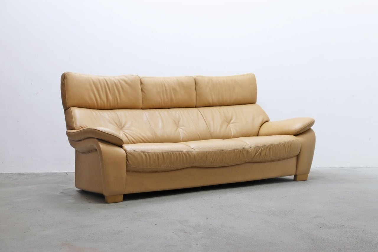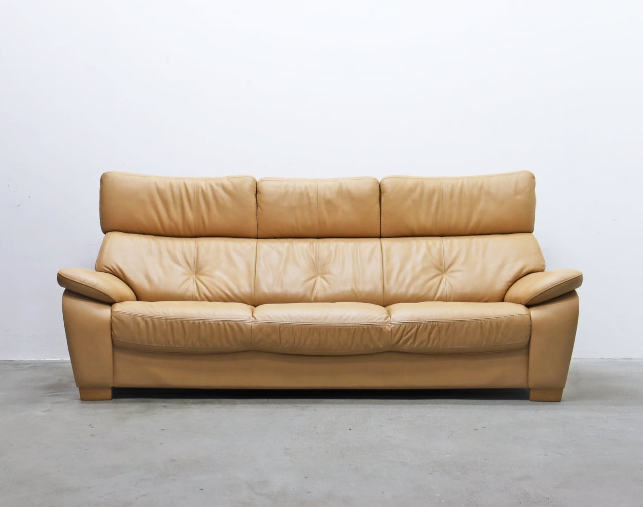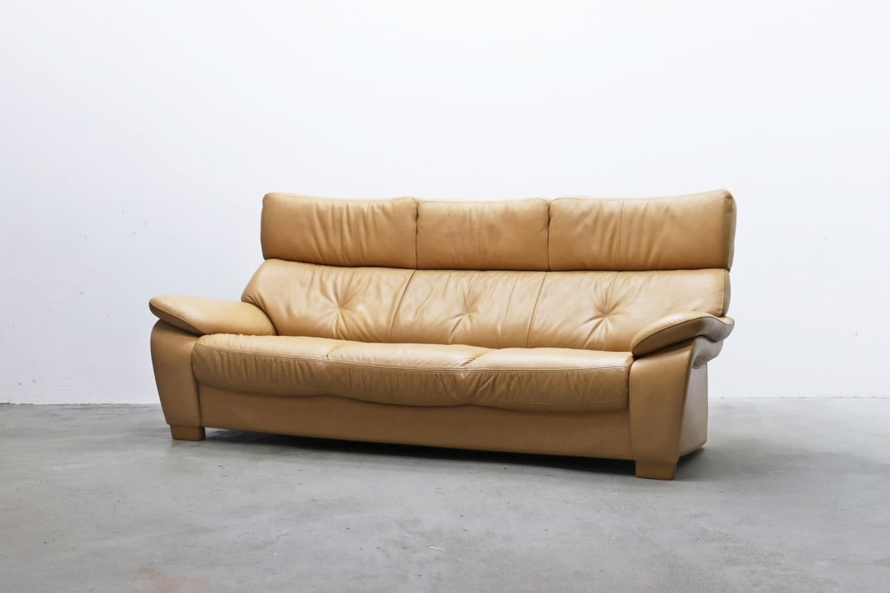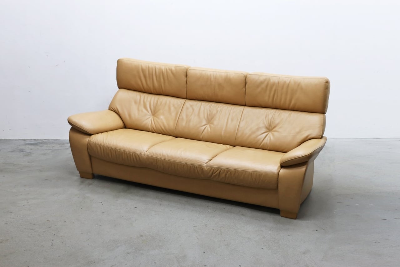 本革を使用したふっくらとしたかけ心地の3Pソファ。(本体外側合皮)