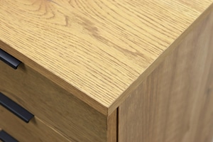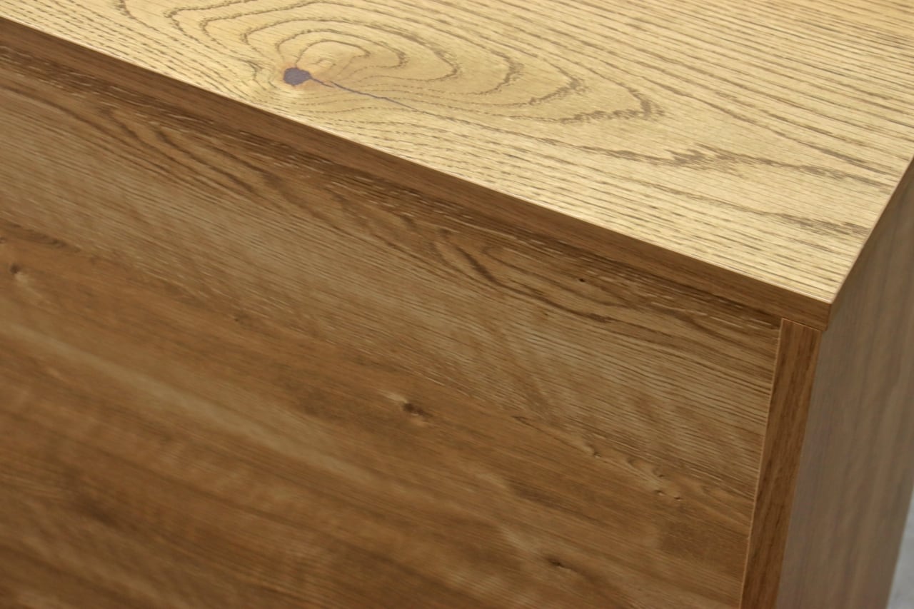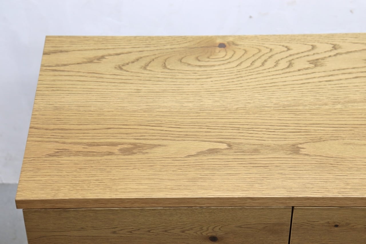 節や虎斑など、素材そのものの表情をあえて隠さず仕上げた天板や前板は、一点ごとに異なる豊かな木目をお楽しみいただけます。