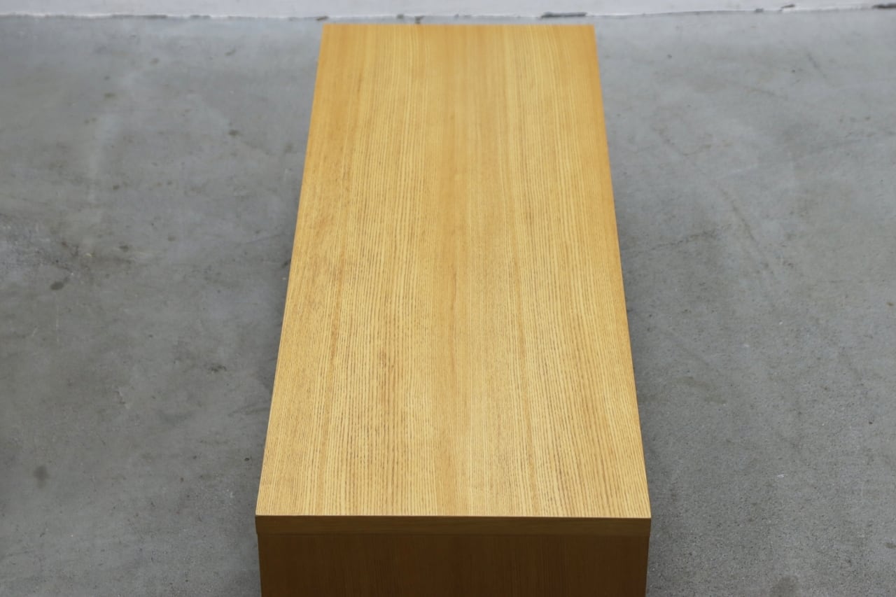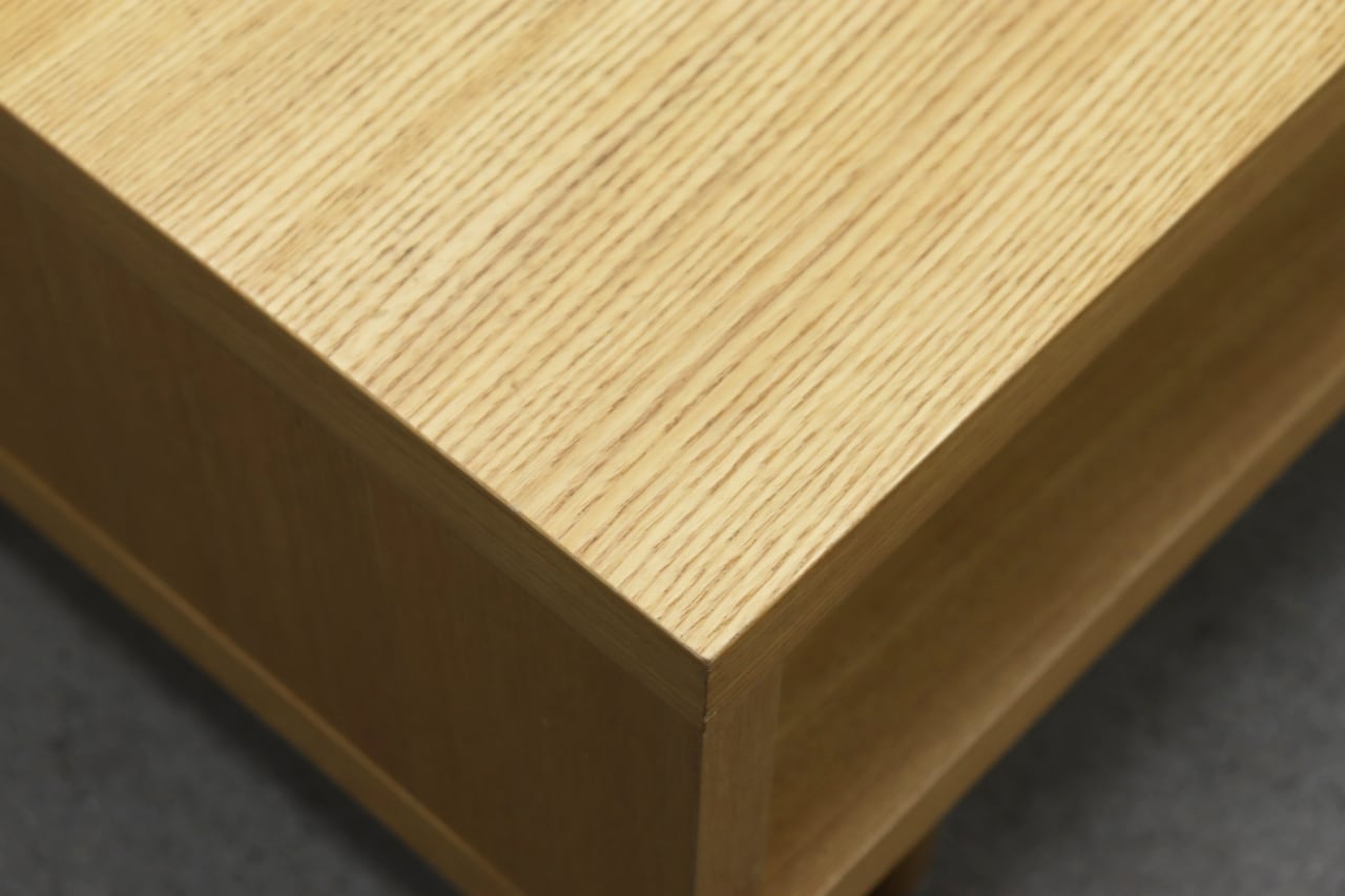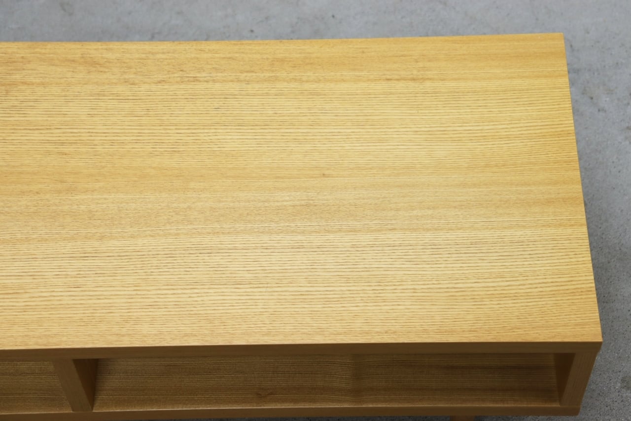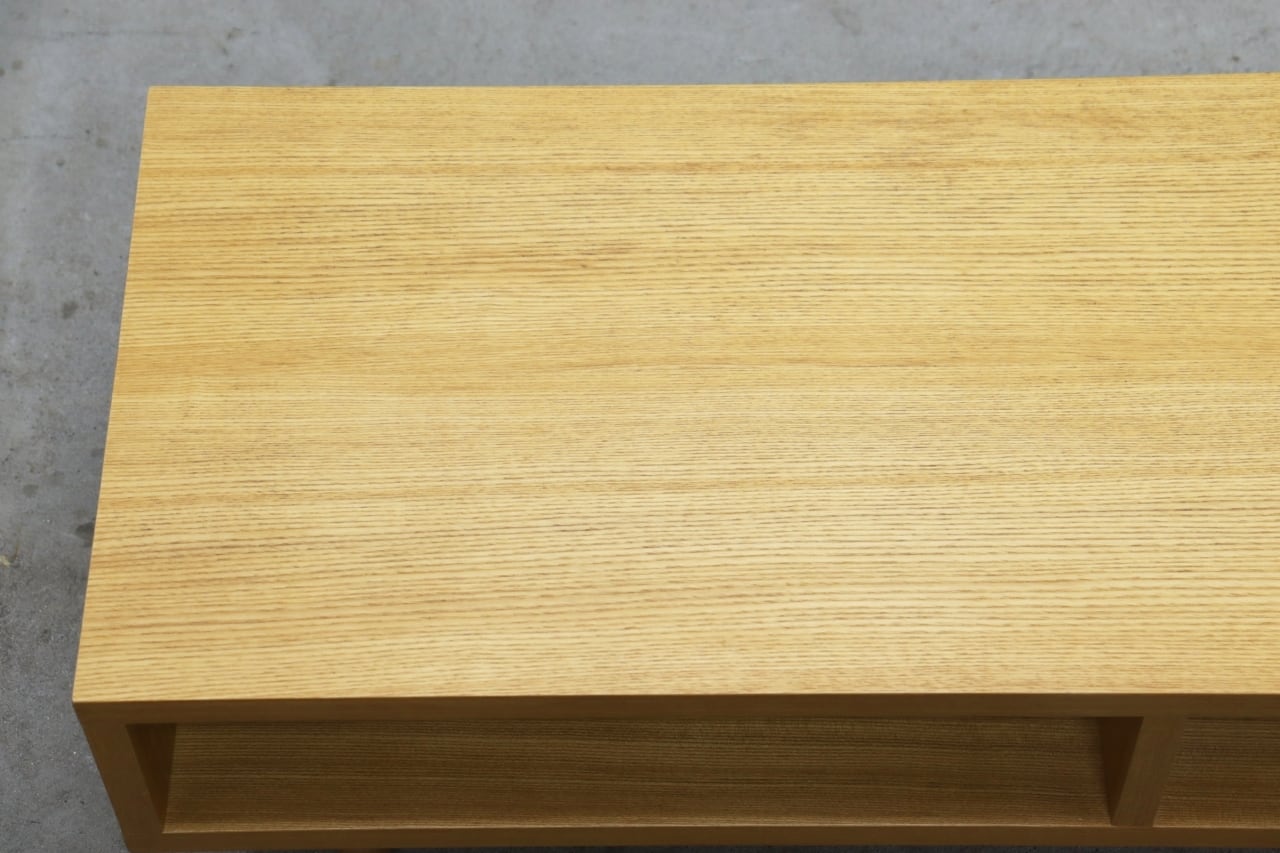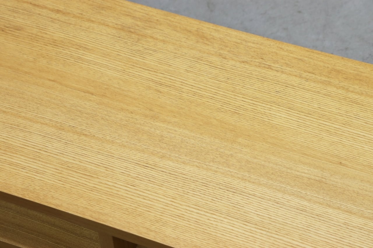 端正な木目のタモ突板材を使用。