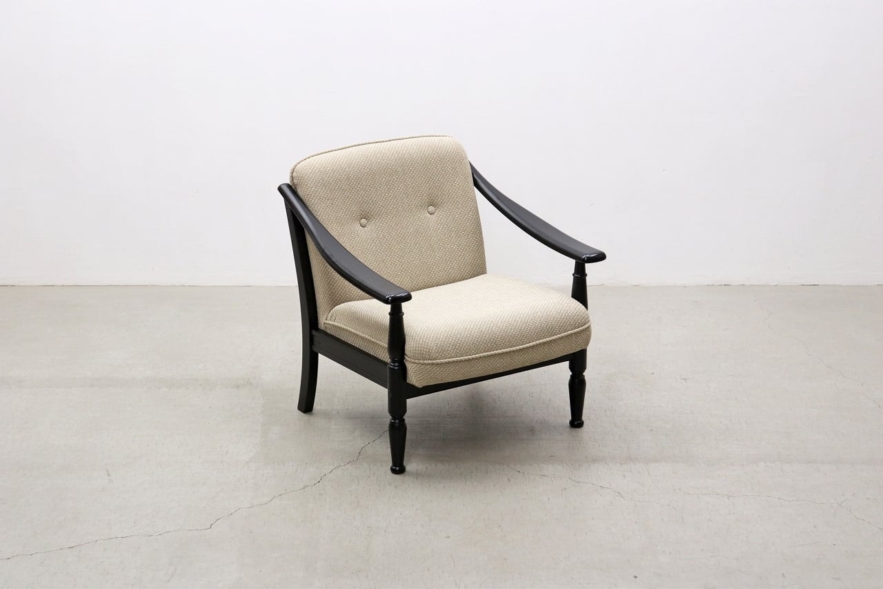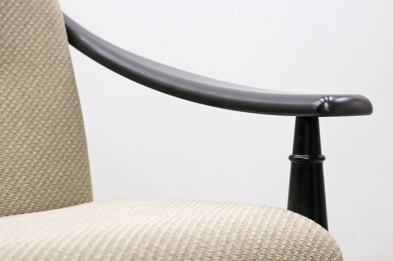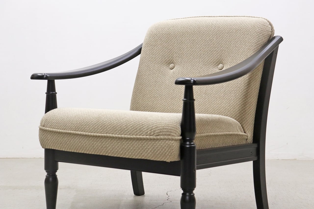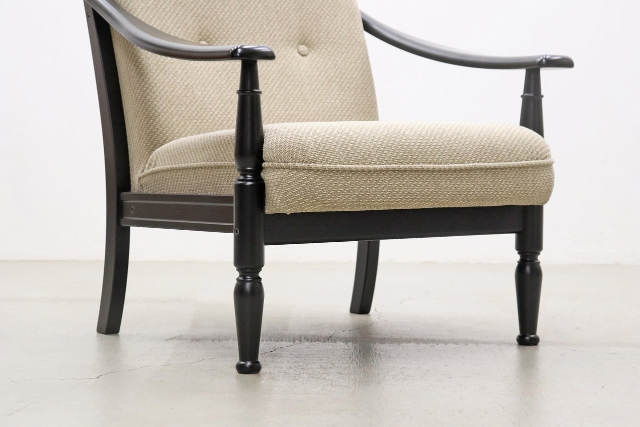 滑らかな曲線を描いたアームや挽き物の脚等、シンプルながらもクラシカルなデザインは
