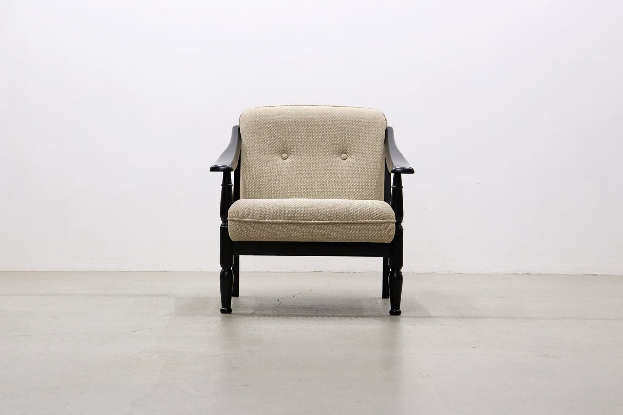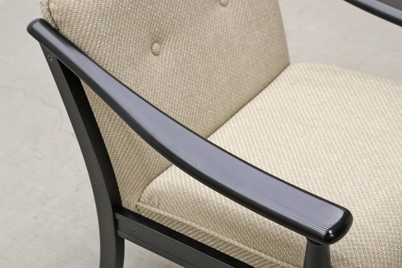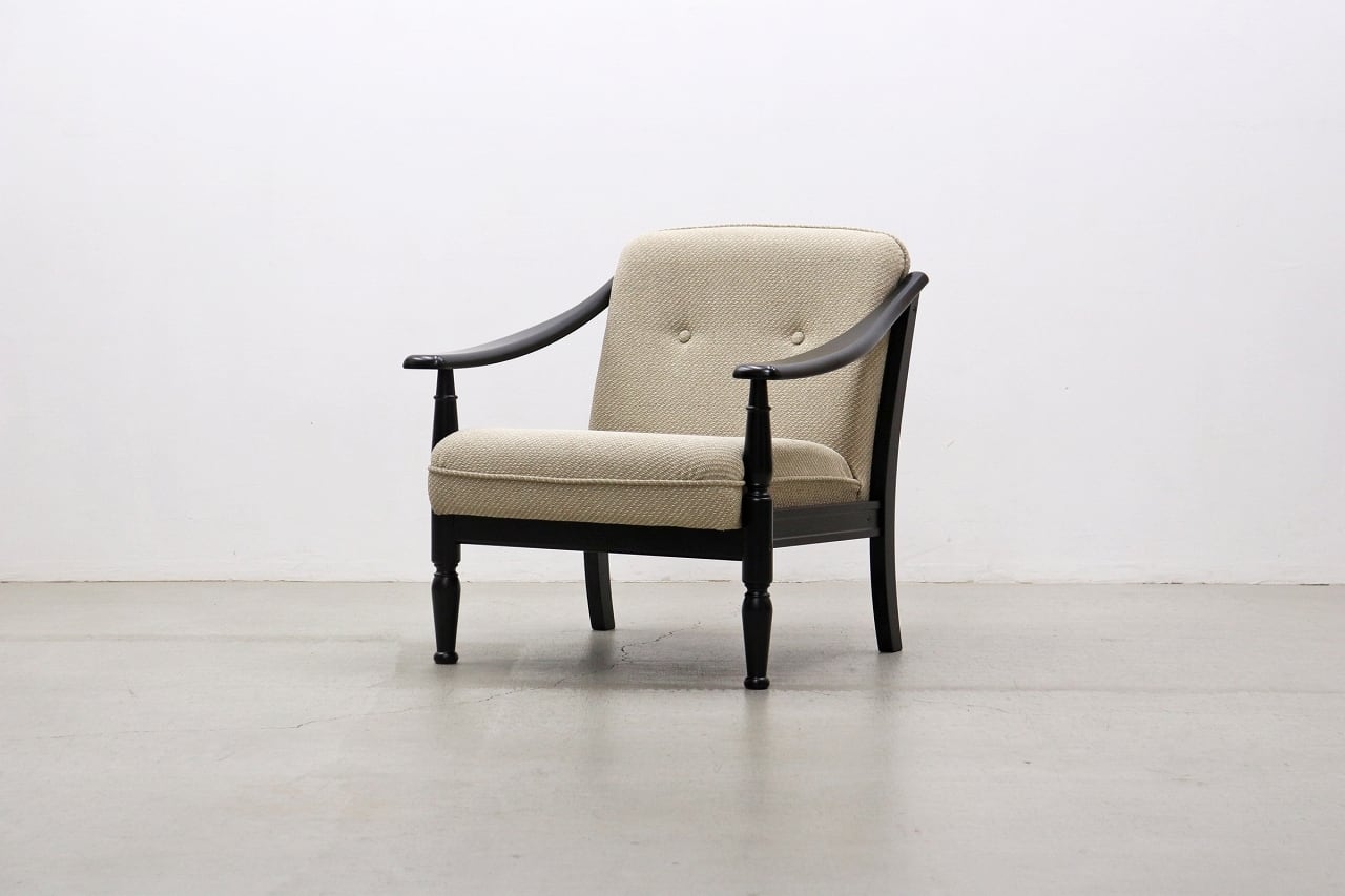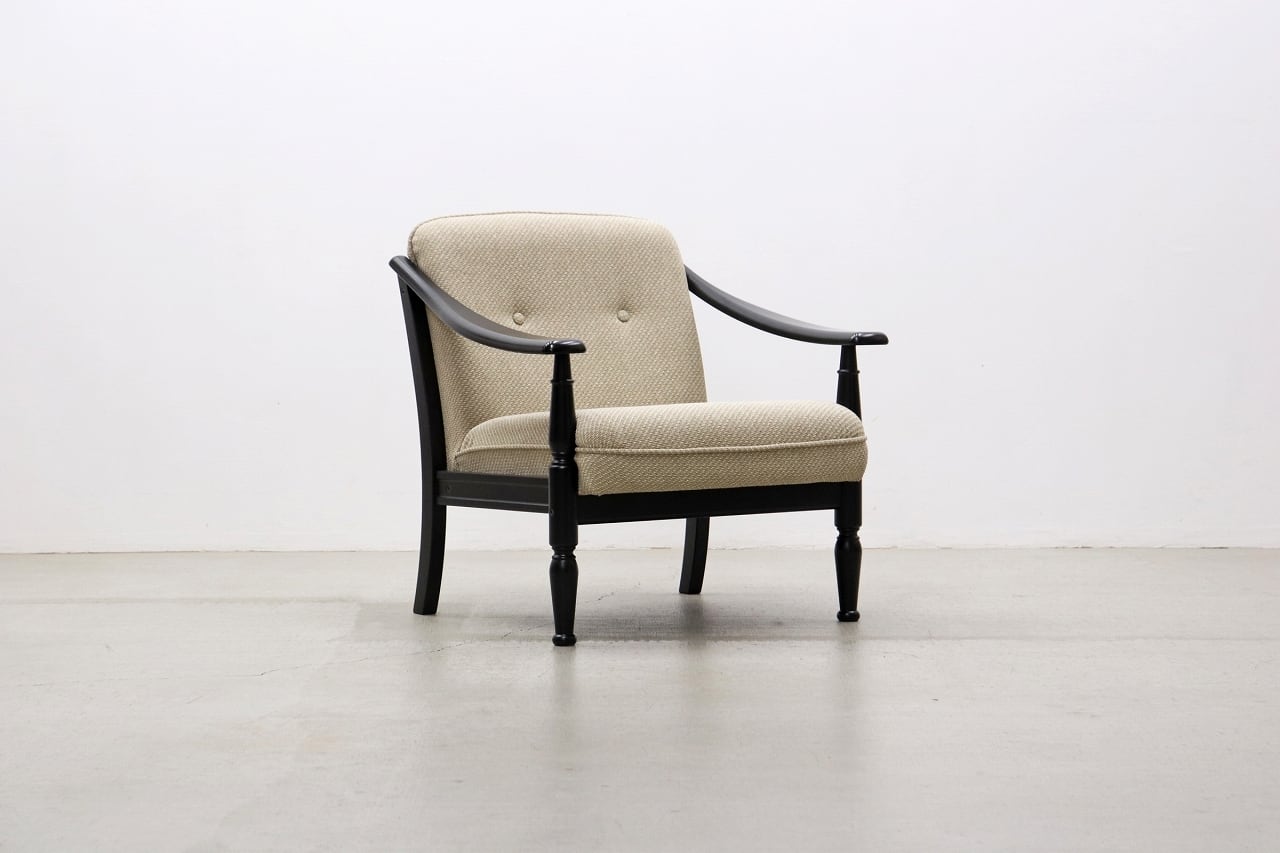 滑らかな曲線を描いたアームや挽き物の脚等、シンプルながらもクラシカルなデザインは