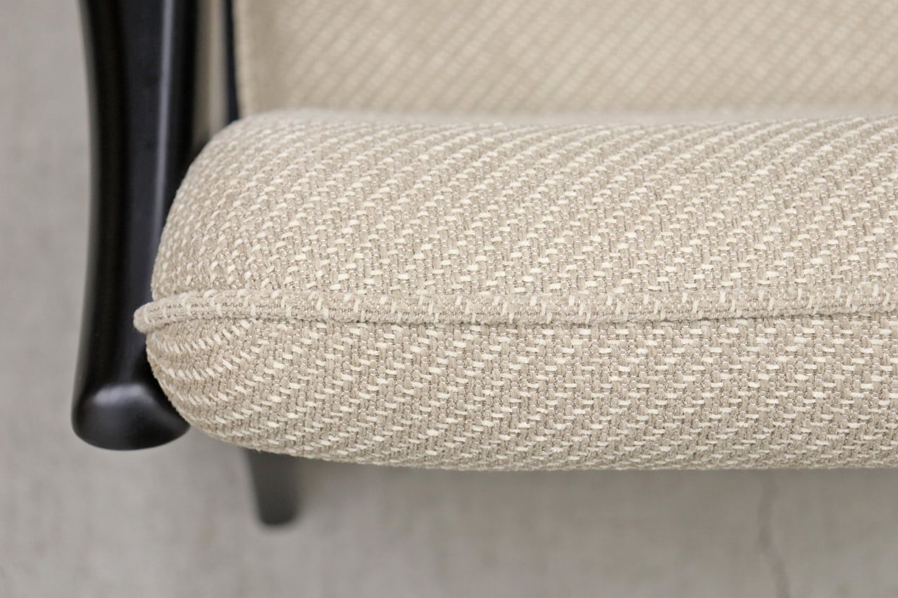 落ち着いた色味のファブリックにブラックのフレームが程よいアクセントとなり、引き締まった印象を与えてくれます。