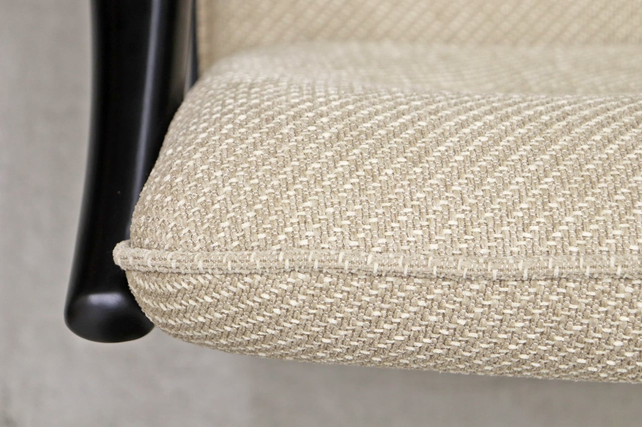 落ち着いた色味のファブリックにブラックのフレームが程よいアクセントとなり、引き締まった印象を与えてくれます。