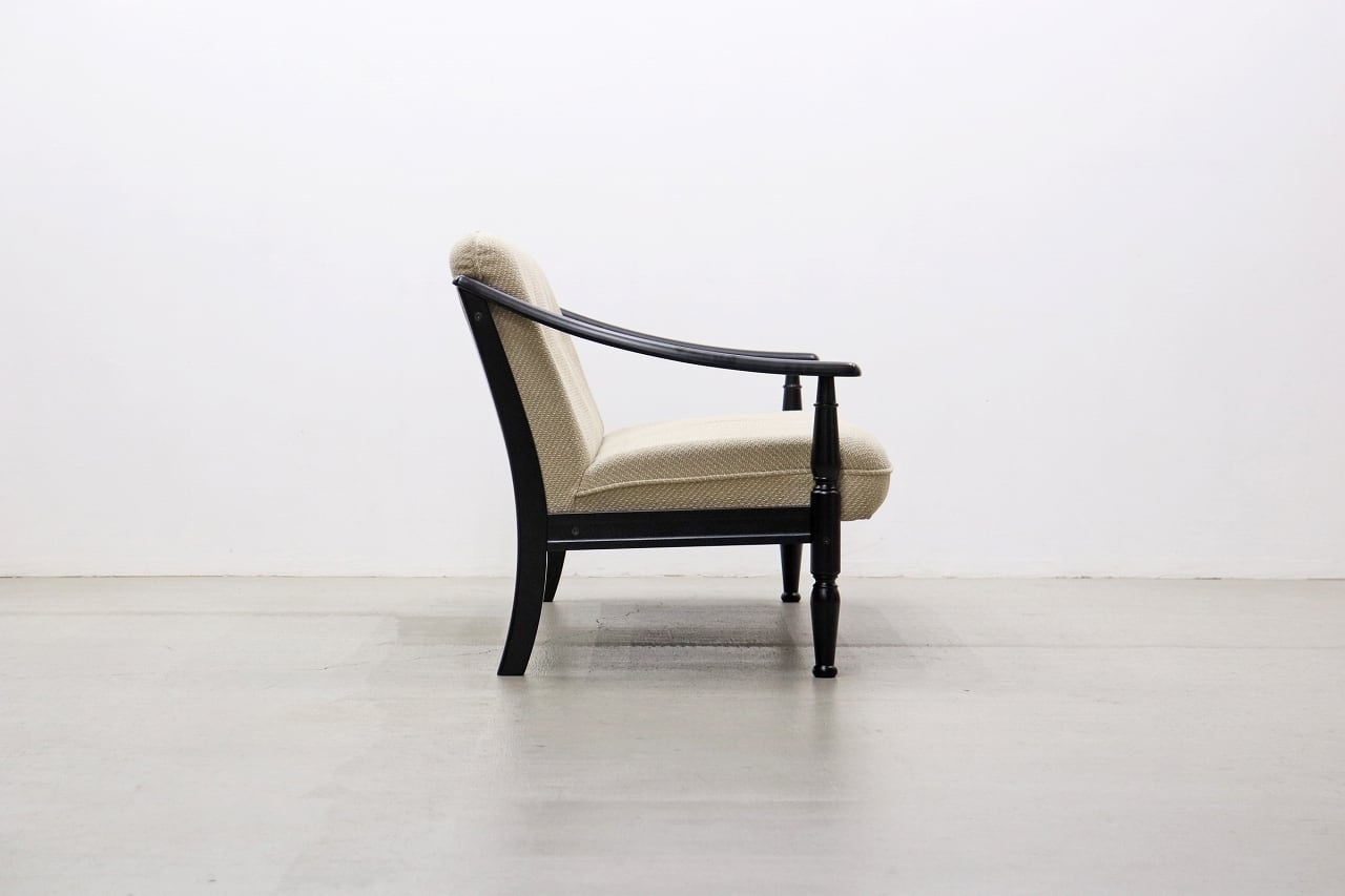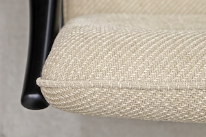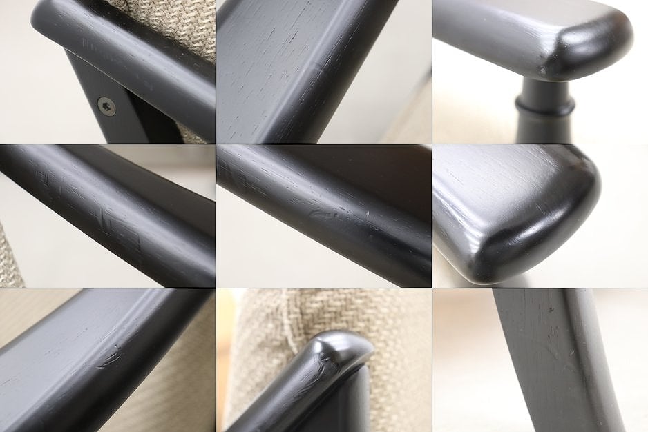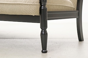 滑らかな曲線を描いたアームや挽き物の脚等、シンプルながらもクラシカルなデザインは