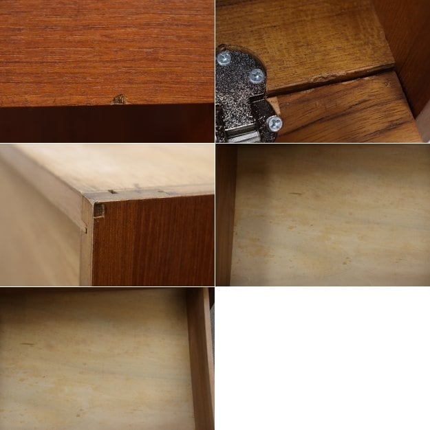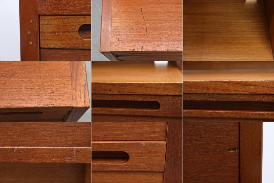 パテ跡、突板の剥がれ、全体的に傷や擦れはありますが使用に差し支える様なダメージはありません。