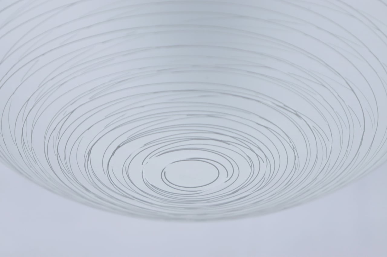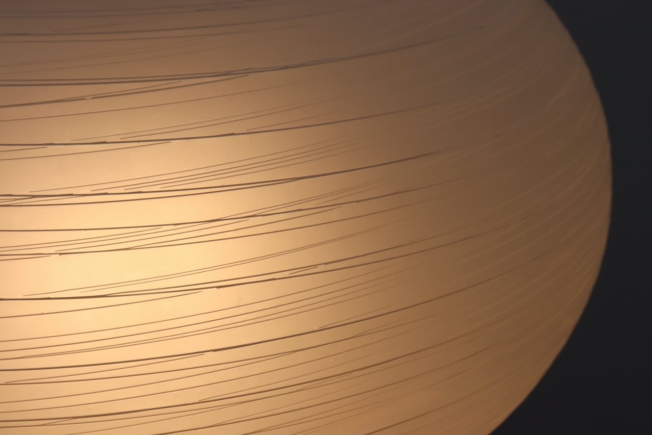 白色ガラスを糸の様に伸ばしながらシェードに巻き付ける手法で作られており、