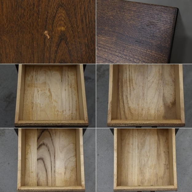 引き出し内に染み、全体的に傷や擦れはありますが使用に差し支える様なダメージはありません。