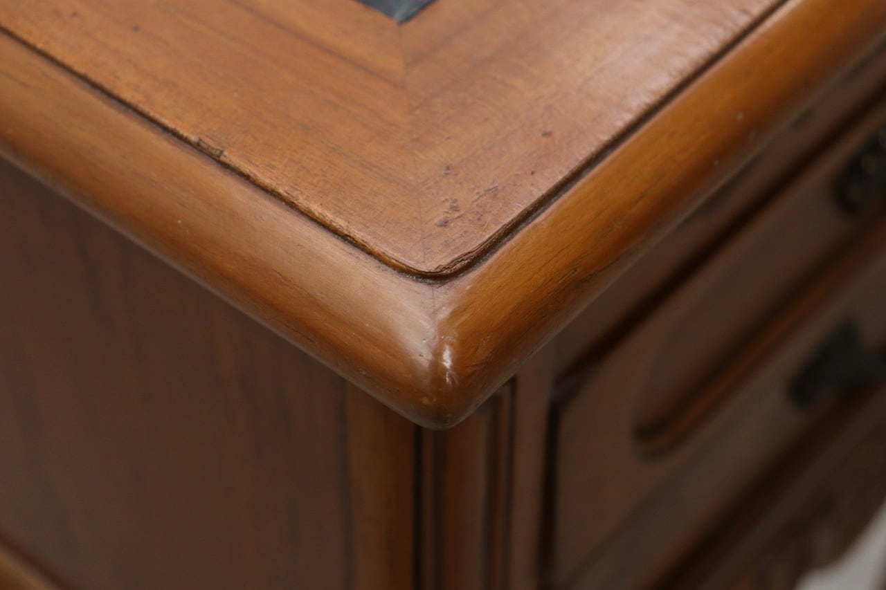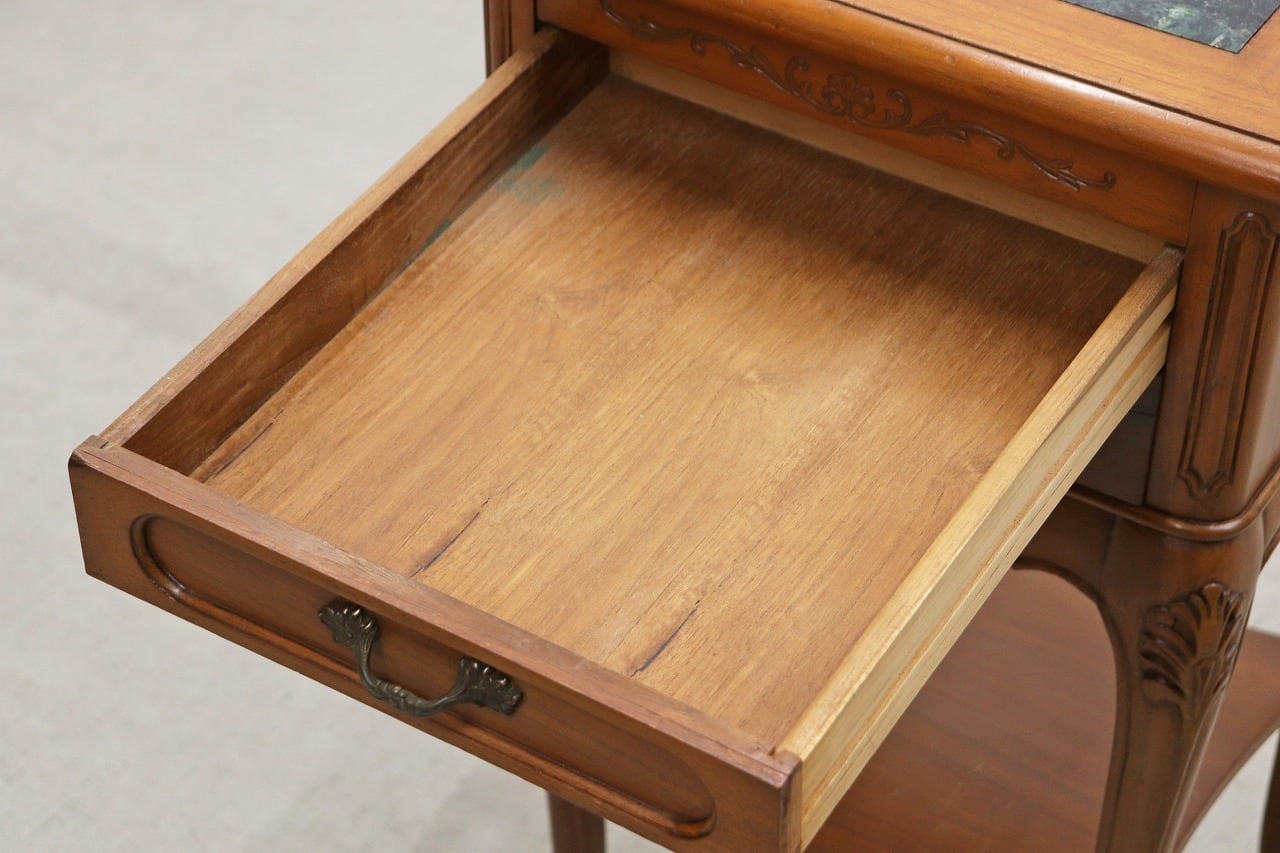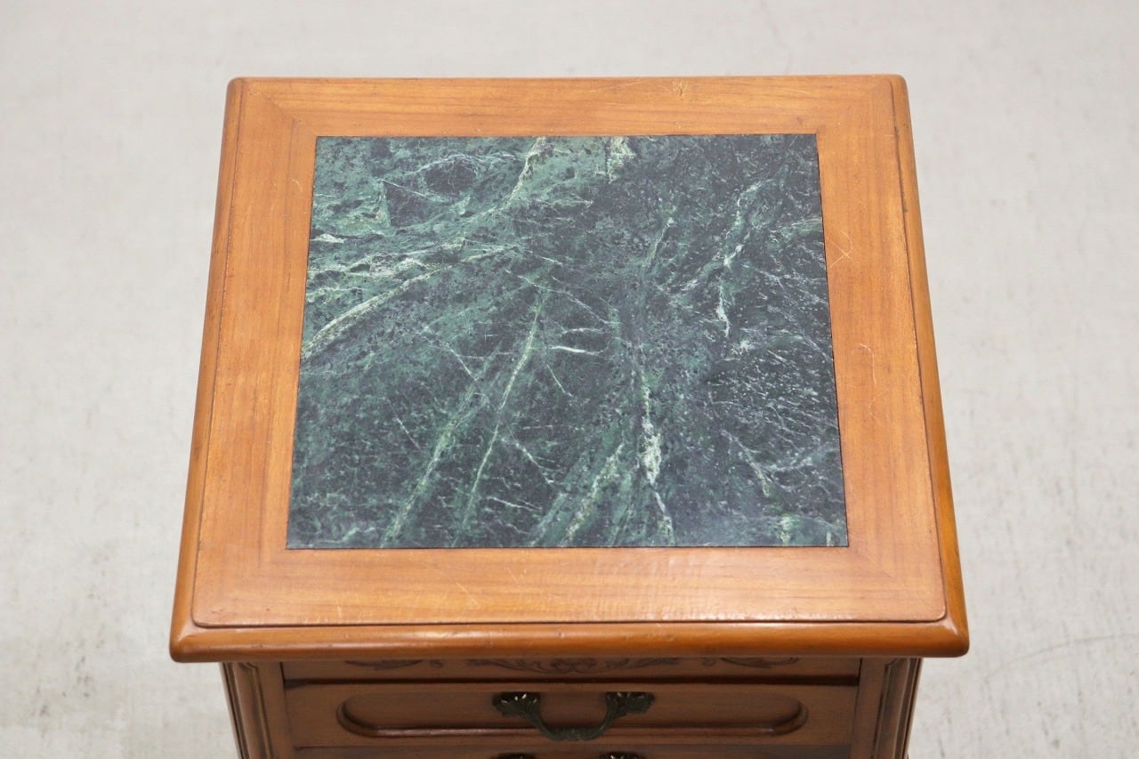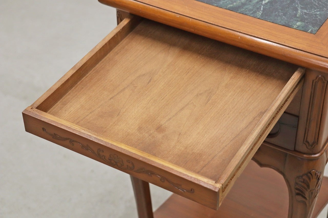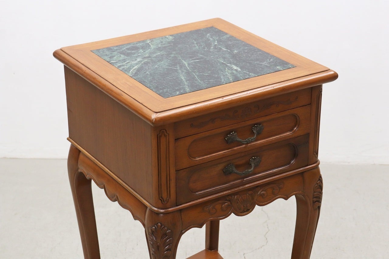 ビーチ材の本体にグリーンの大理石天板を組み合わせたクラシカルなデザイン。