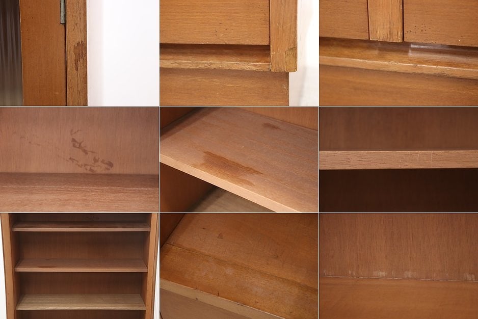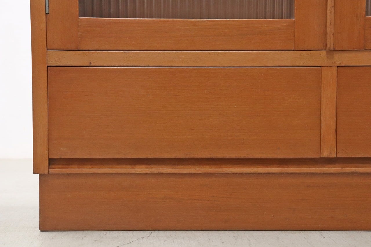 【沼津店】レトロ モールガラス 本箱 食器棚 書庫 戸棚 収納 キャビネット 水屋箪笥 ヴィンテージ RBT21209