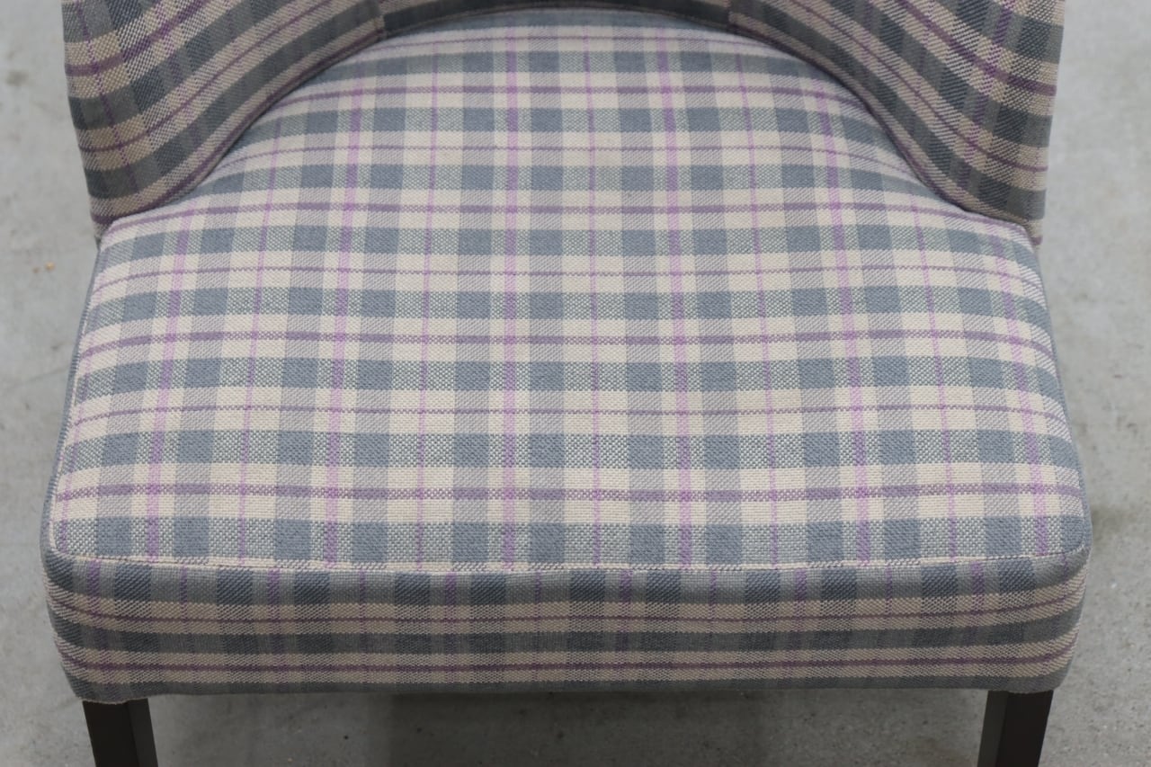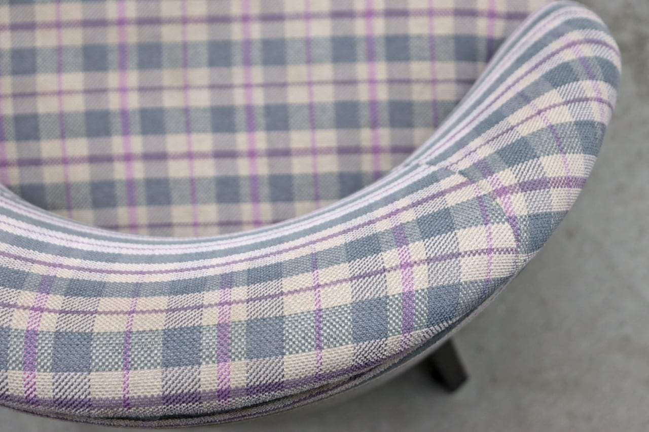 淡い配色のチェック柄ファブリックが印象的。