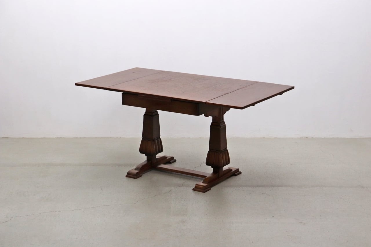 天板にオーク材を使用したヴィンテージドローリーフテーブルです。