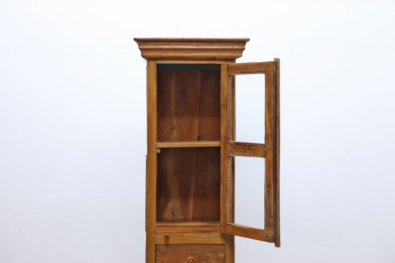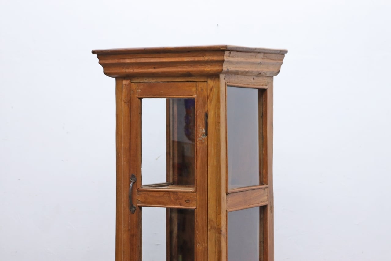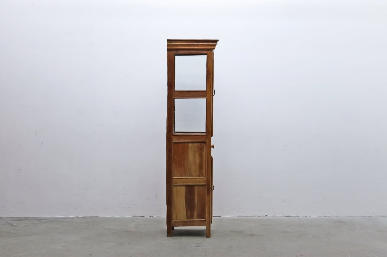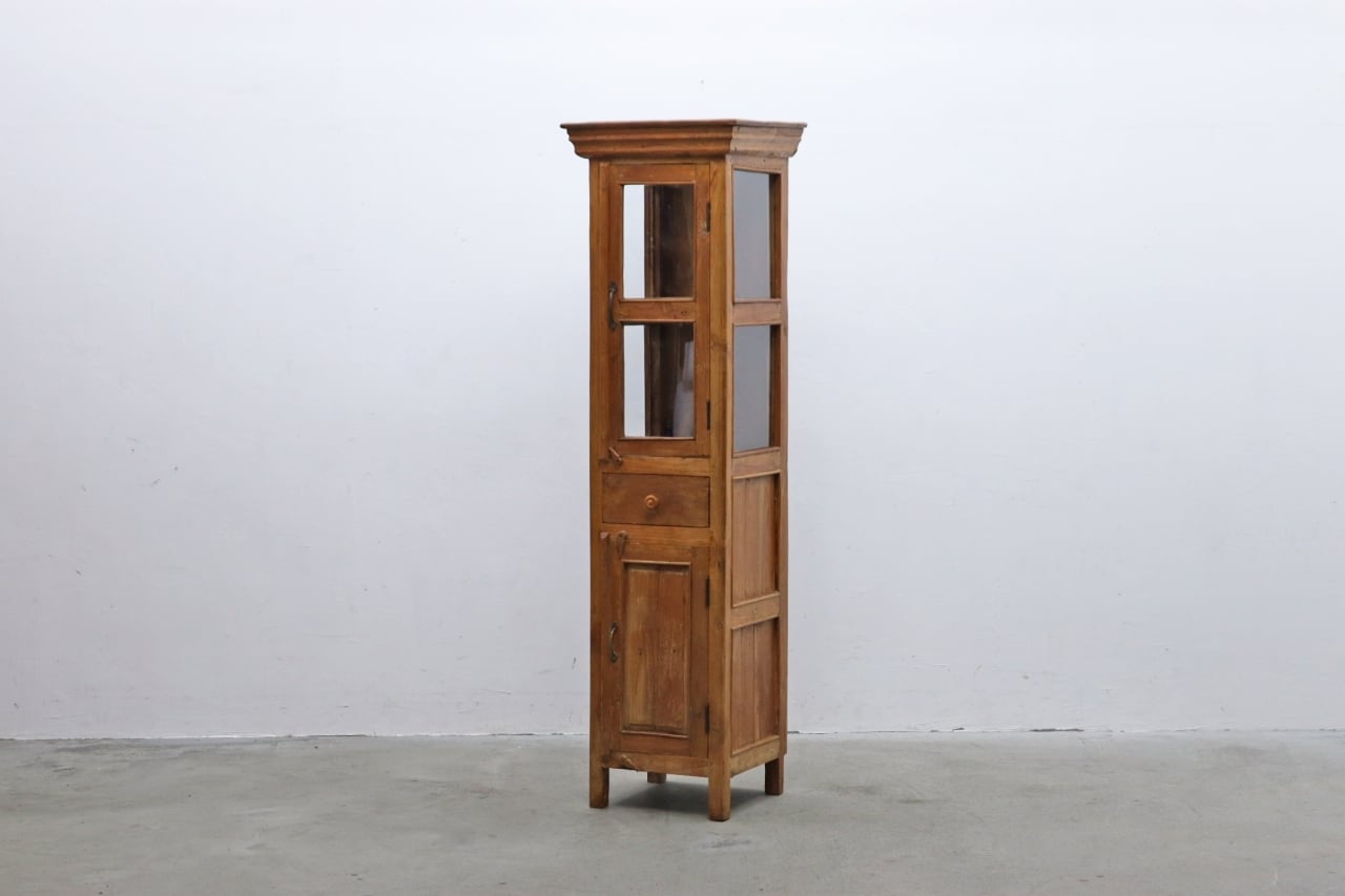 チーク無垢材 プリミティブ ガラス ショーケース キャビネット 飾り棚 食器棚 ラック リビング キッチン RCT